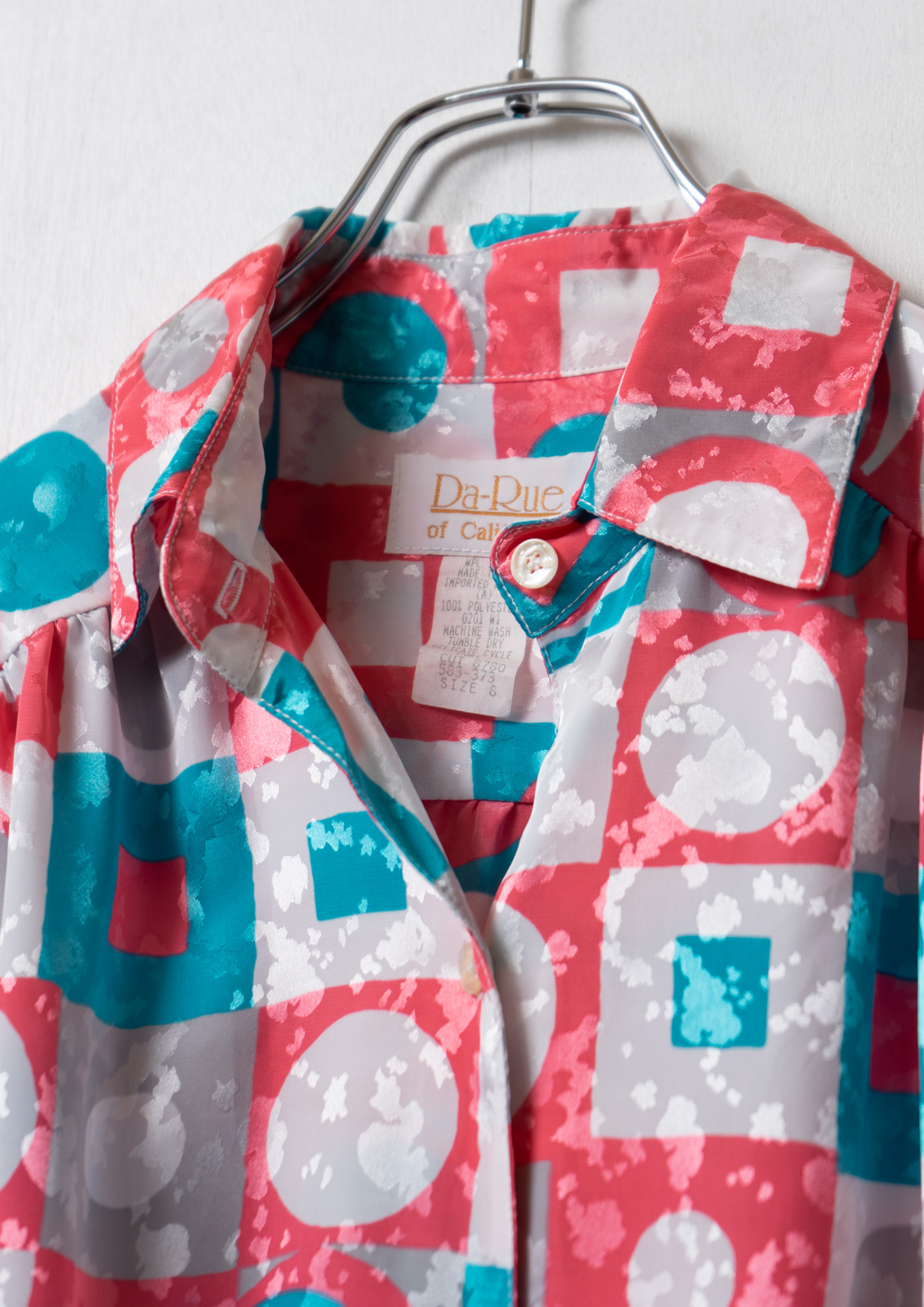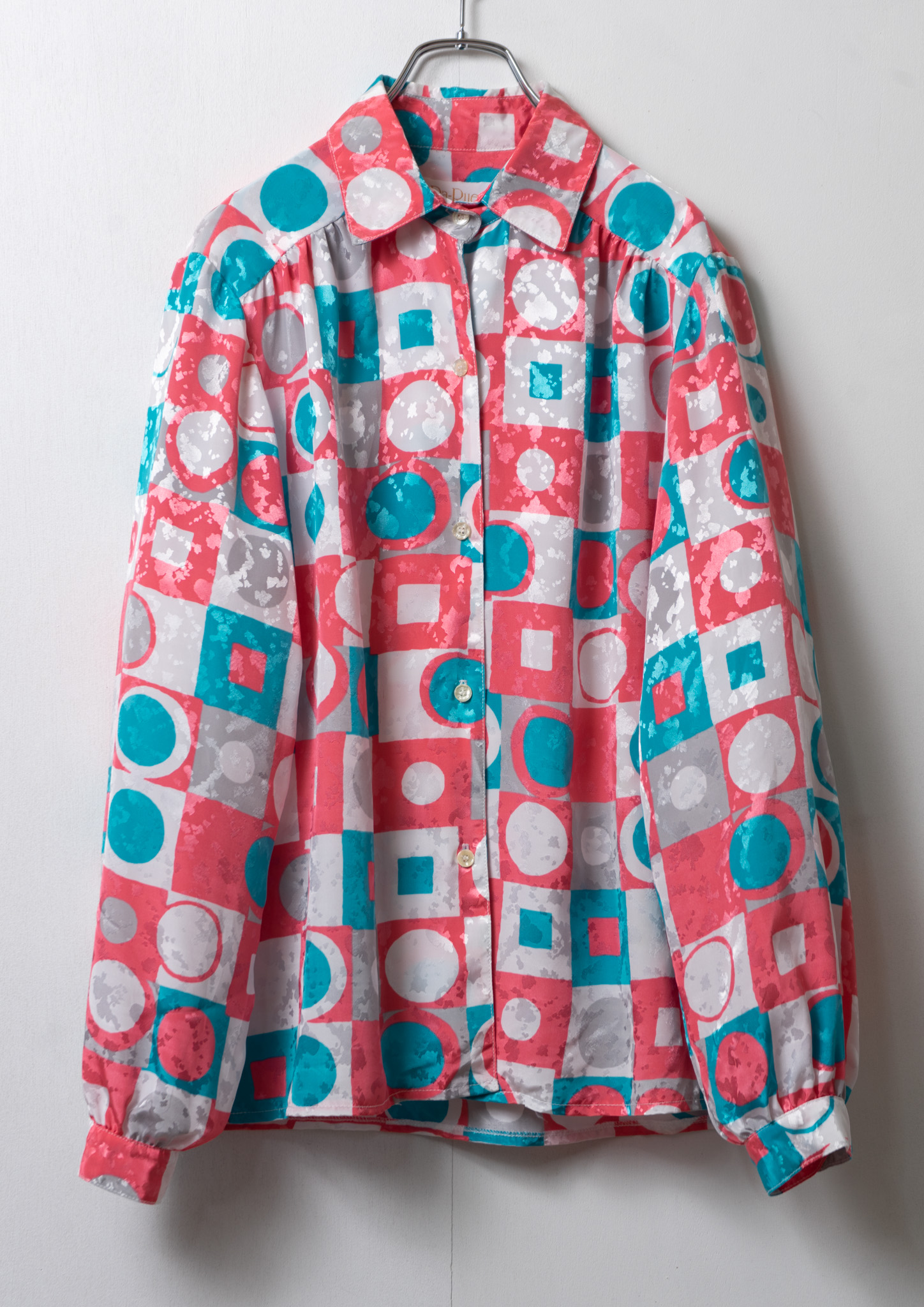80's USA Triangle Collar Art Pattern Blouse