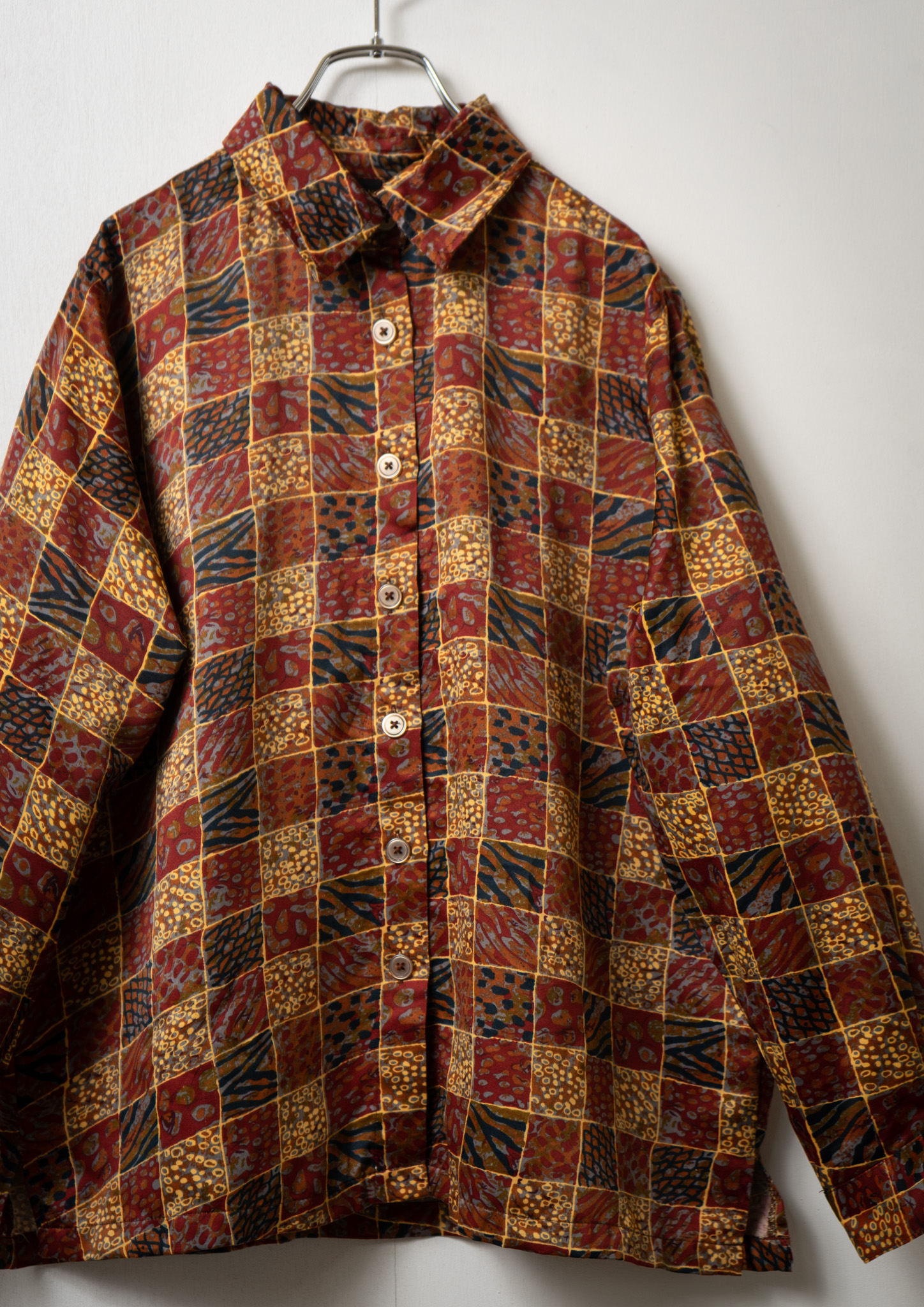 80~90's Switzerland Block Art Pattern Blouse