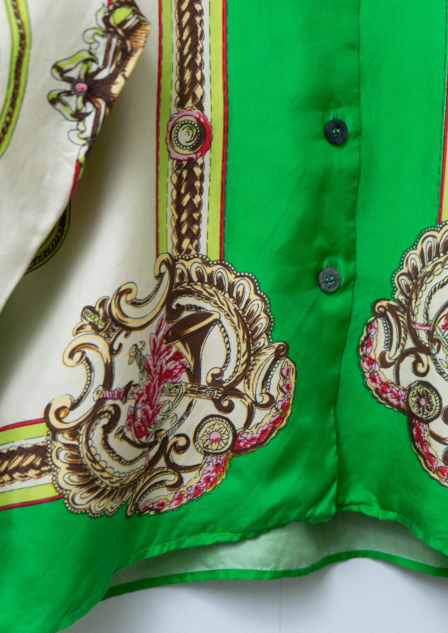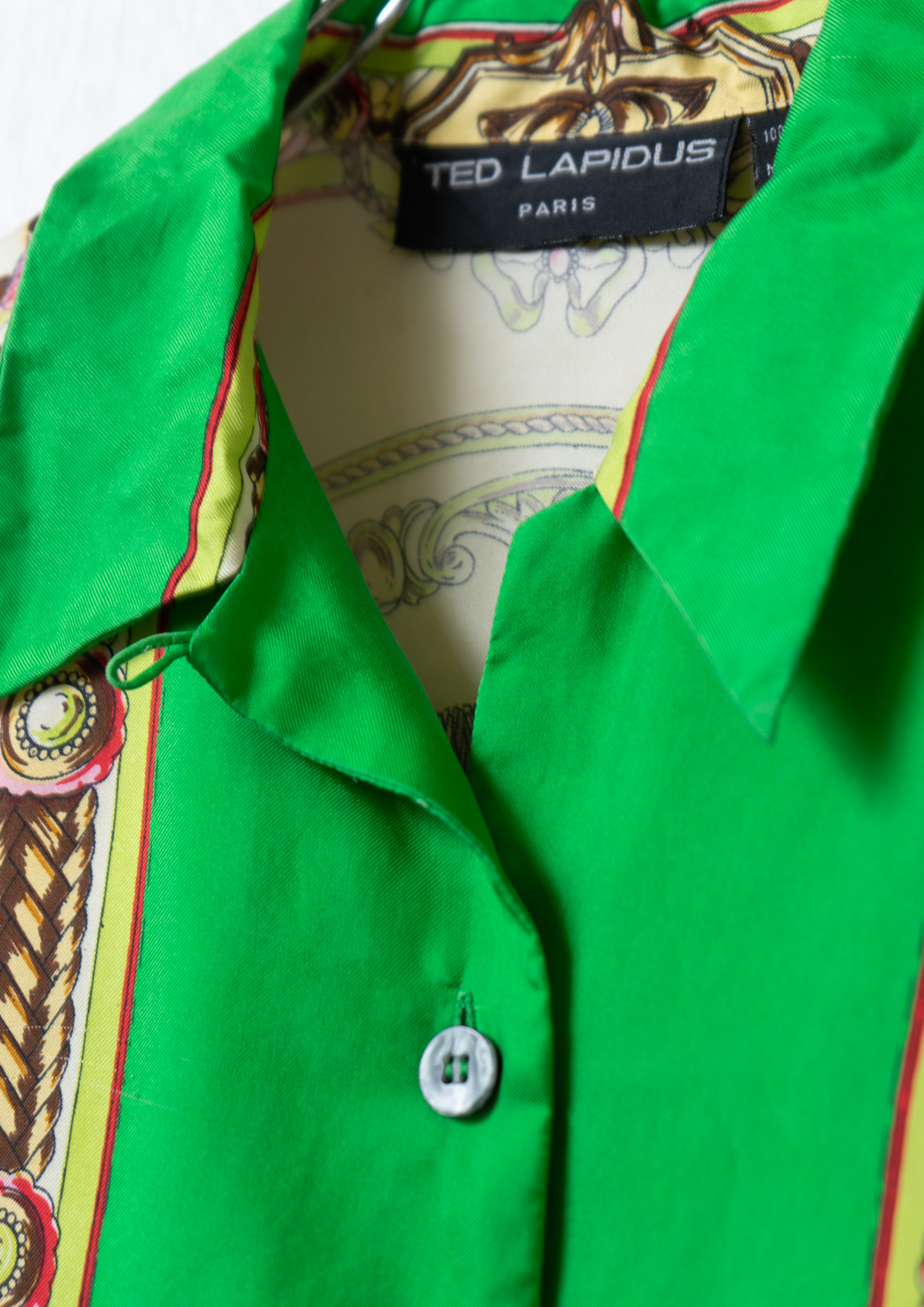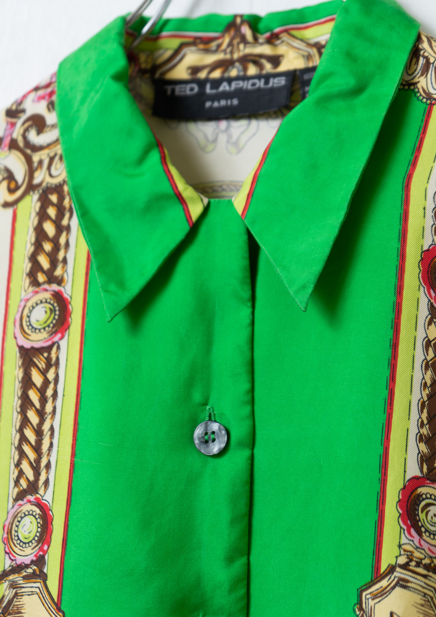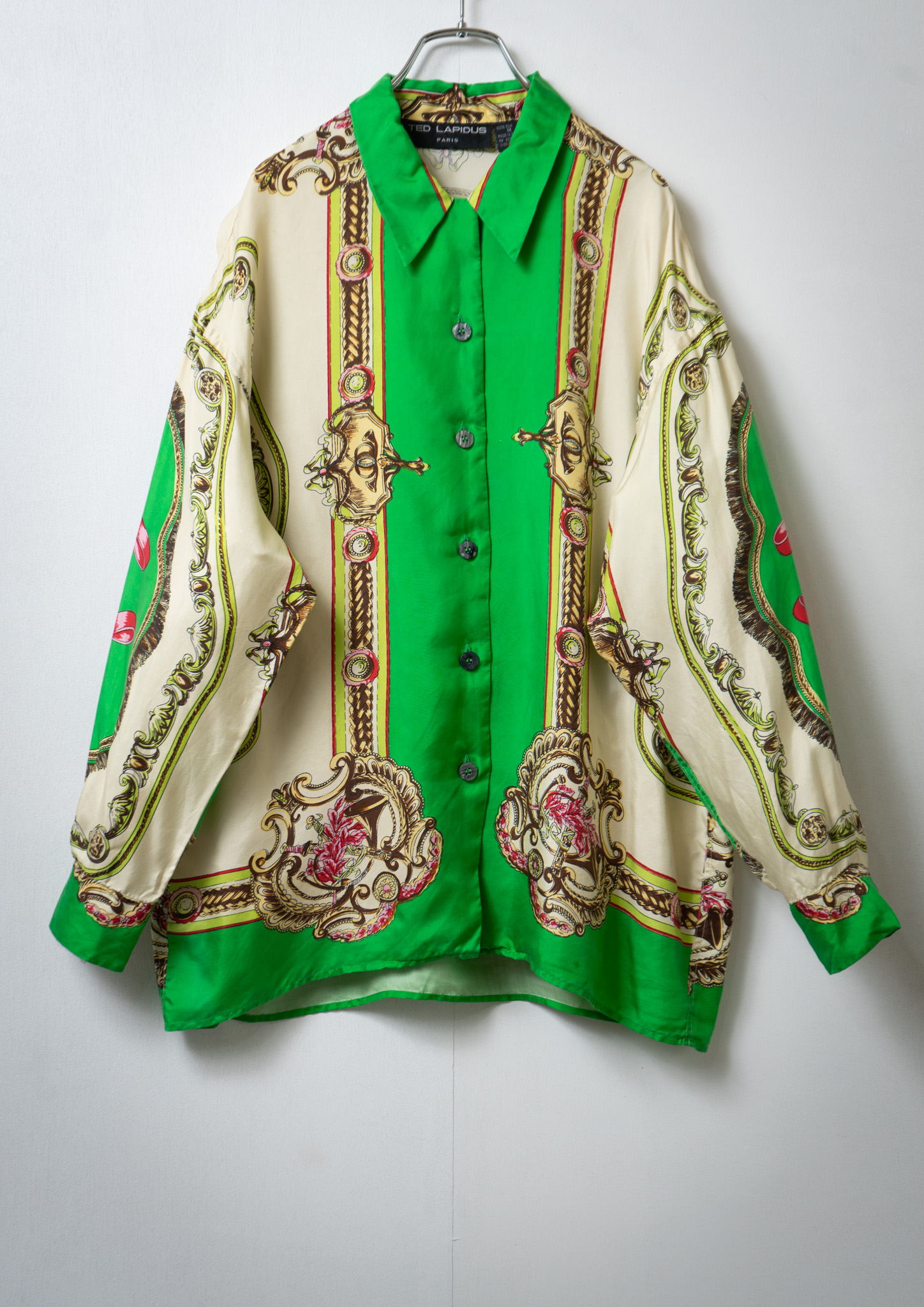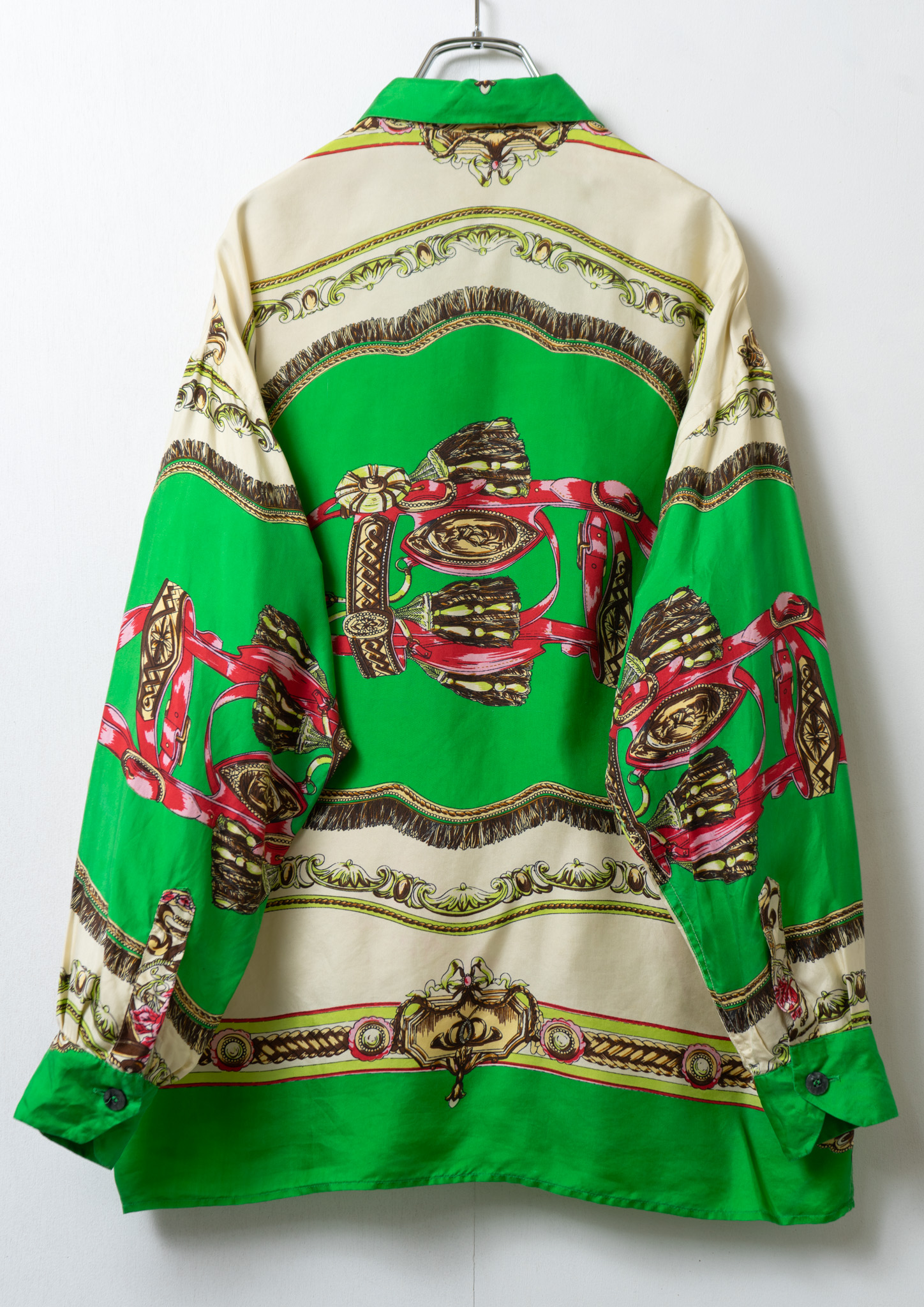 80’s Scarf Like Pattern Light Green Blouse
