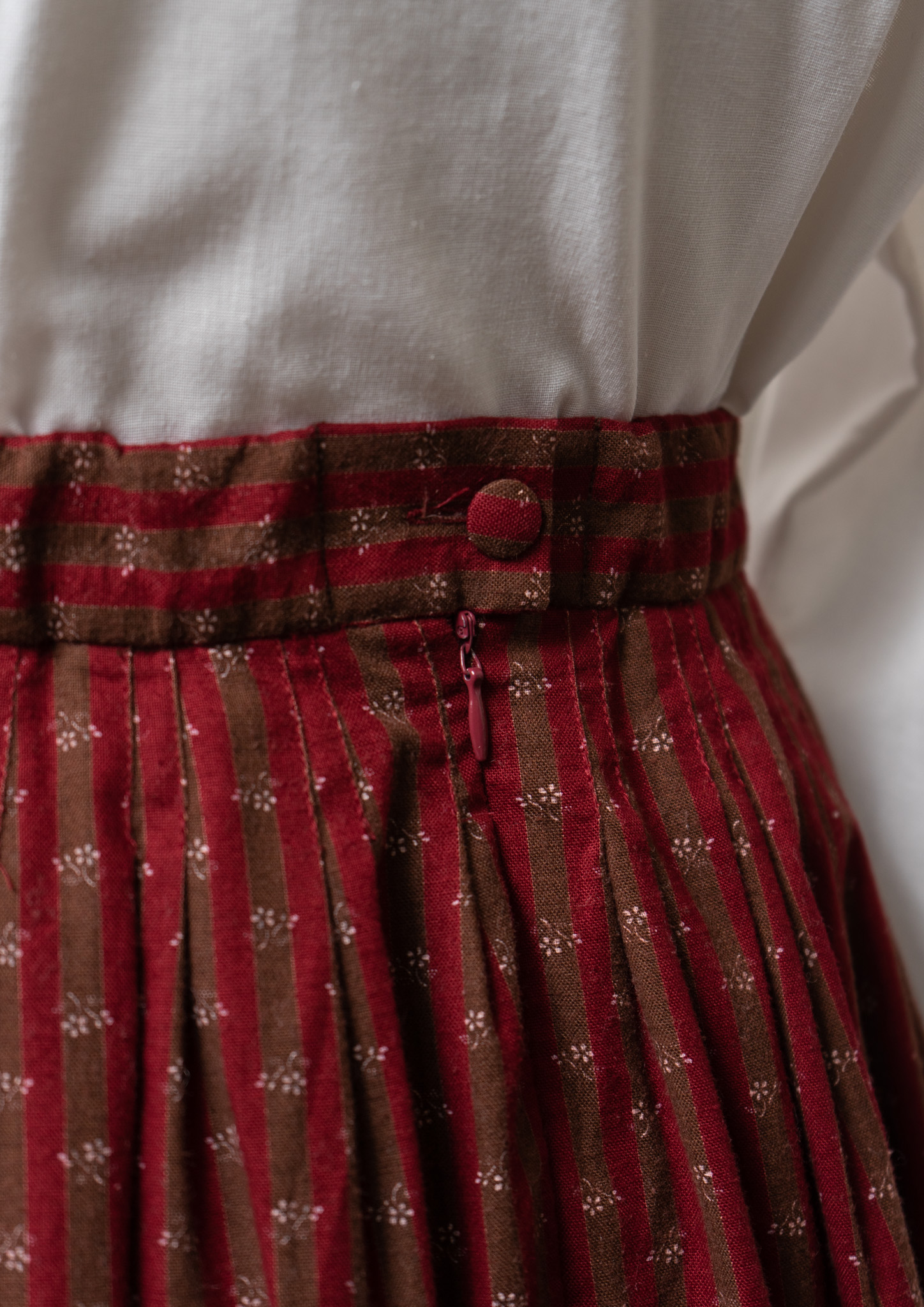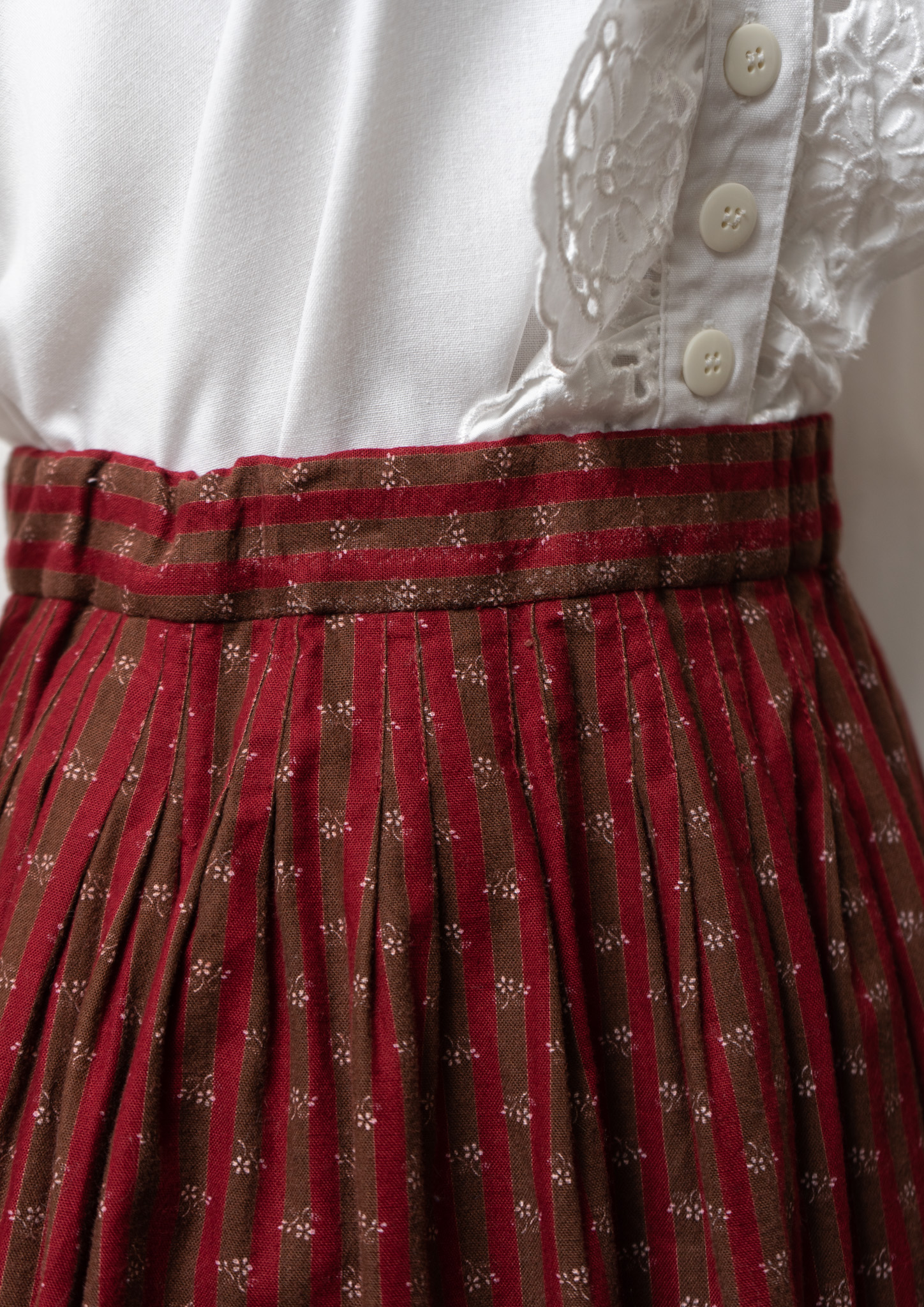 70's Euro Stripe × Small Flower Pattern Tyrol Skirt