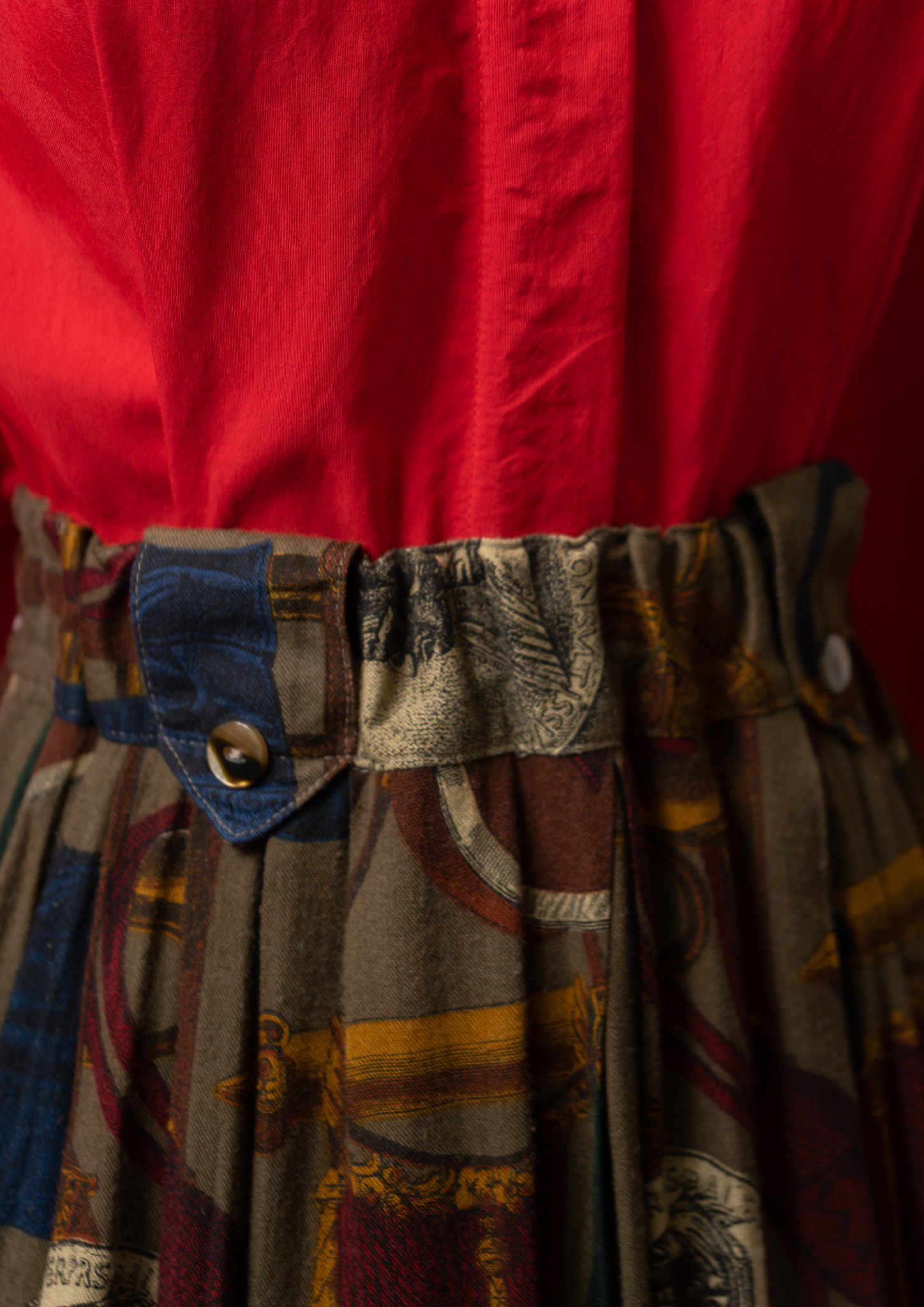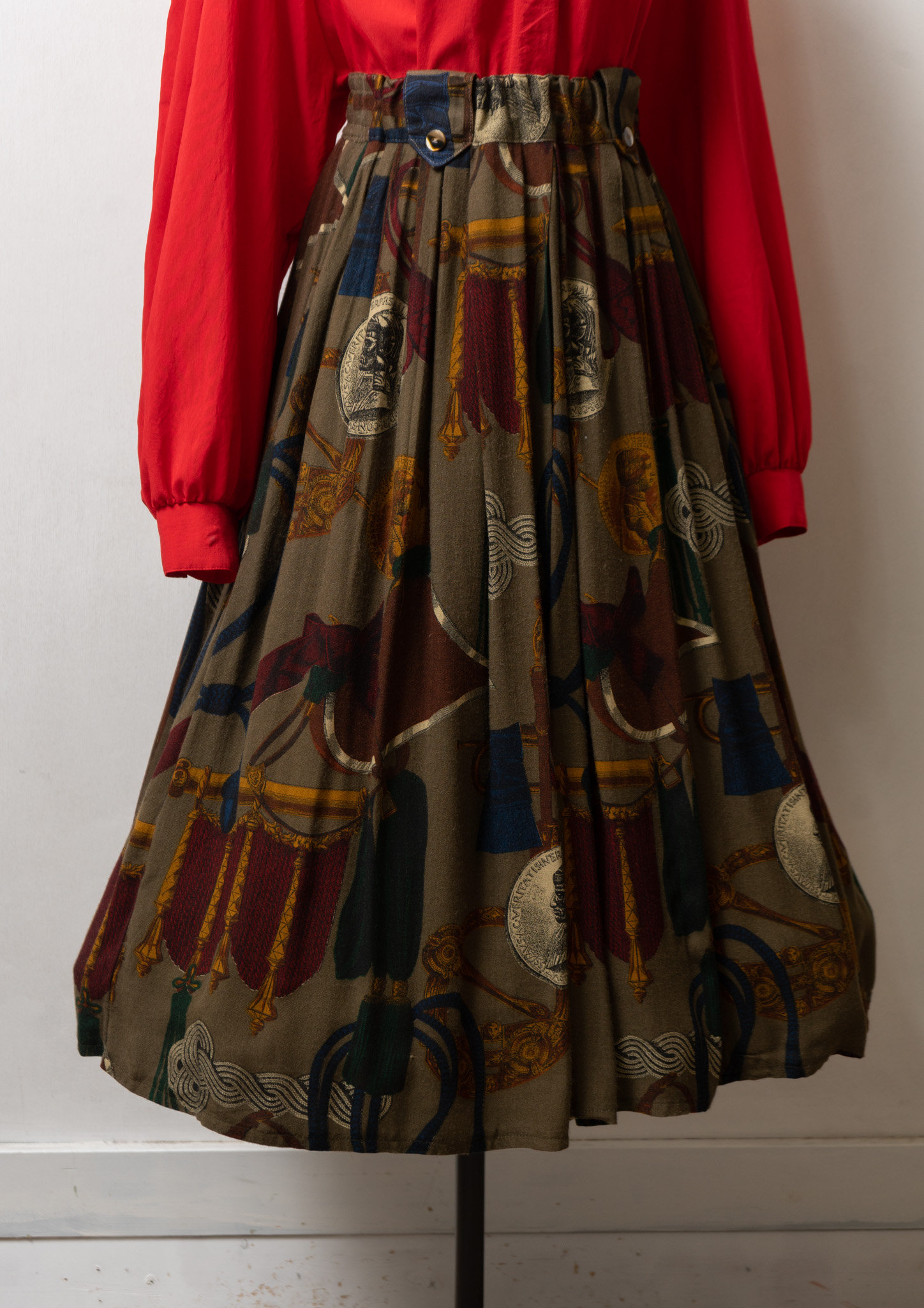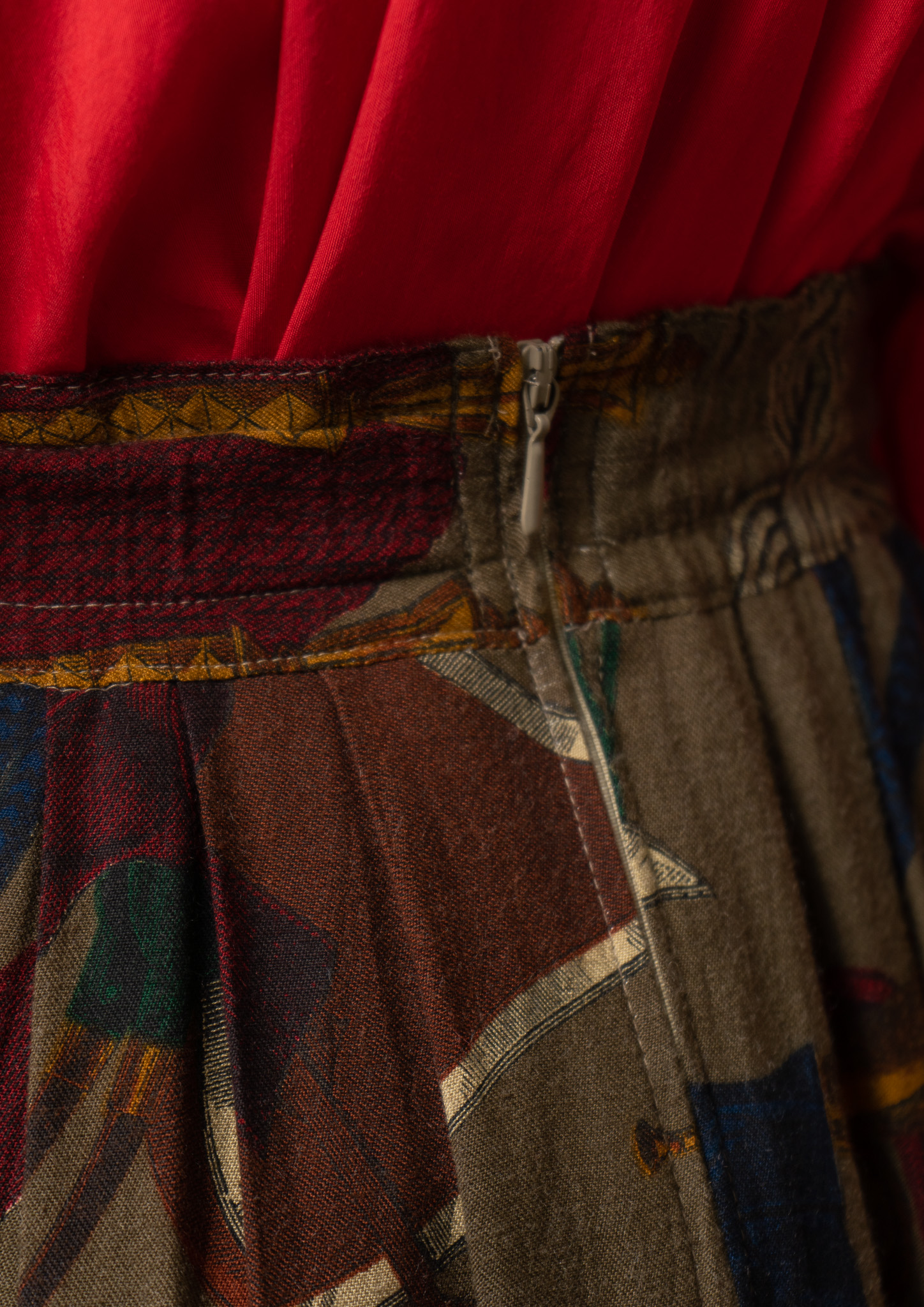 70's Euro Stripe × Small Flower Pattern Tyrol Skirt