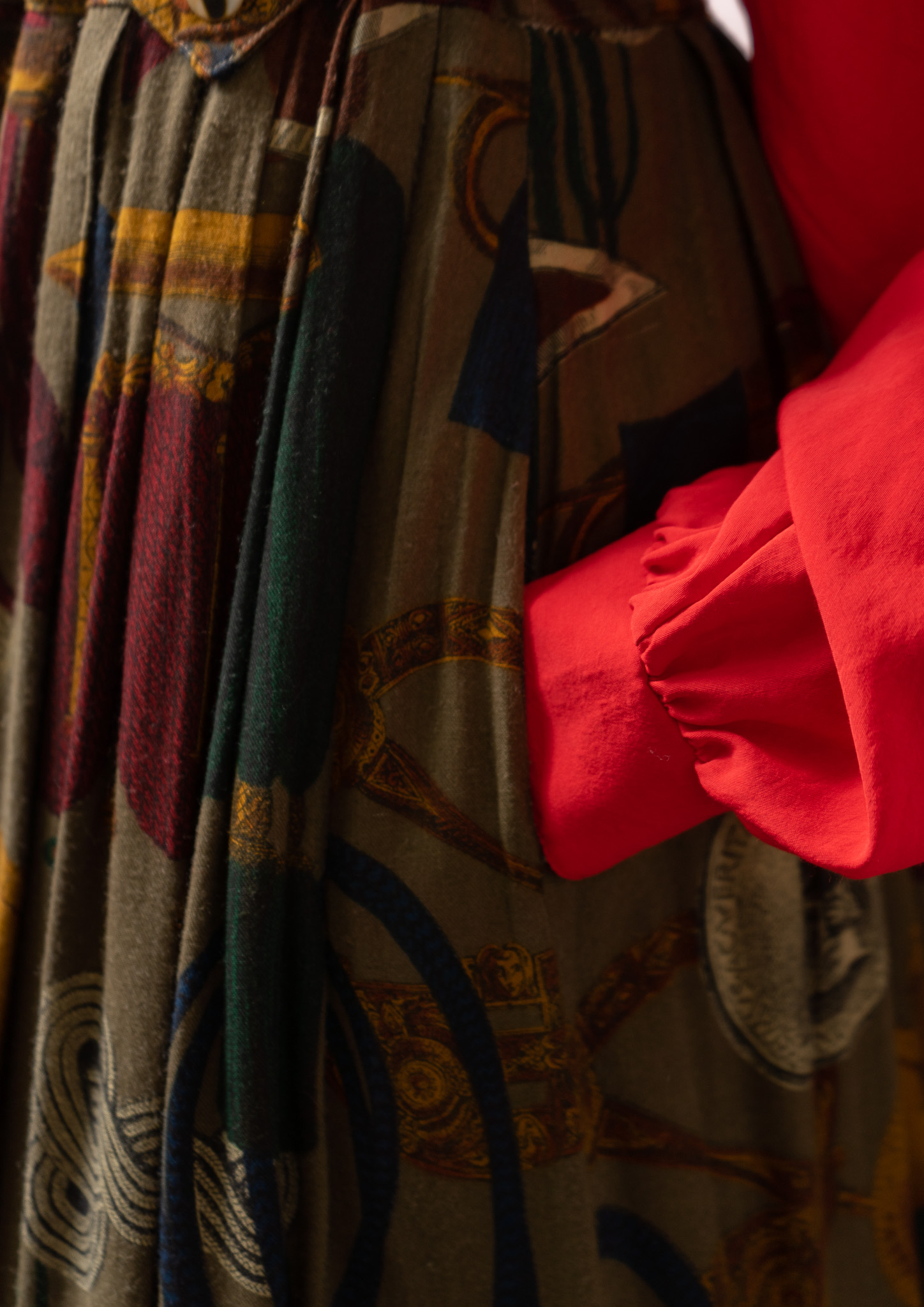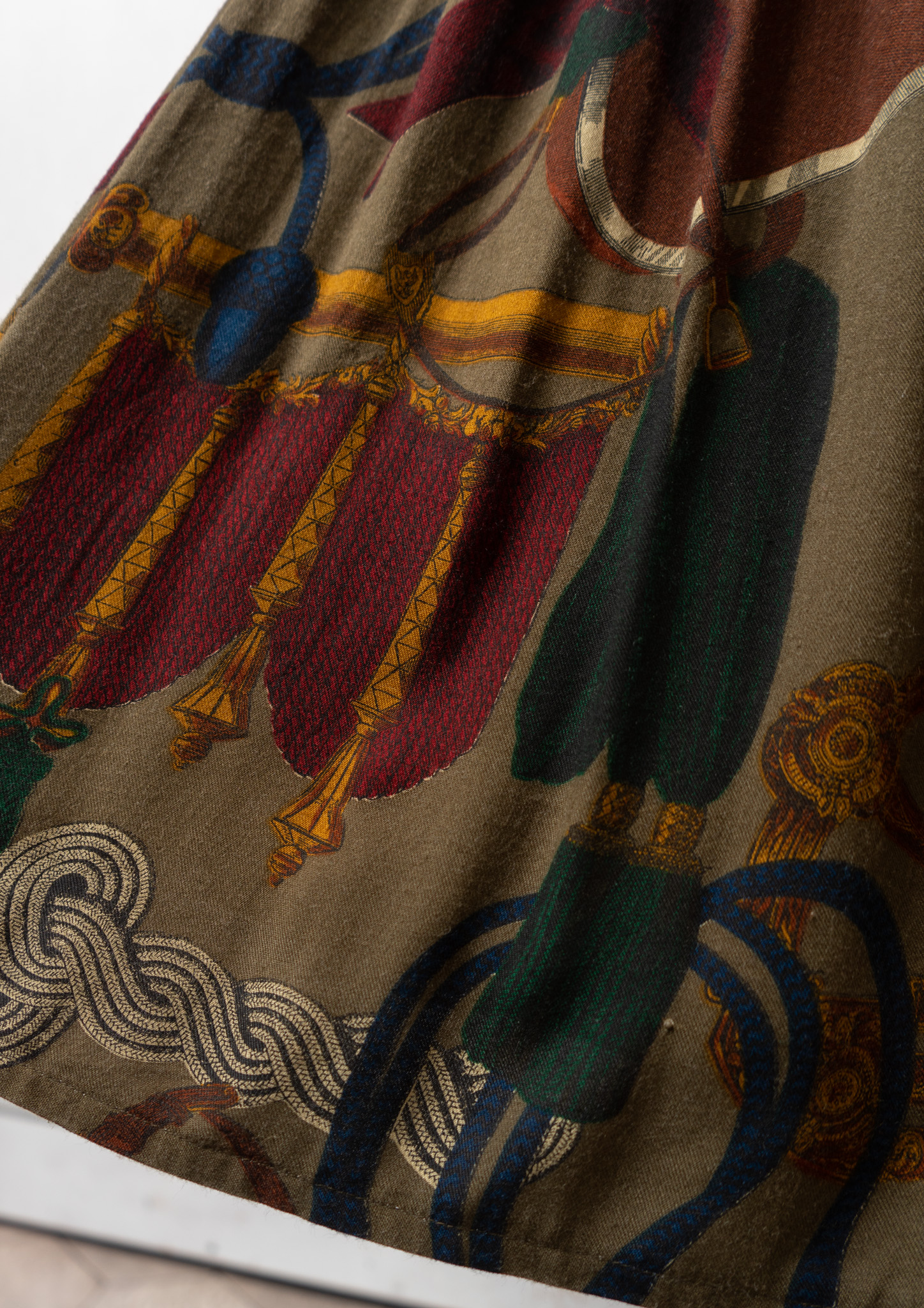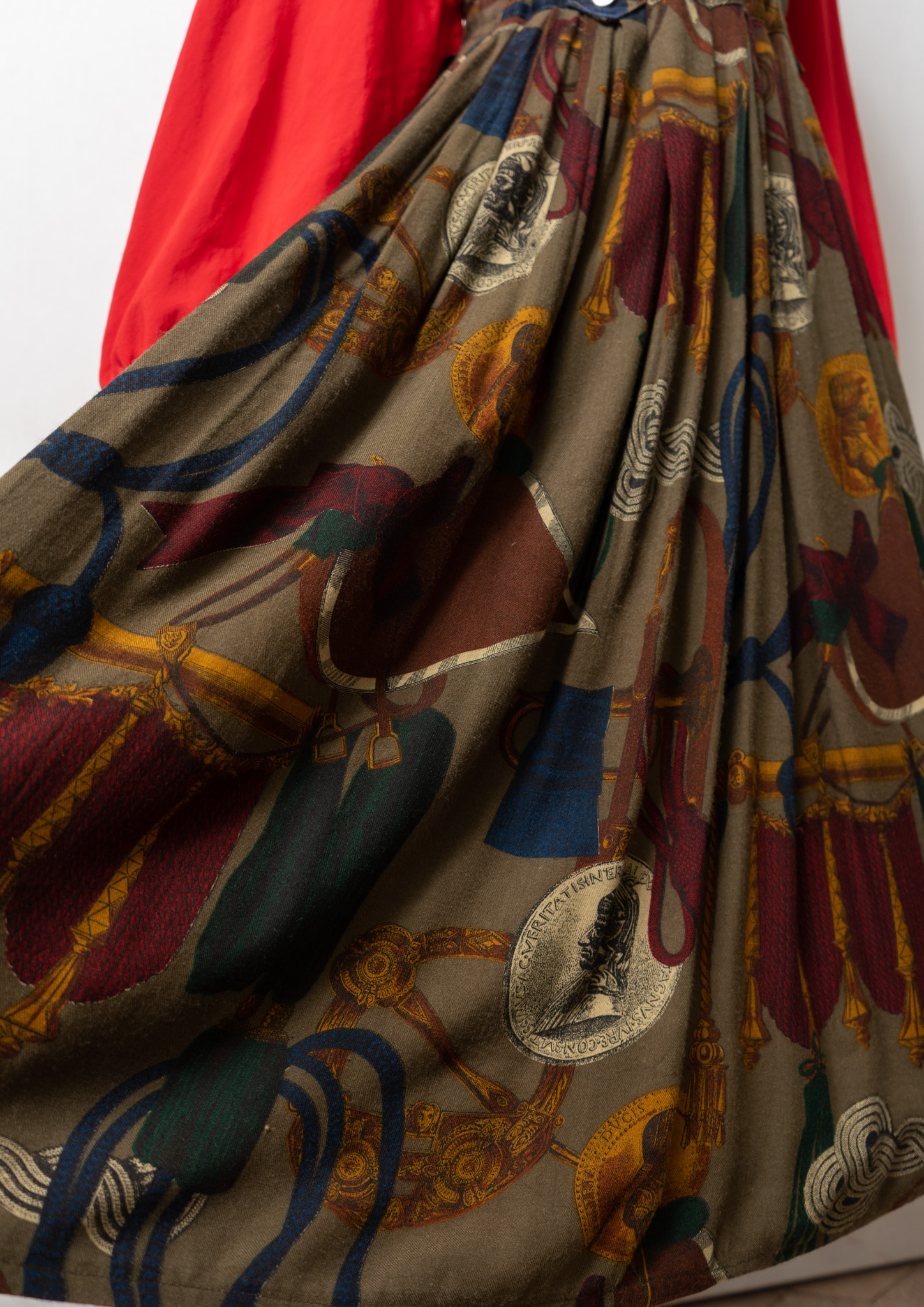 70's Euro Stripe × Small Flower Pattern Tyrol Skirt