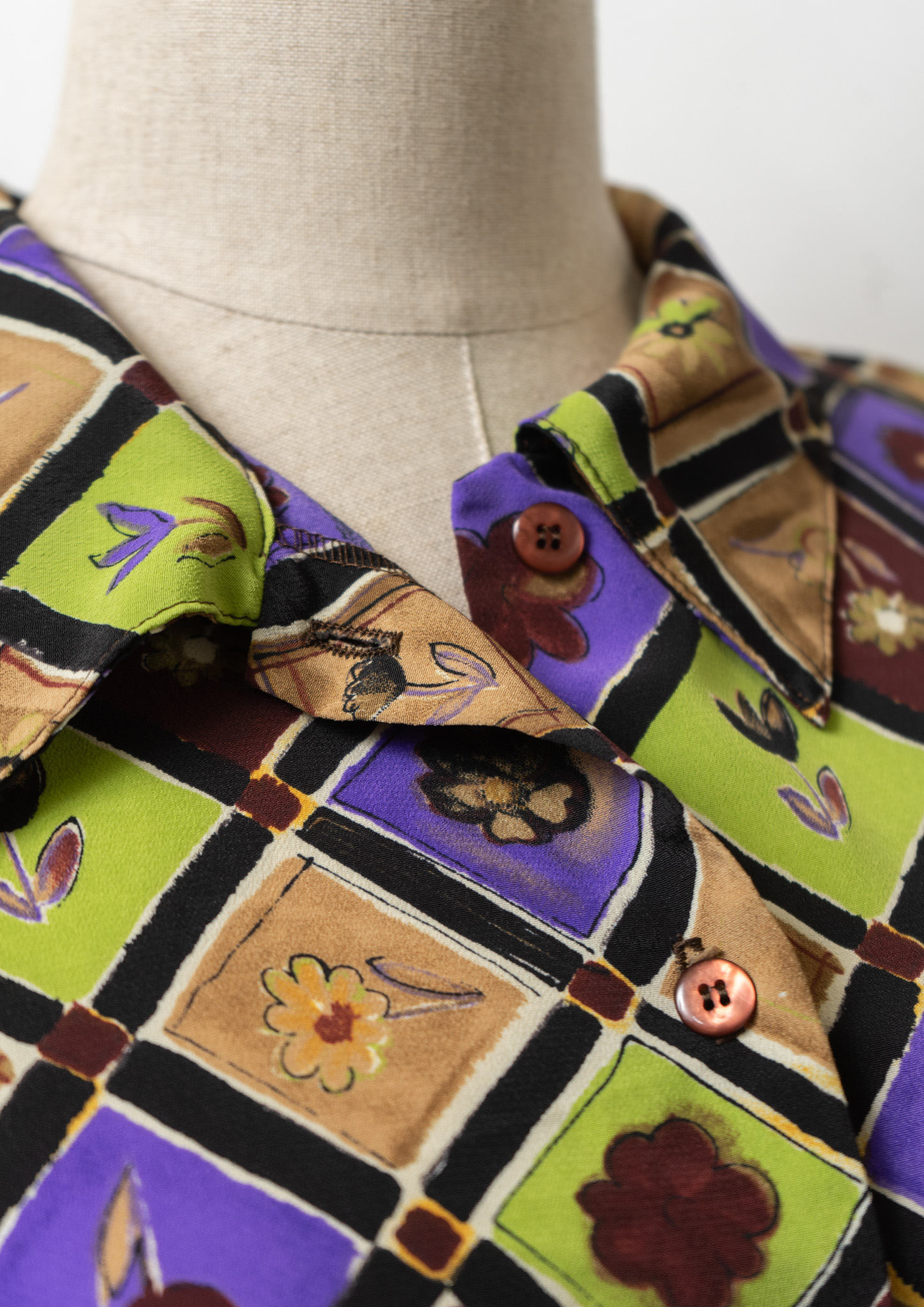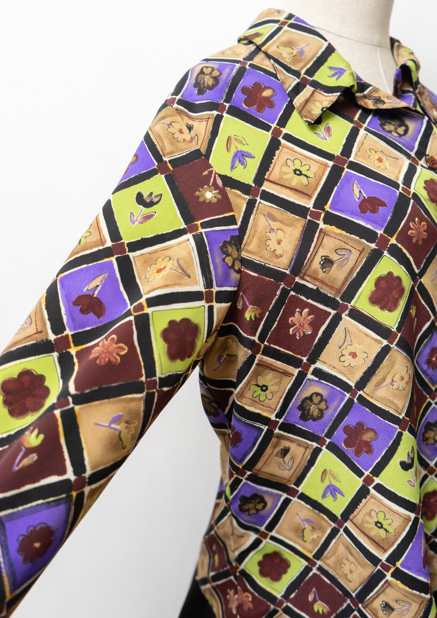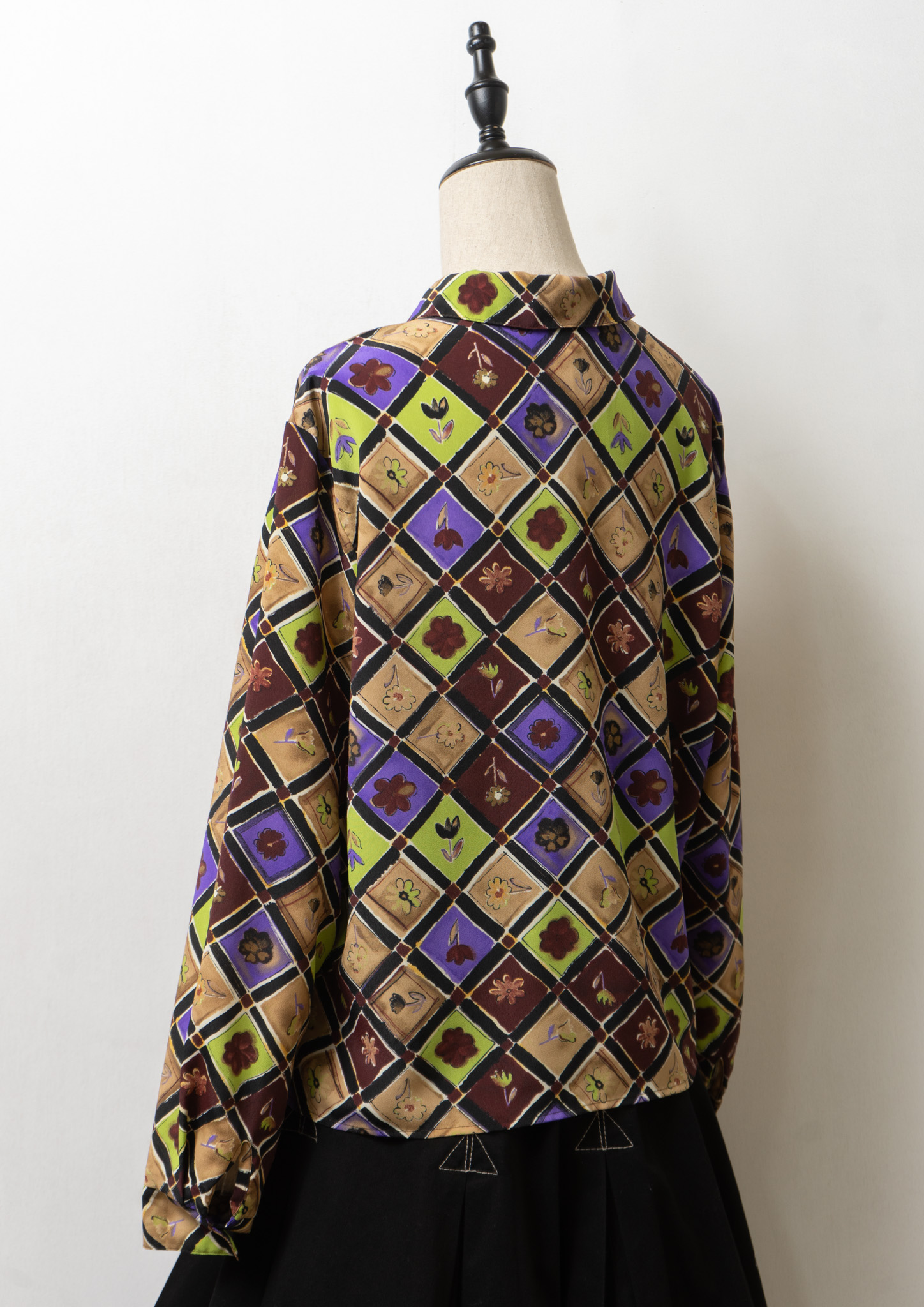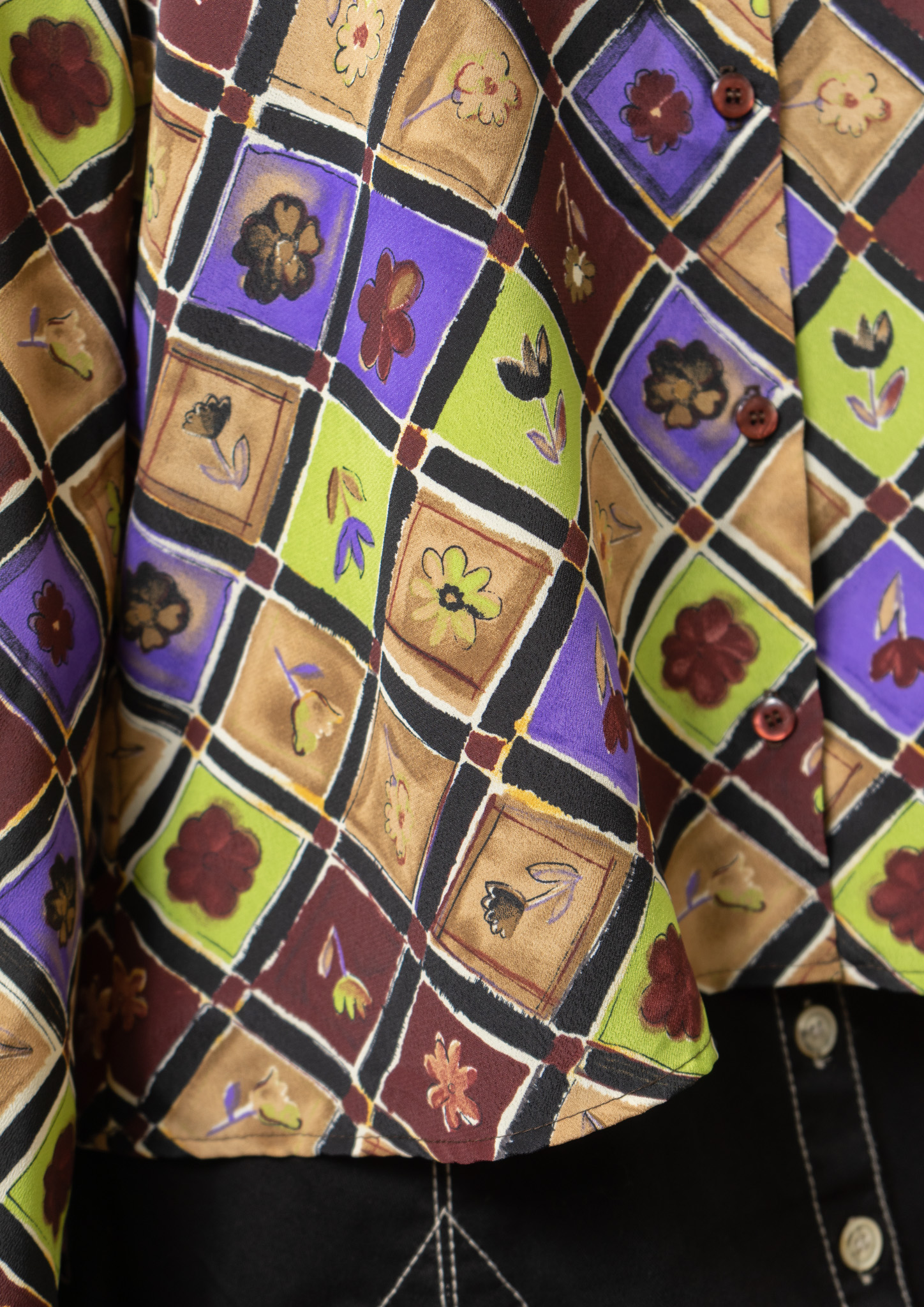 90's USA Flower Patchwork Like Pattern Blouse