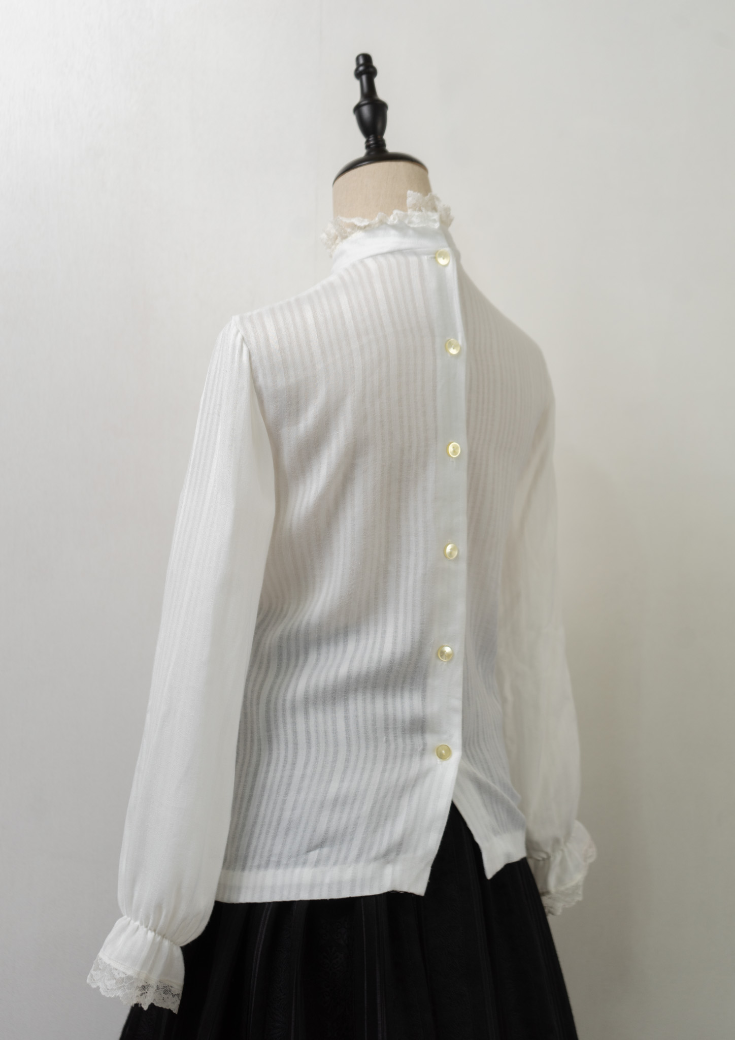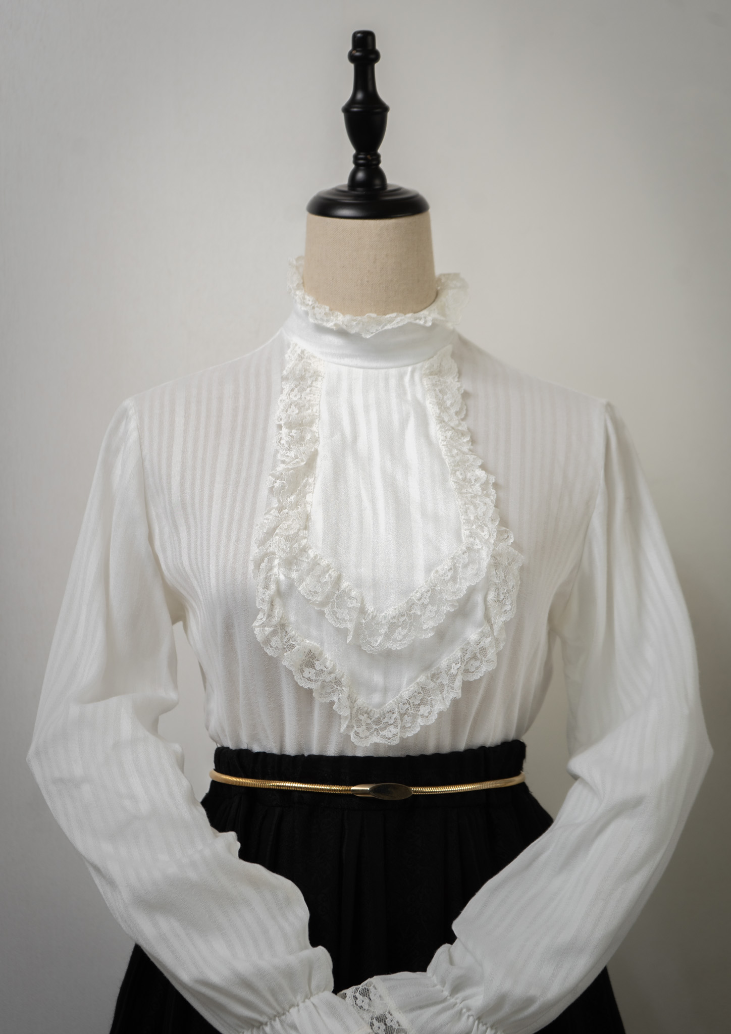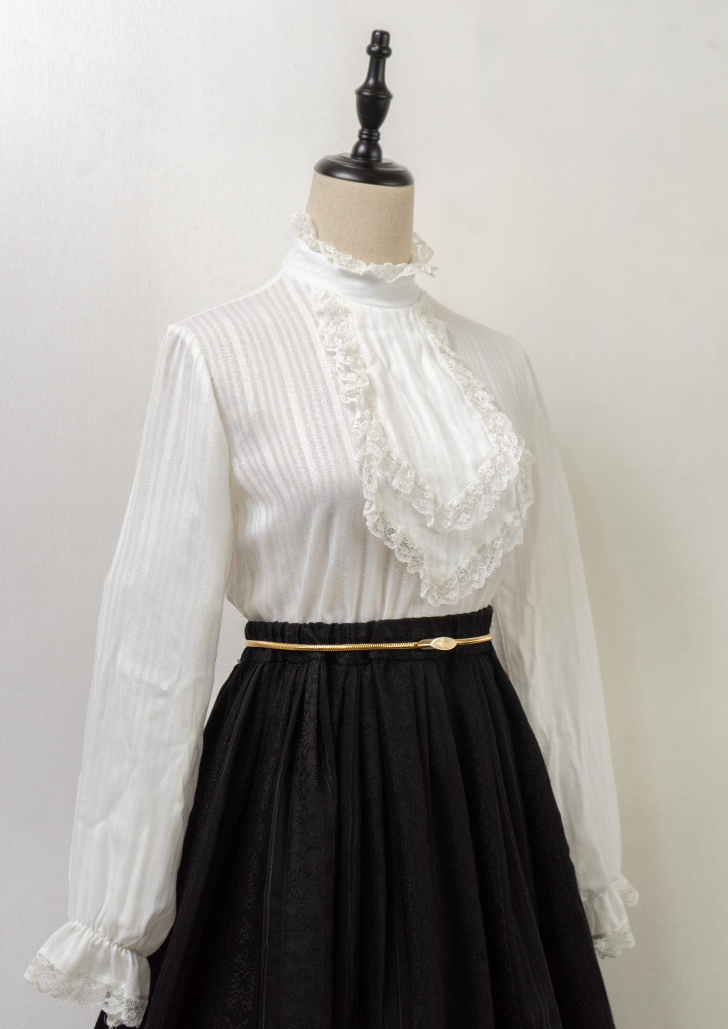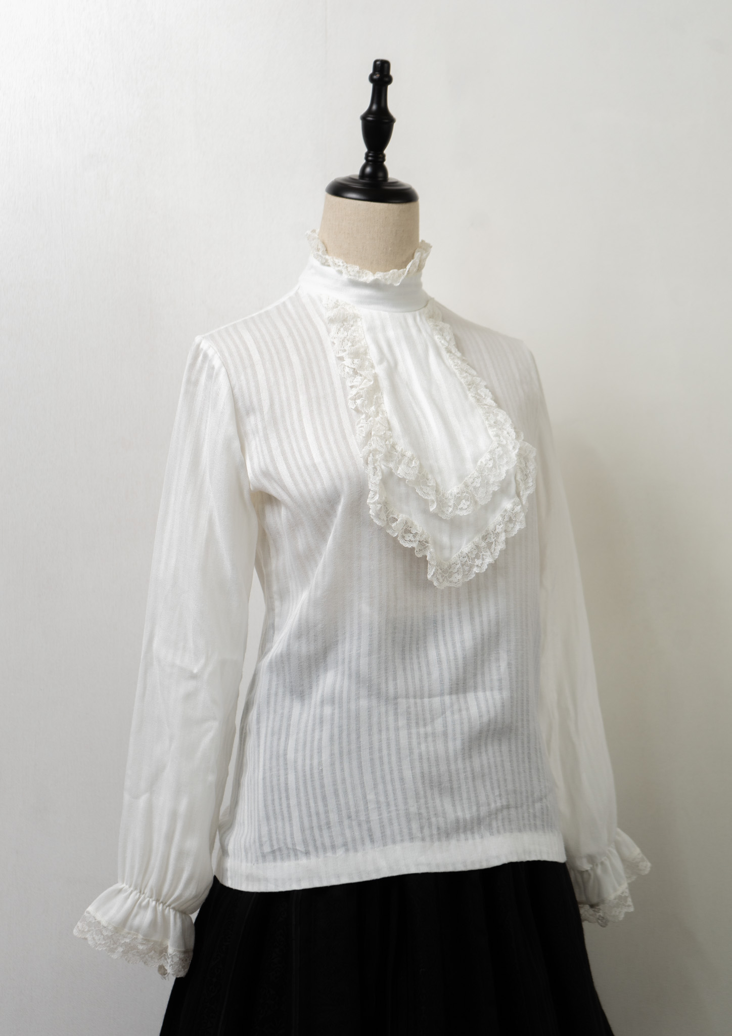 70's Frill Neck Jabot Like Collar White Blouse
