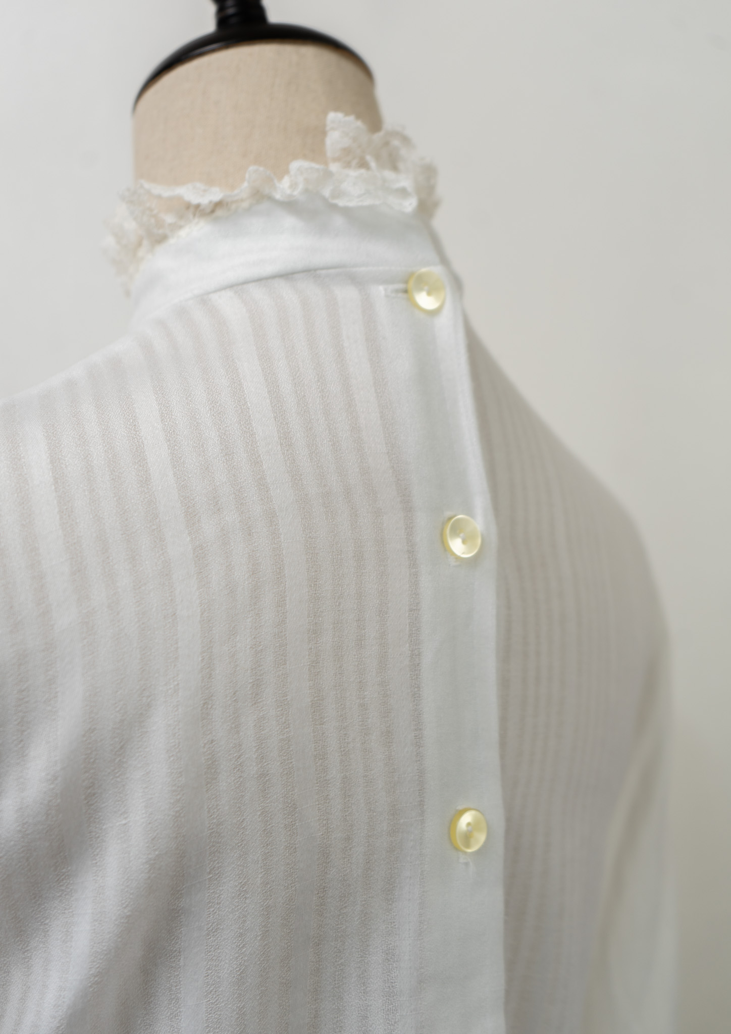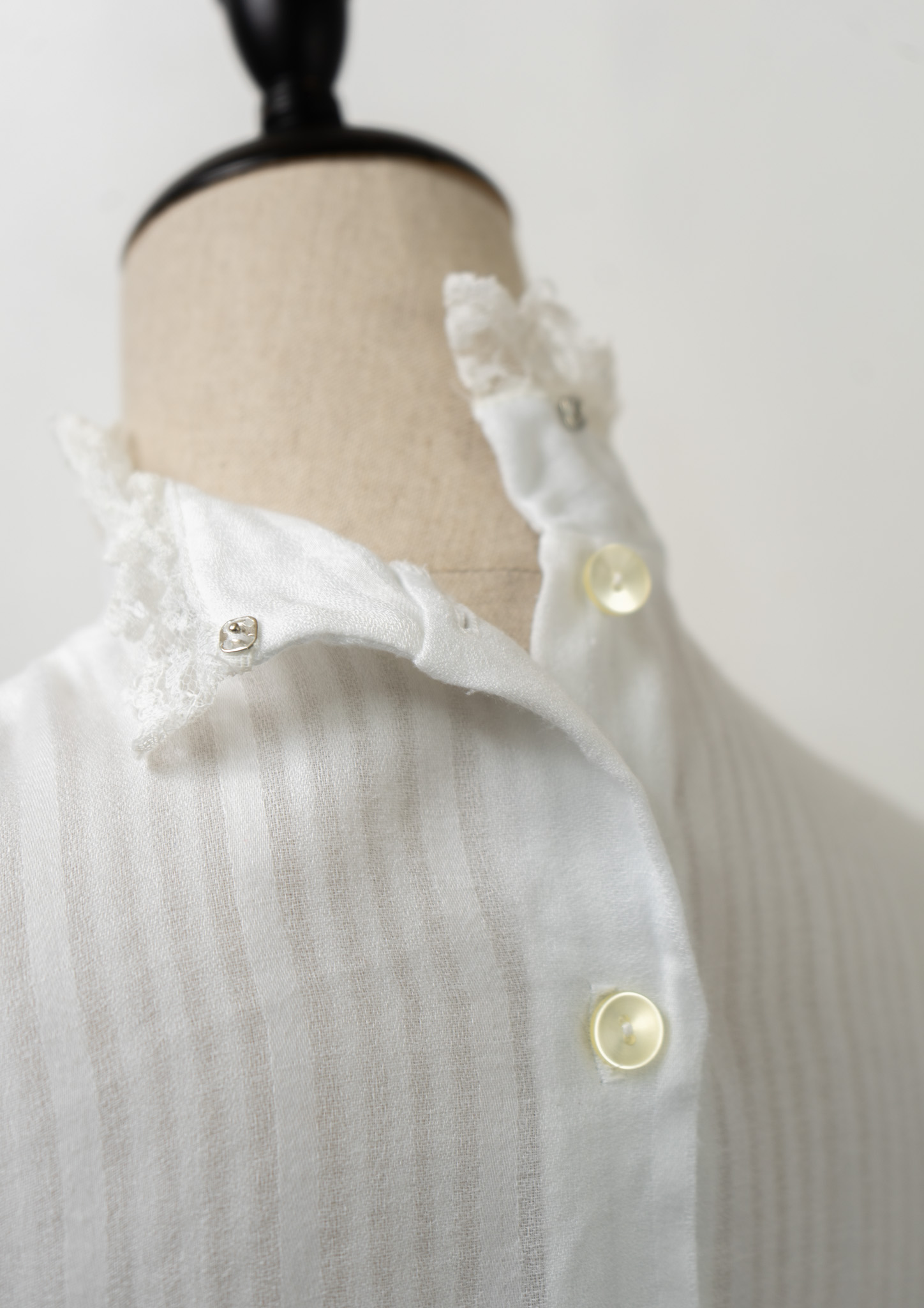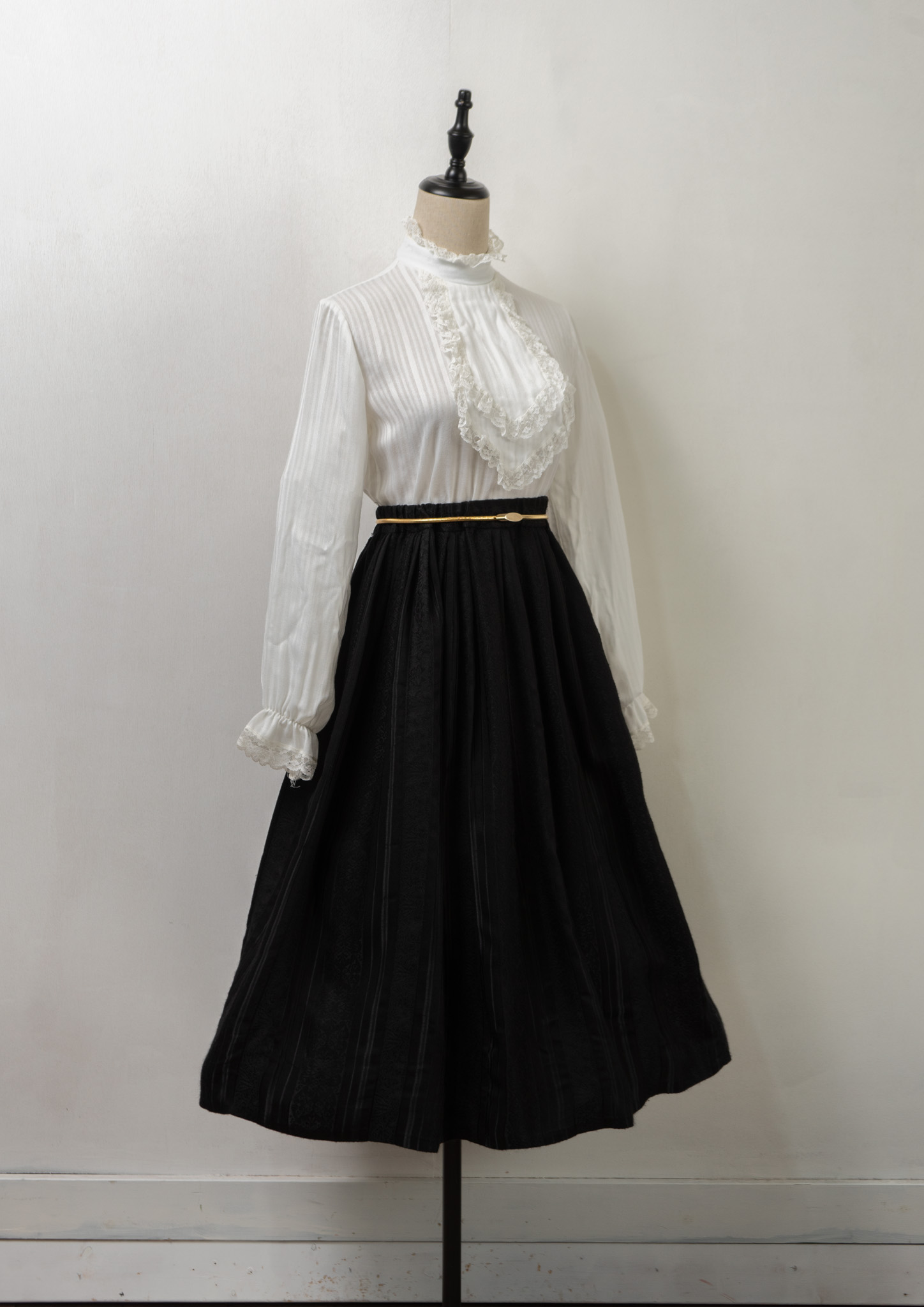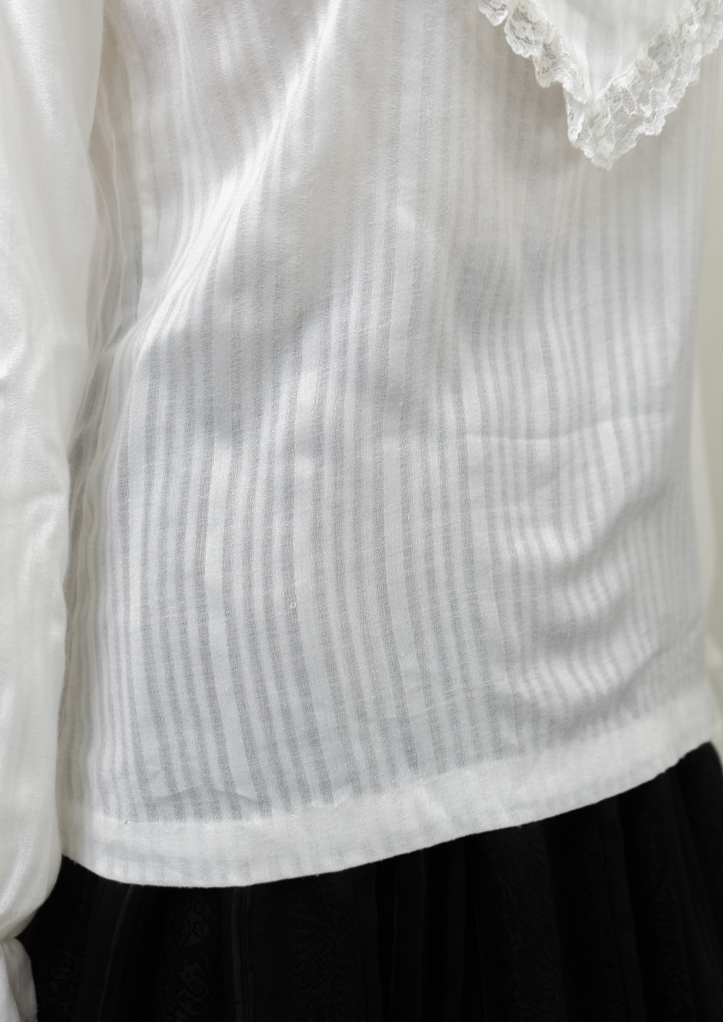 70's Frill Neck Jabot Like Collar White Blouse