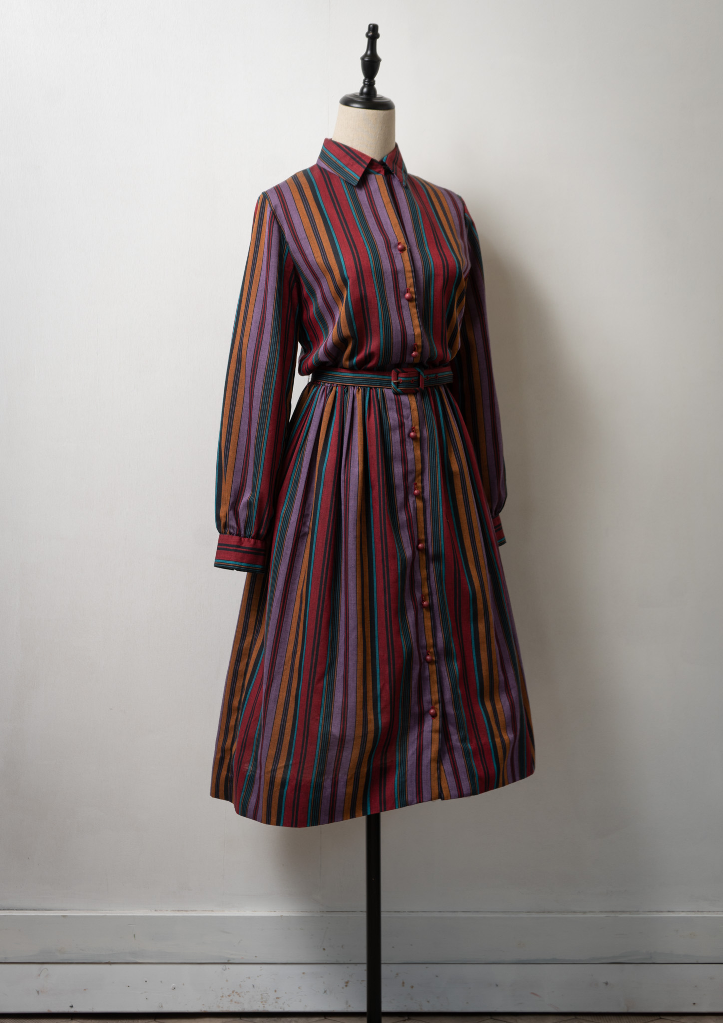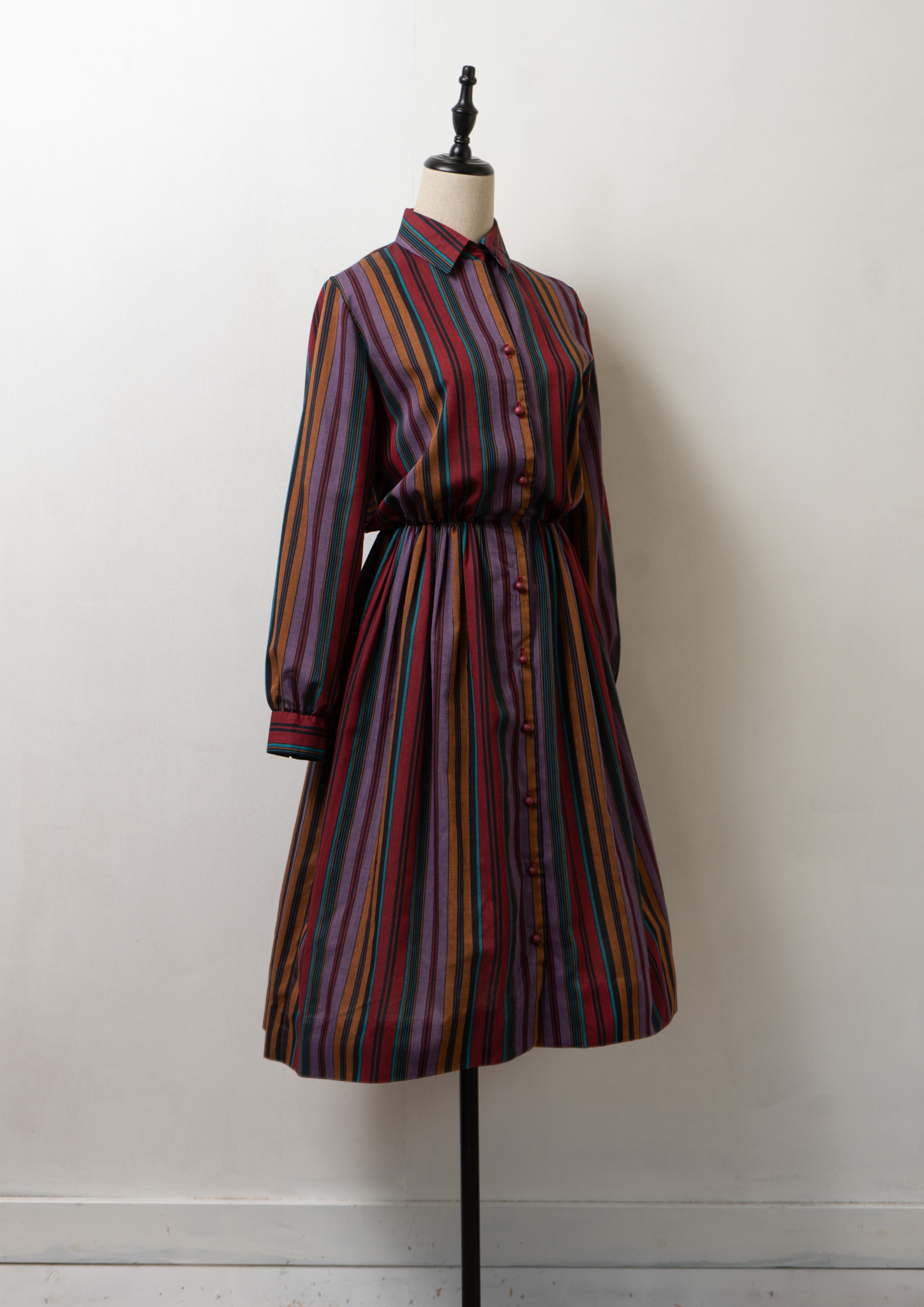 80~90's C&A Tuck Design Stripe Pattern Dress