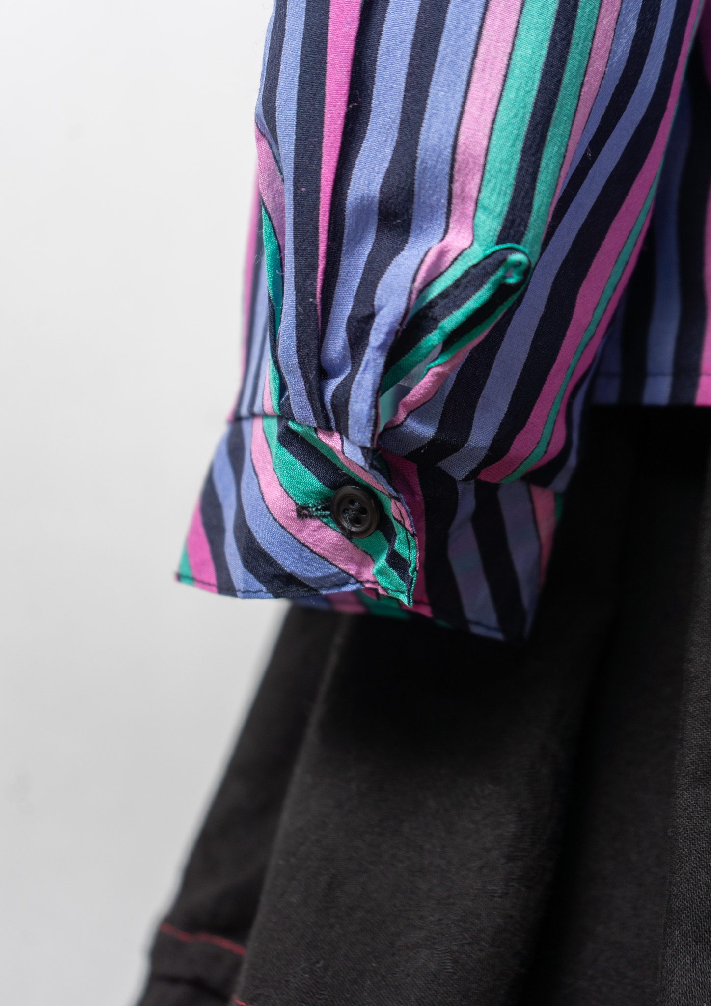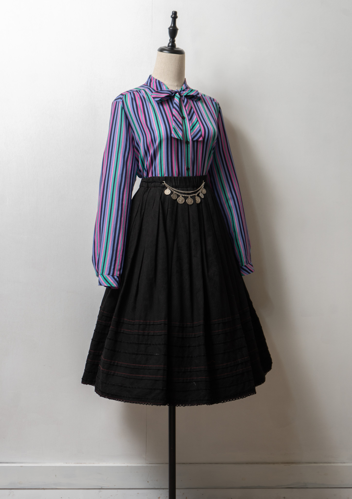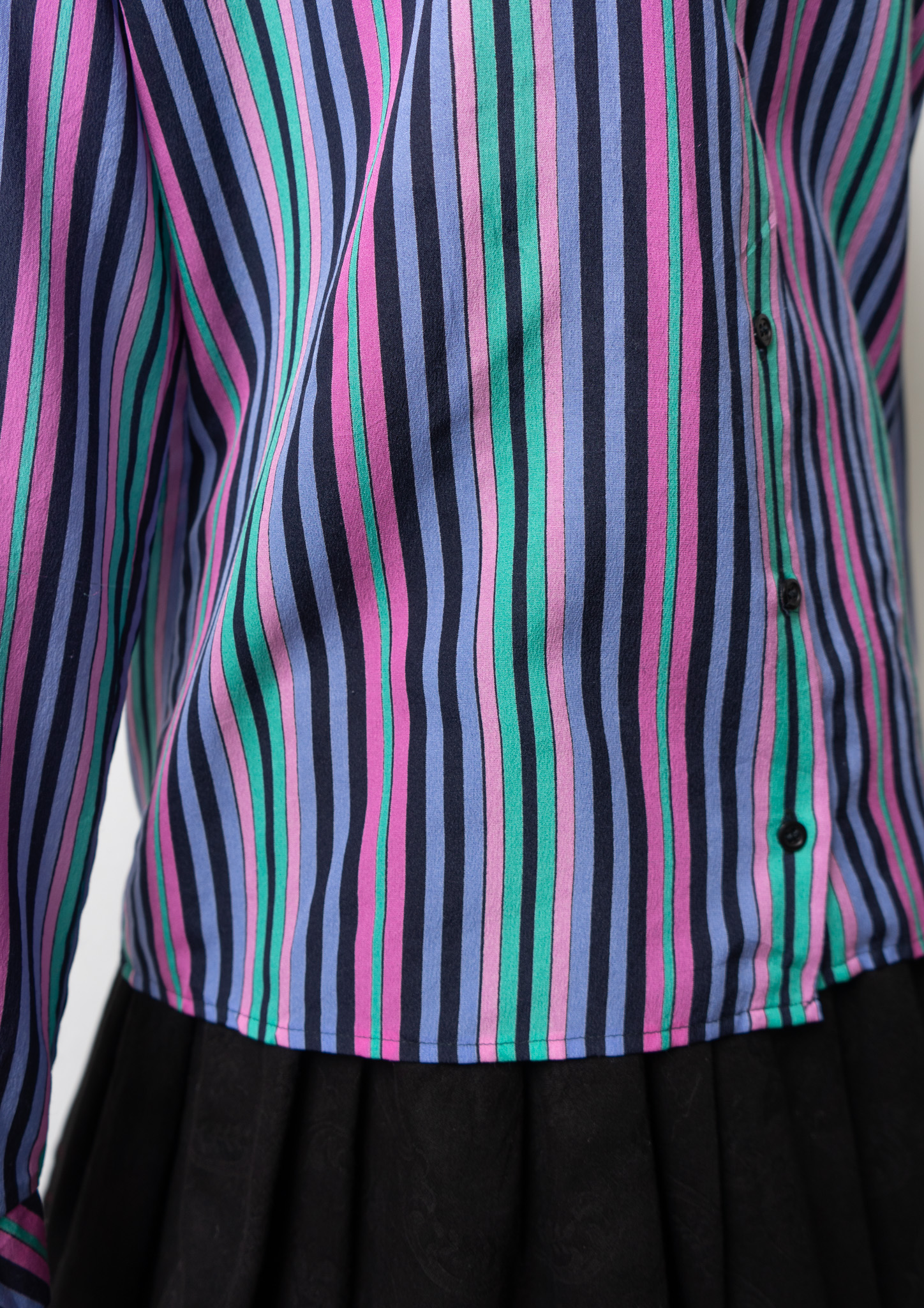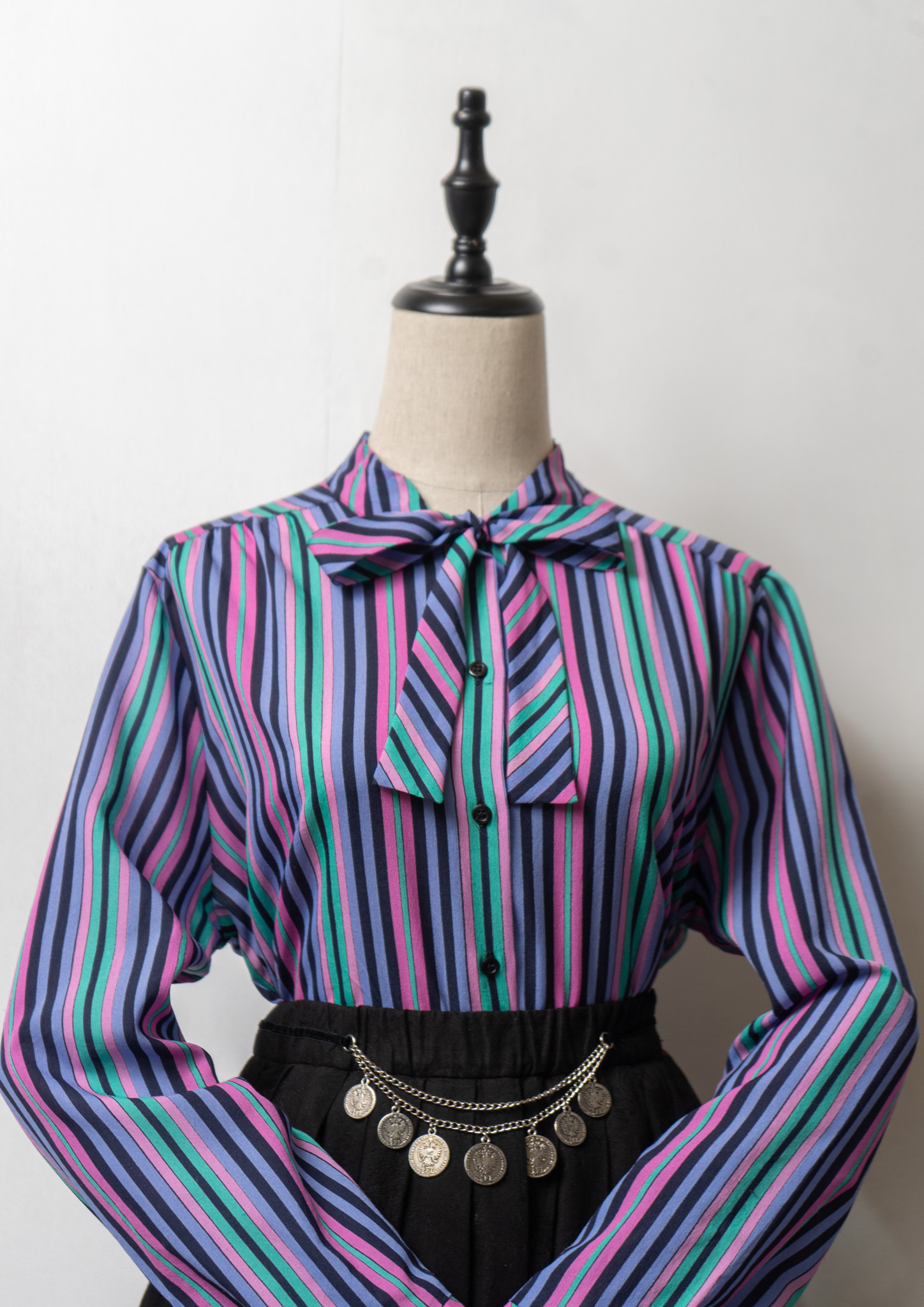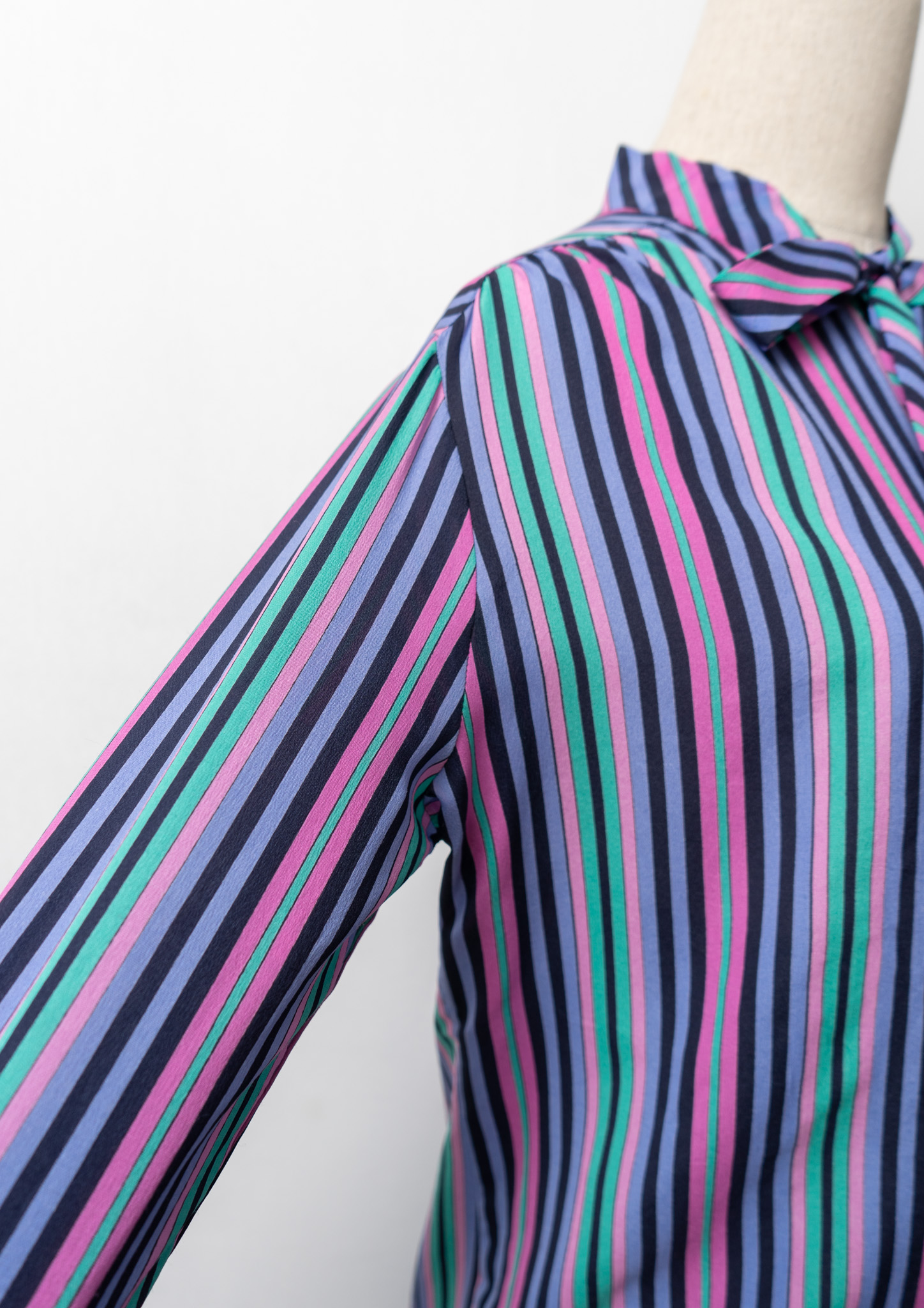 80's Multi Color Stripe Pattern Bow tie Blouse