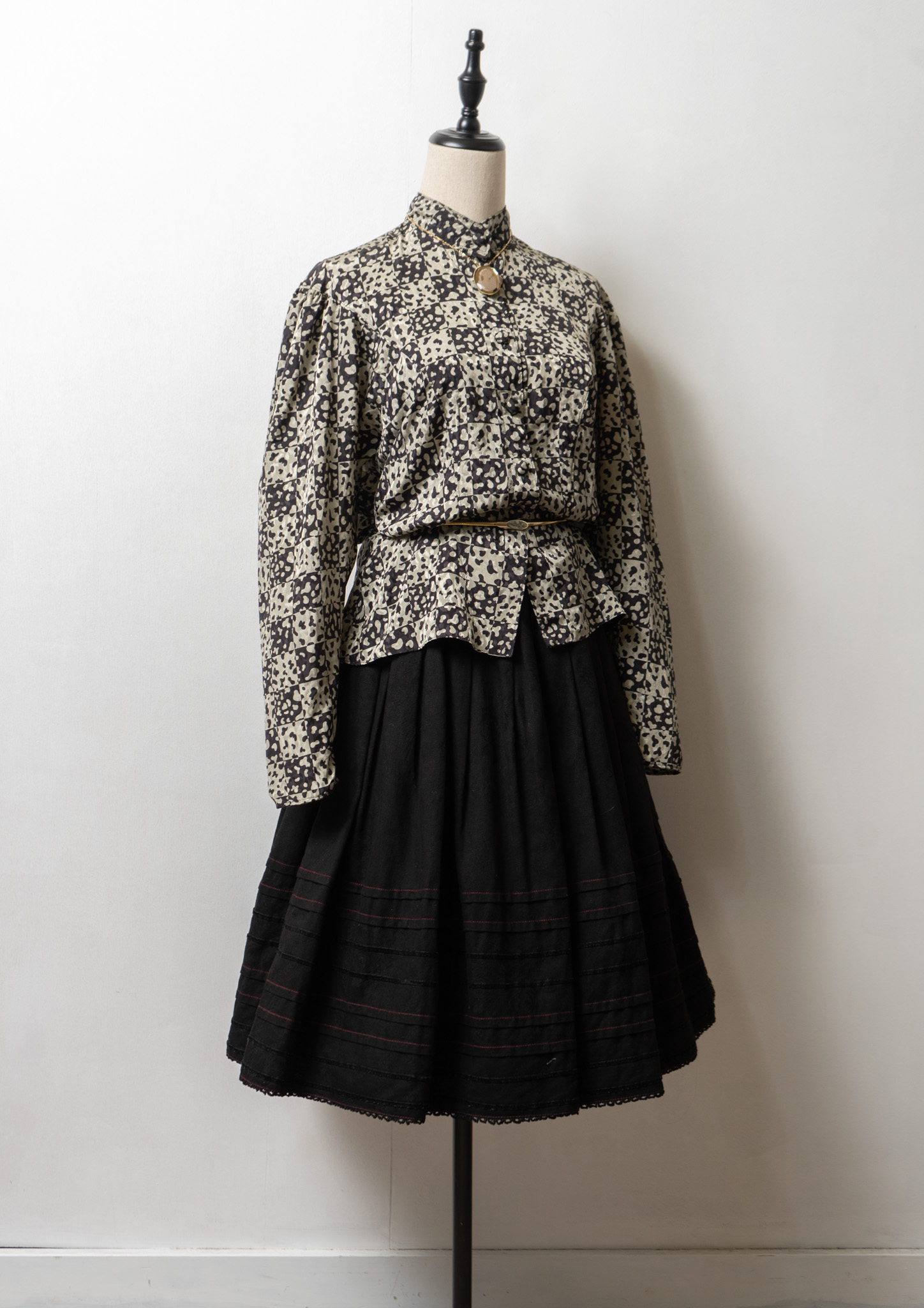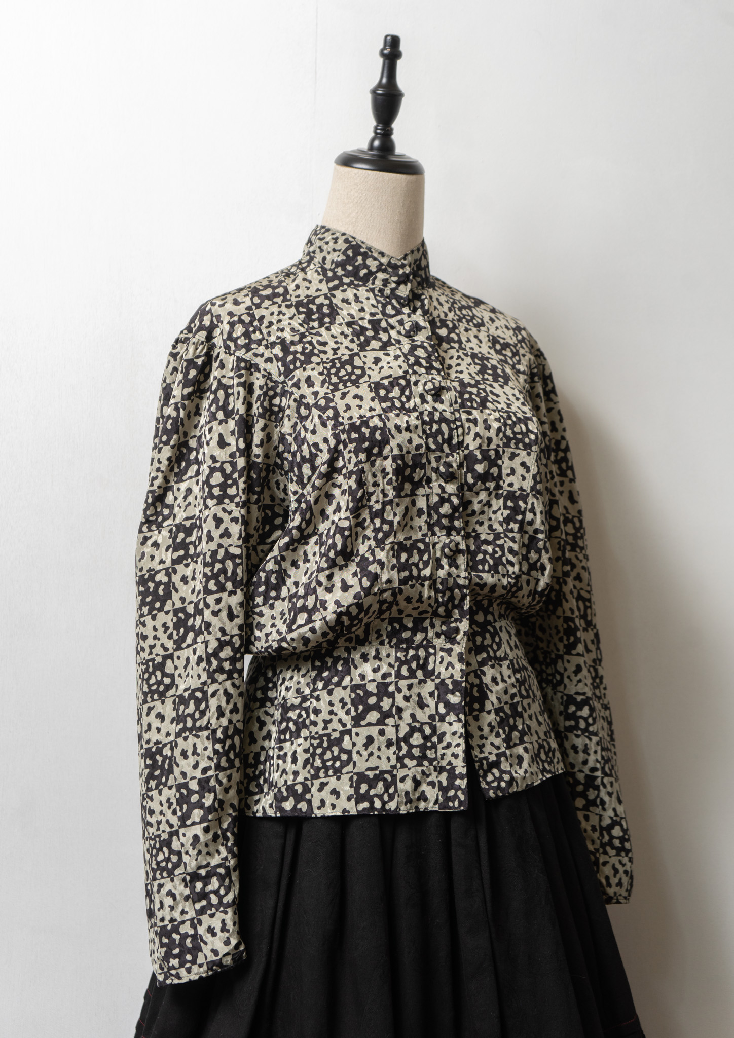 80~90's Stand Neck Art Pattern Blouse