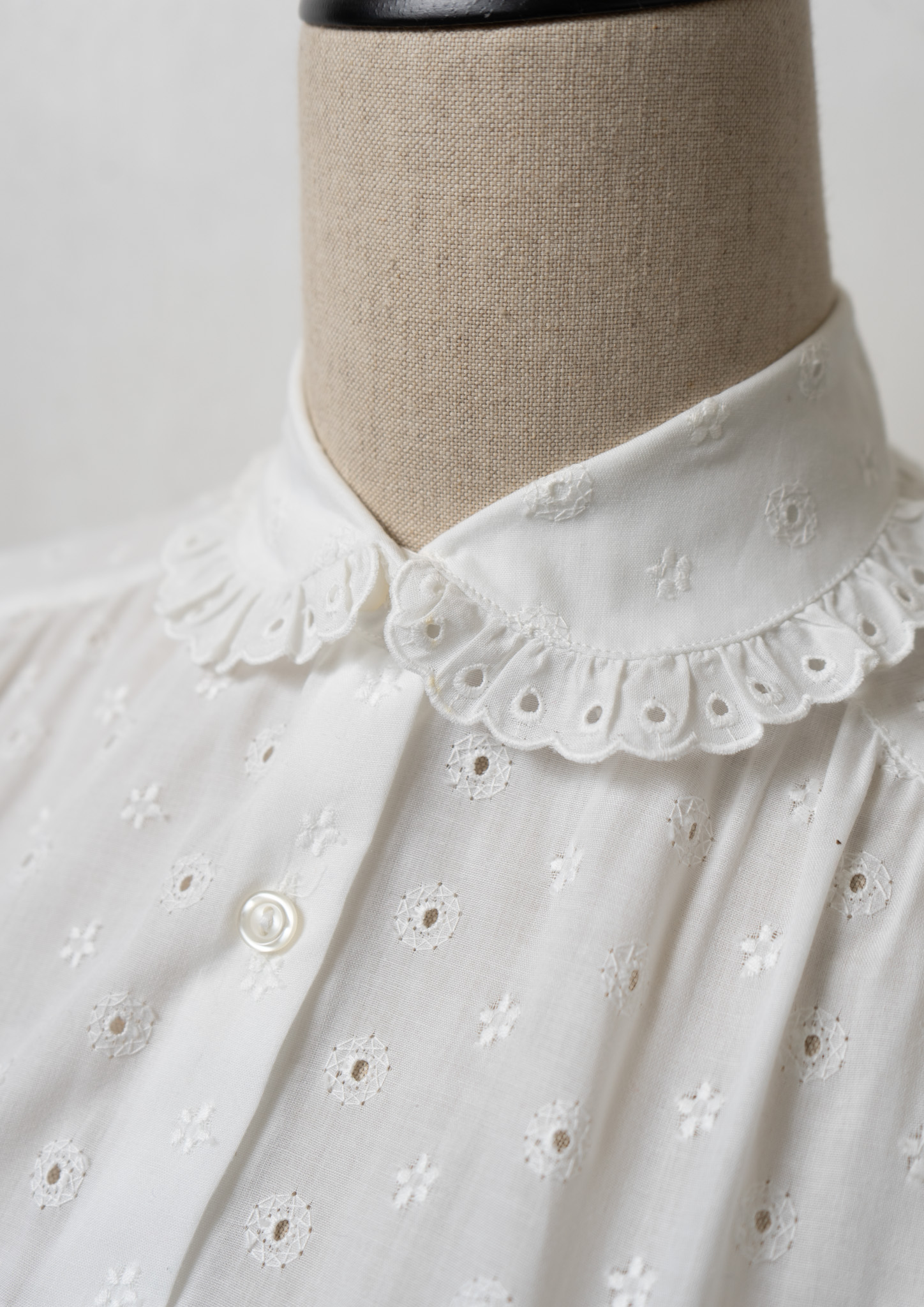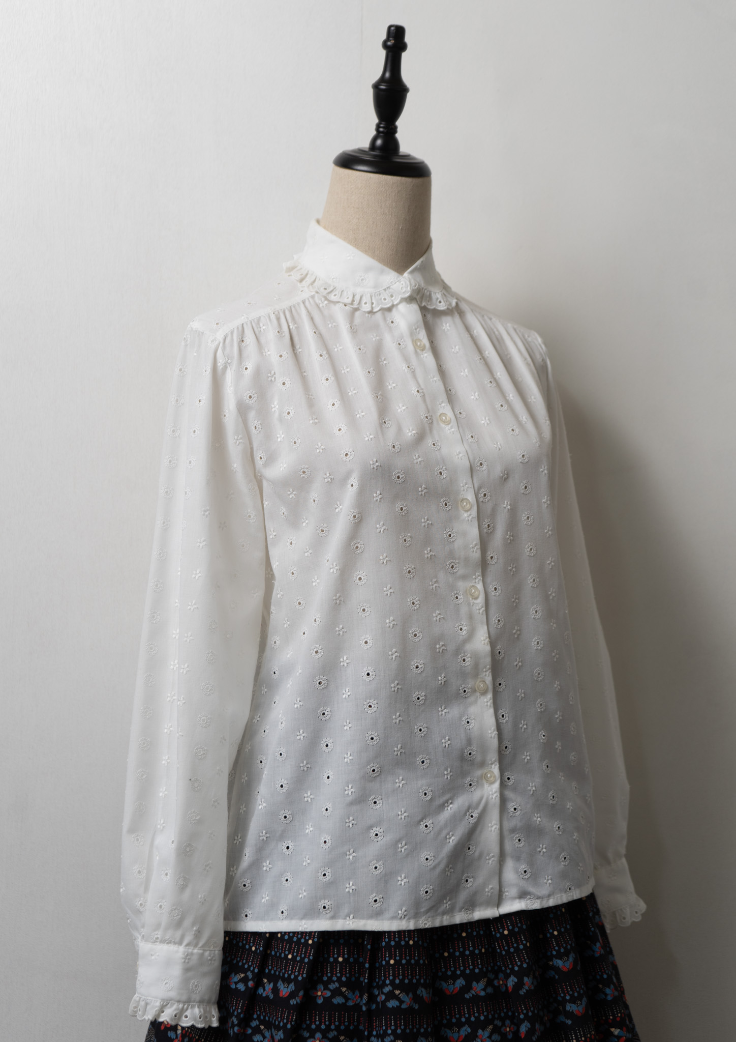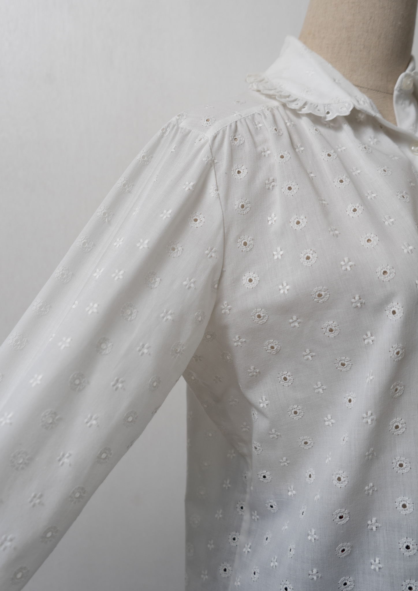 80's Euro Eyelet Lace Lace Design White Blouse