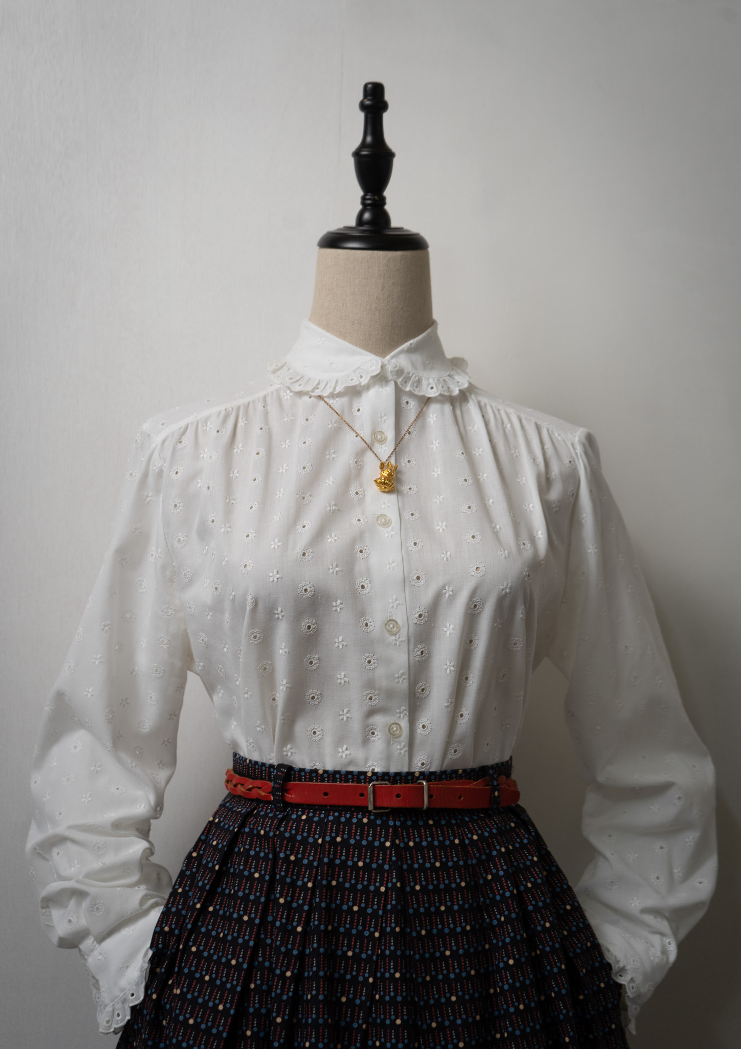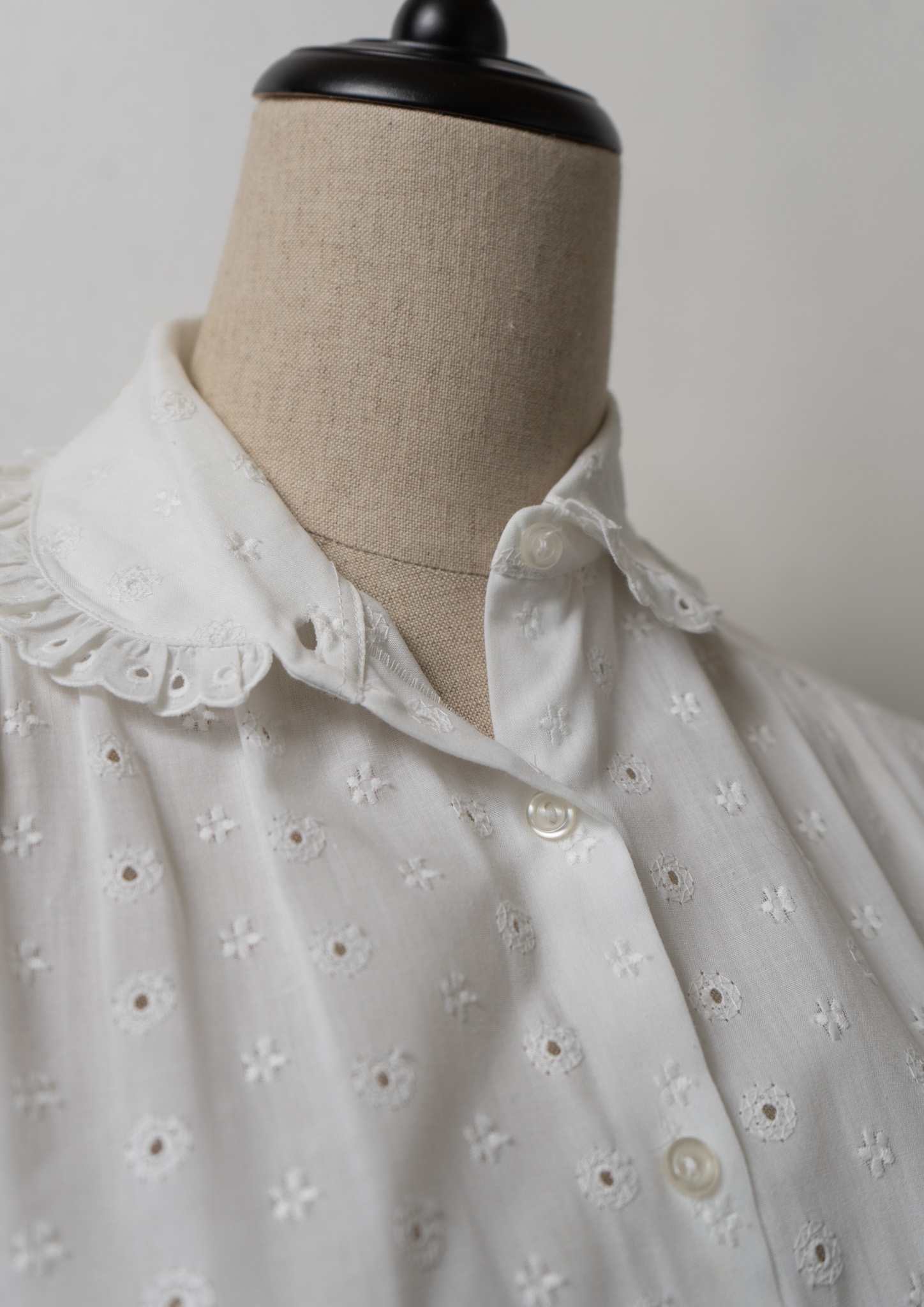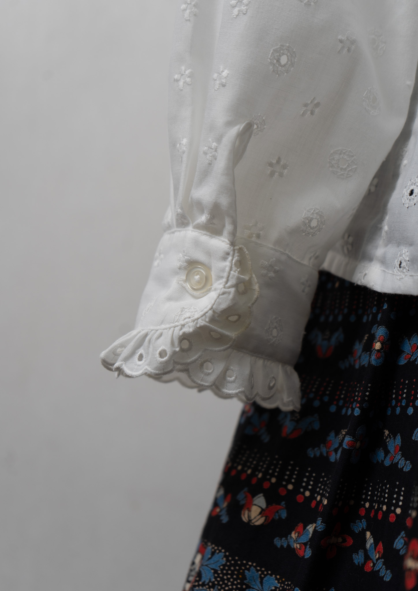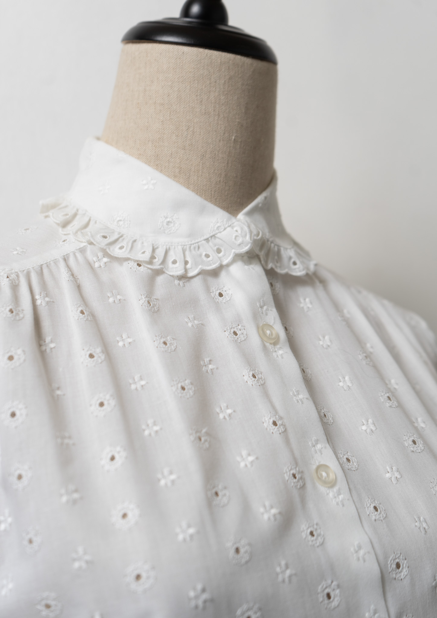 80's Euro Eyelet Lace Lace Design White Blouse