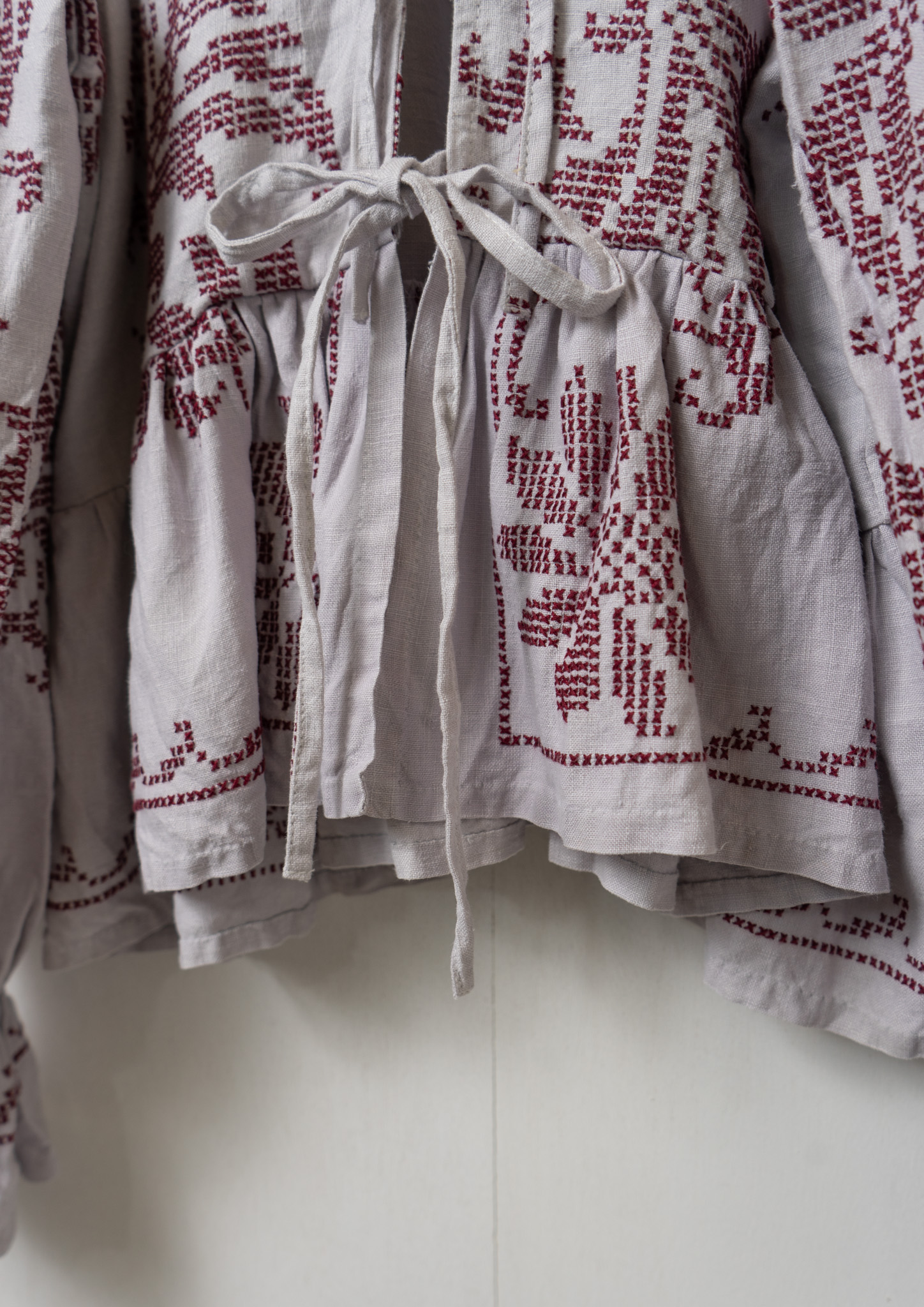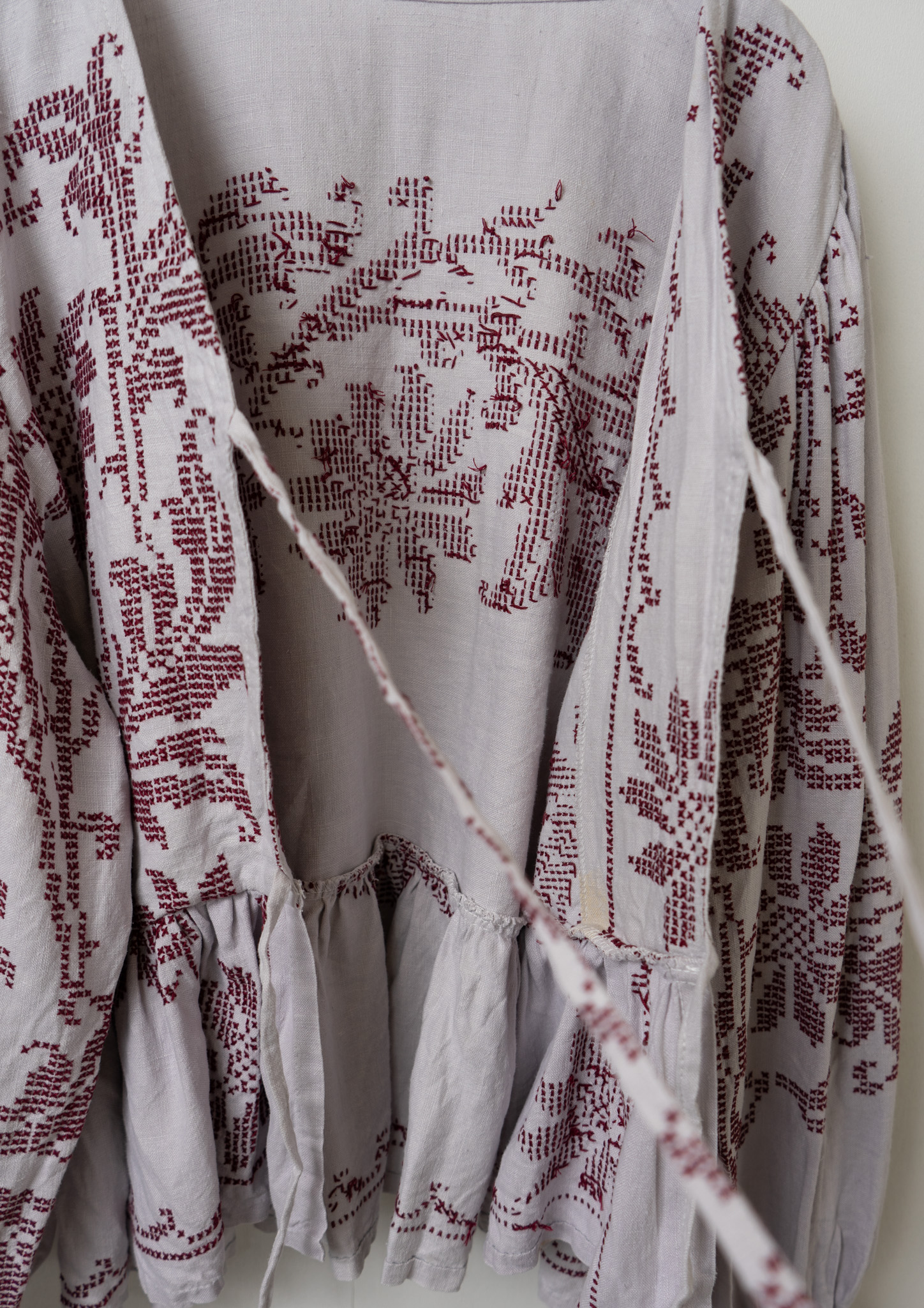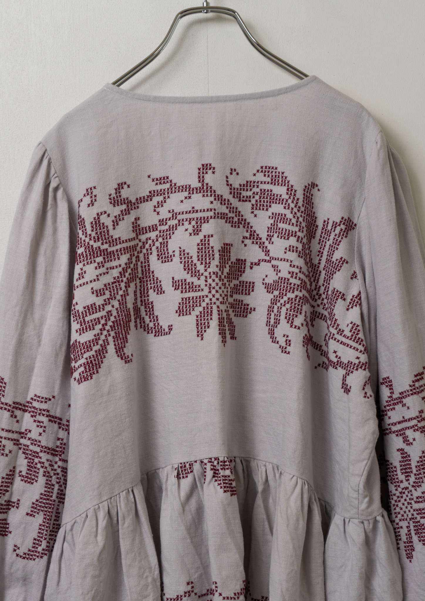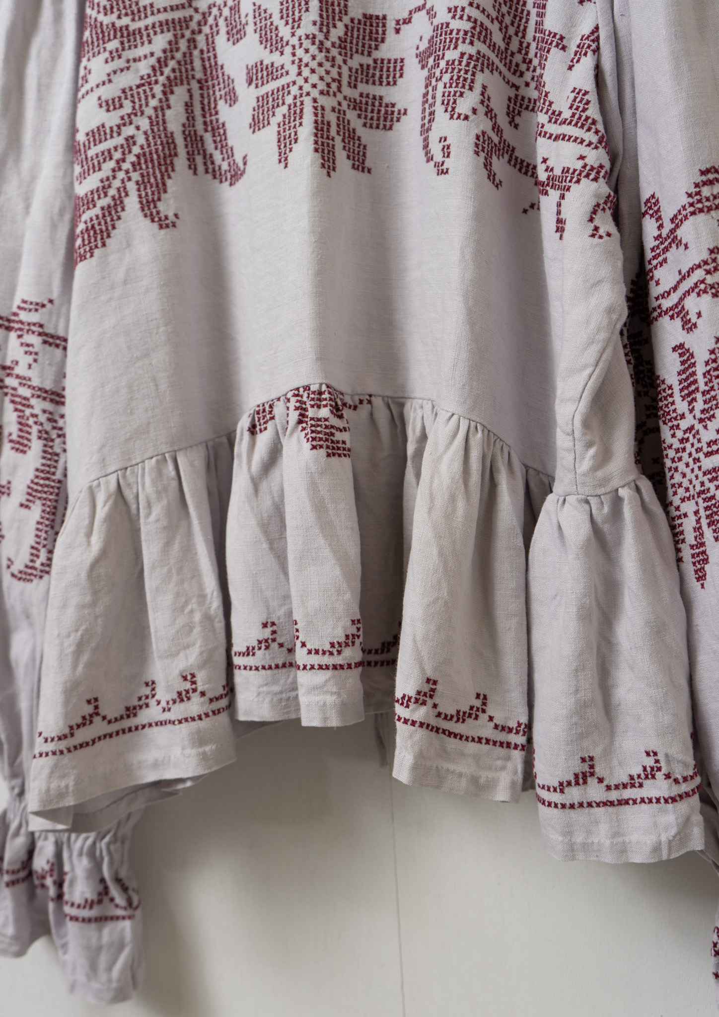 Upcycle Botanical Embroidery Lavender Gray Blouse