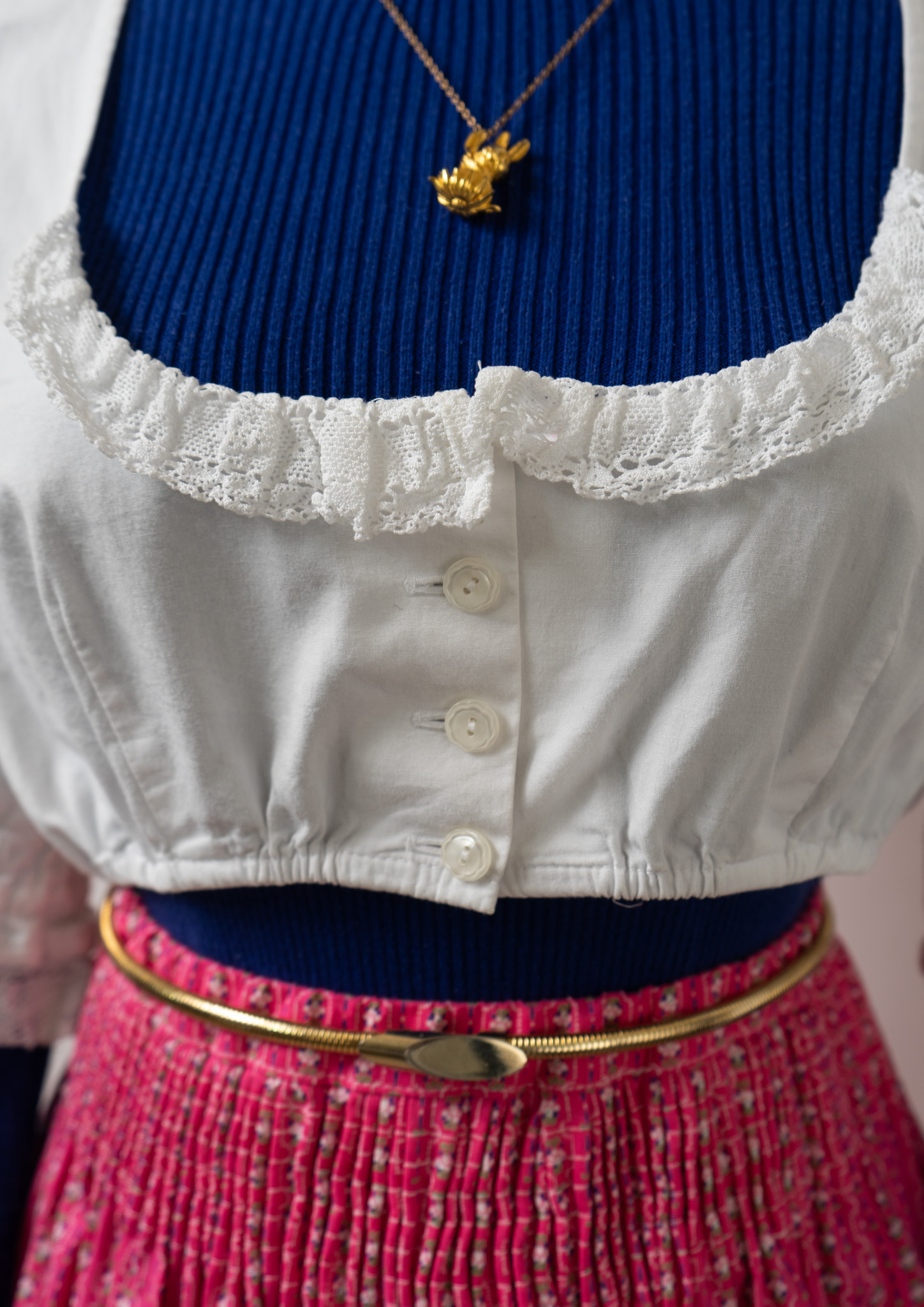 90's Lace Design White Cropped Tyrol Tops