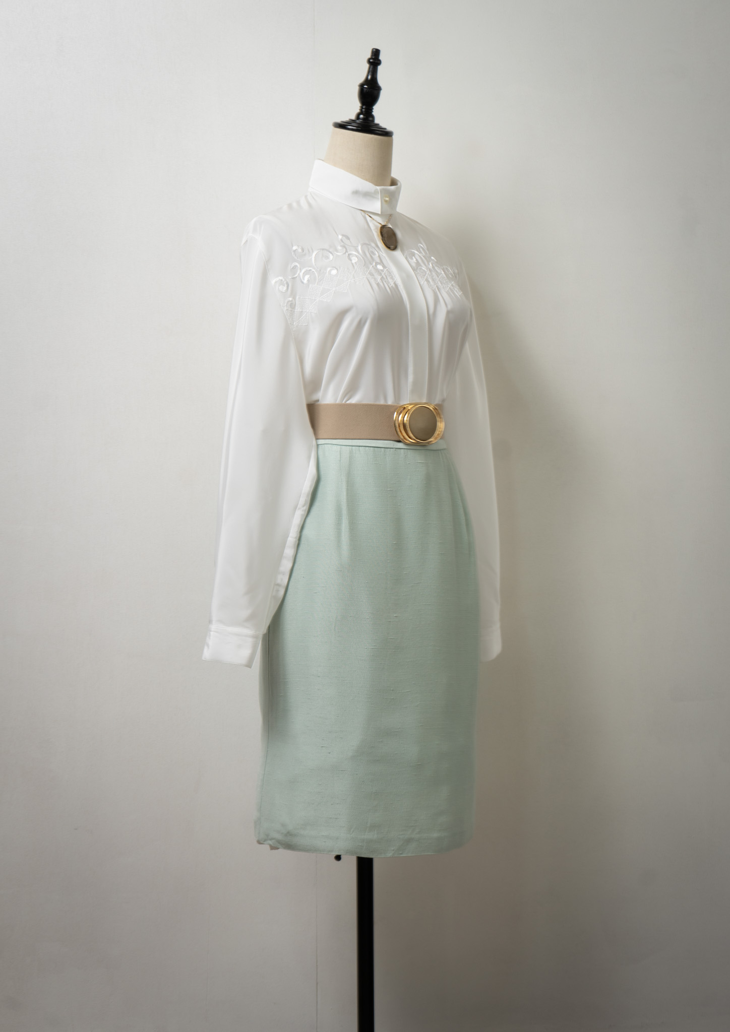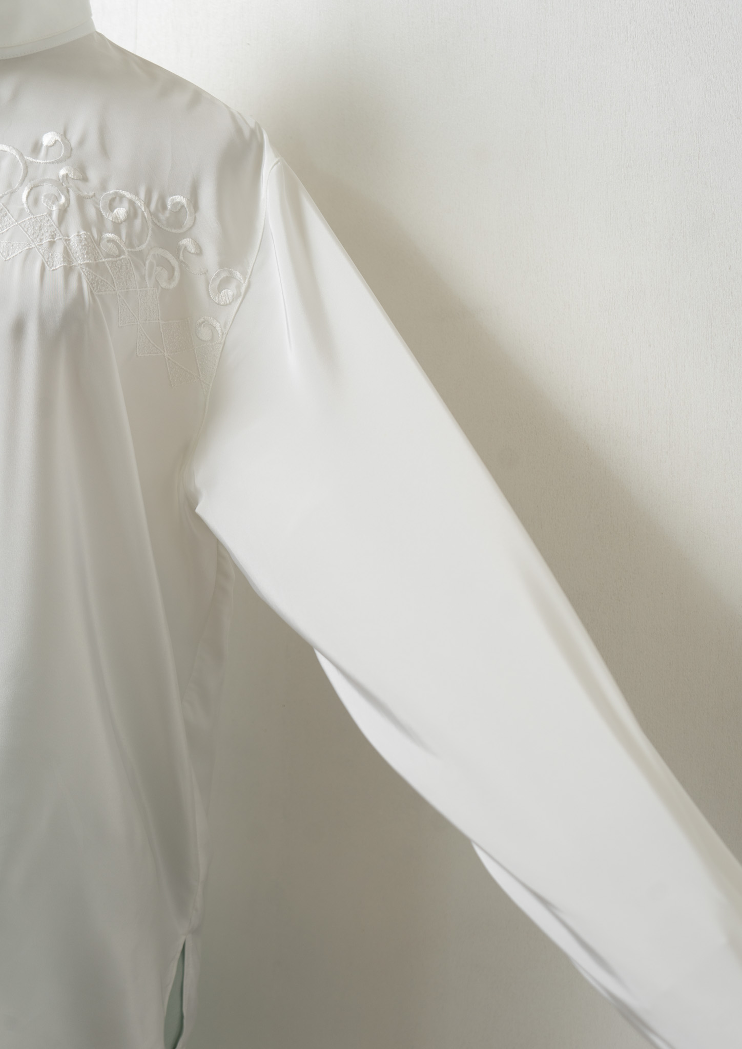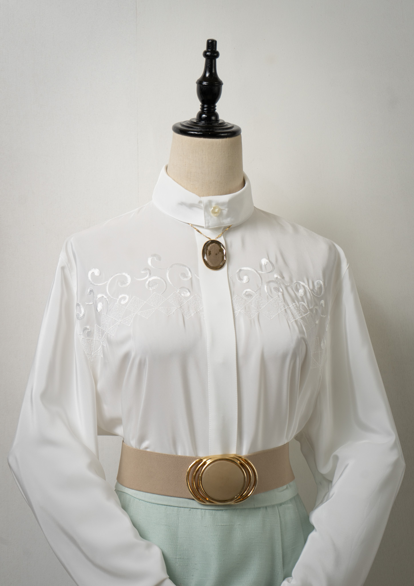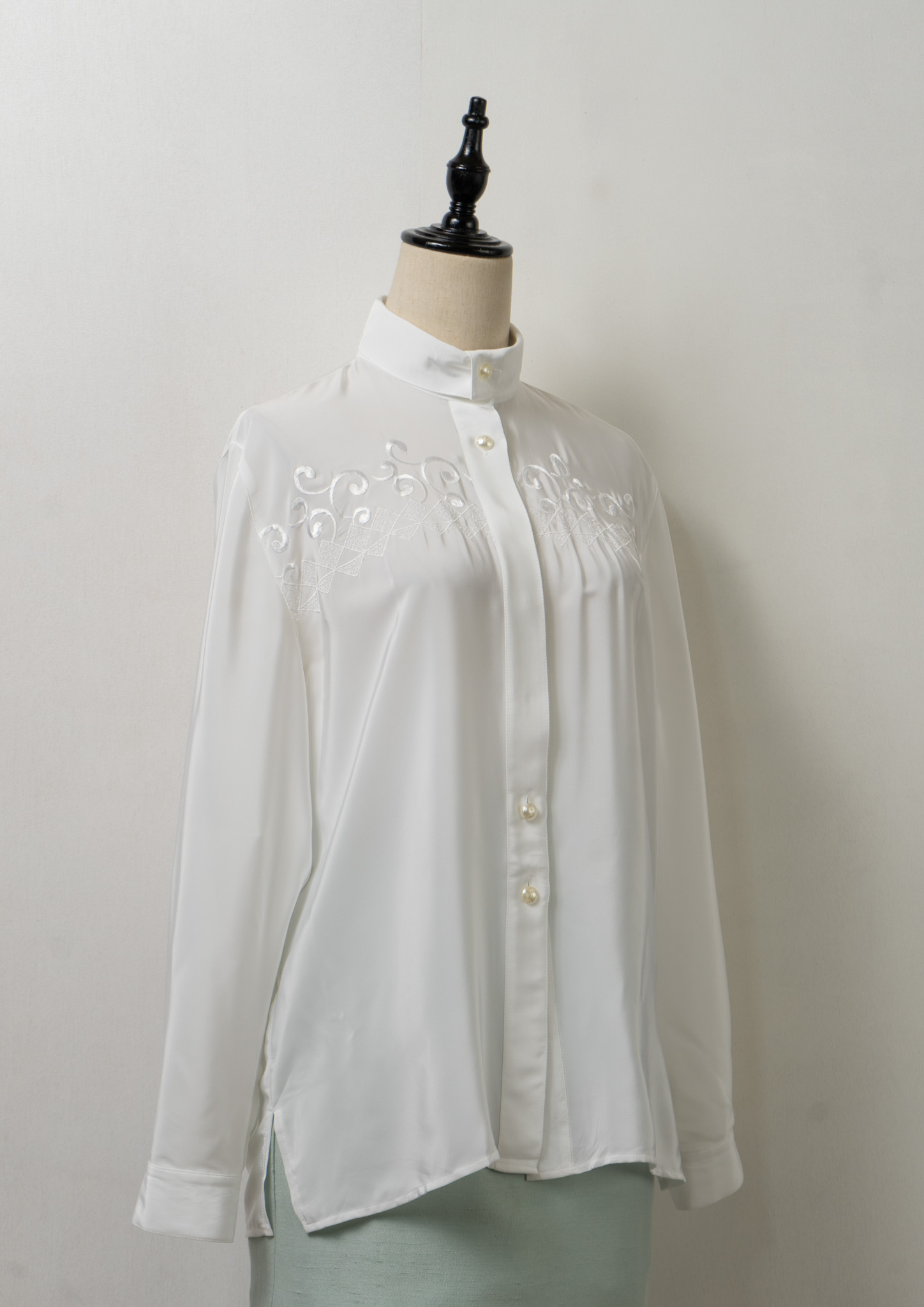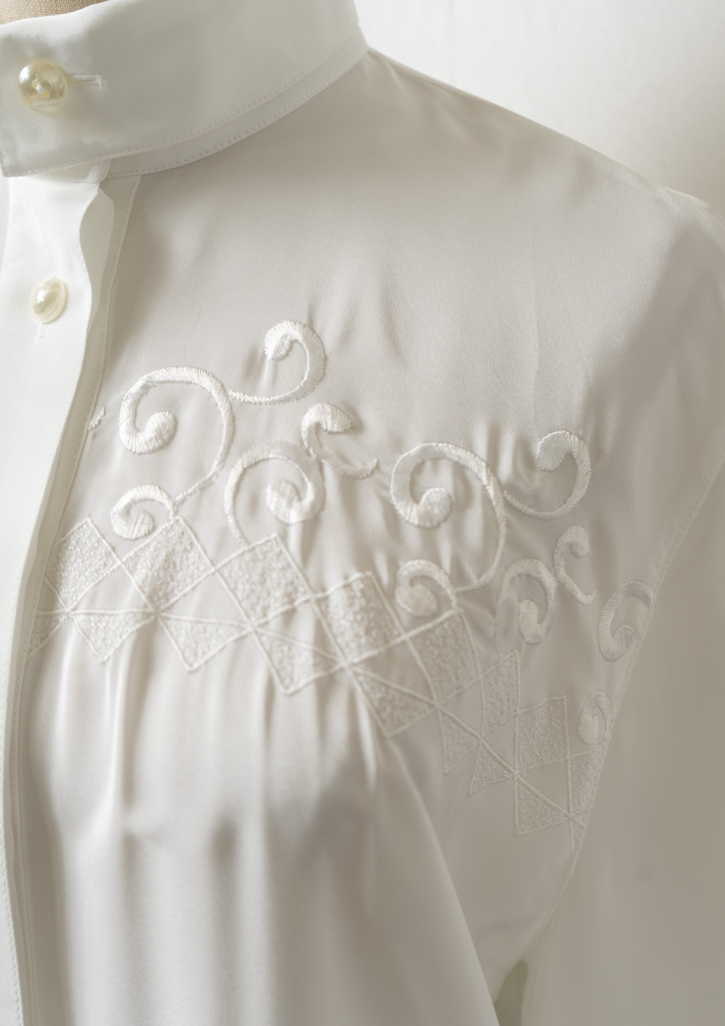 80's Diamond × Vine Motif Embroidery White Blouse