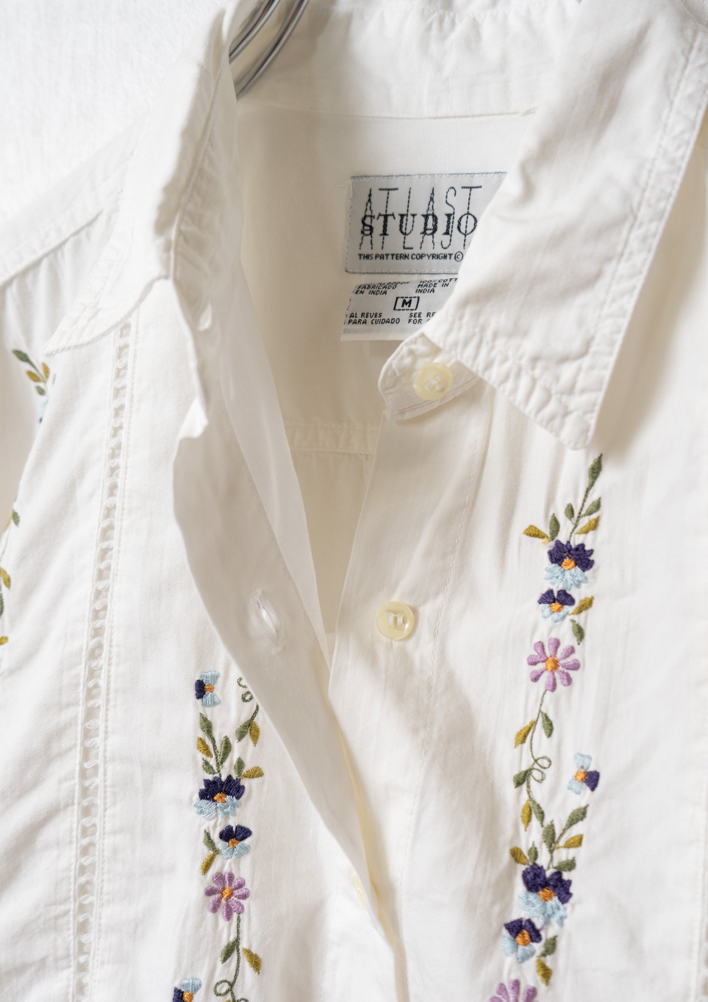 Upcycle Flower × Mountain Embroidery White Blouse