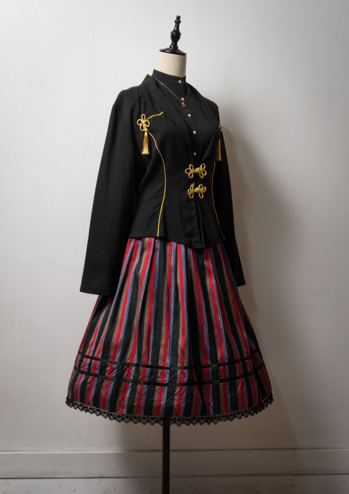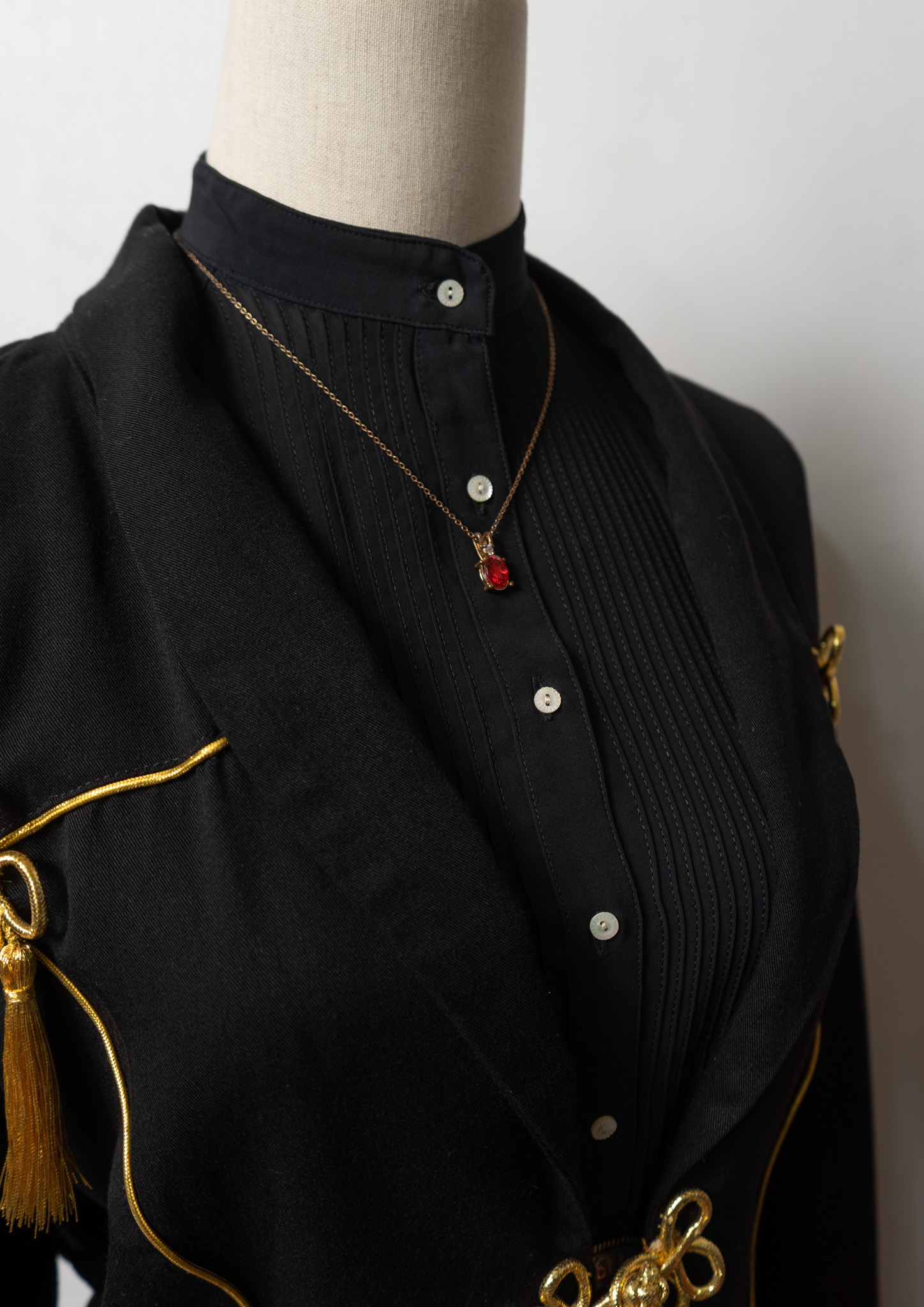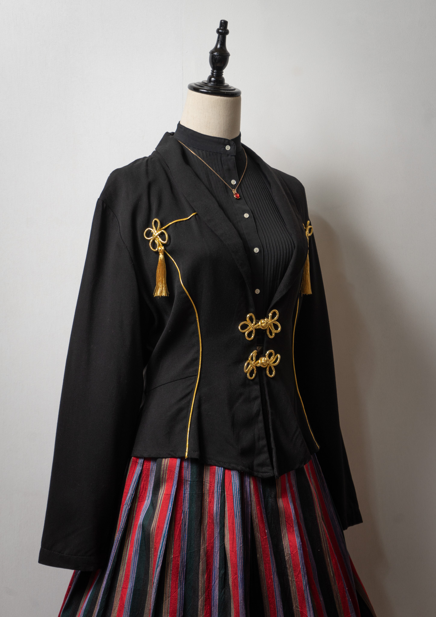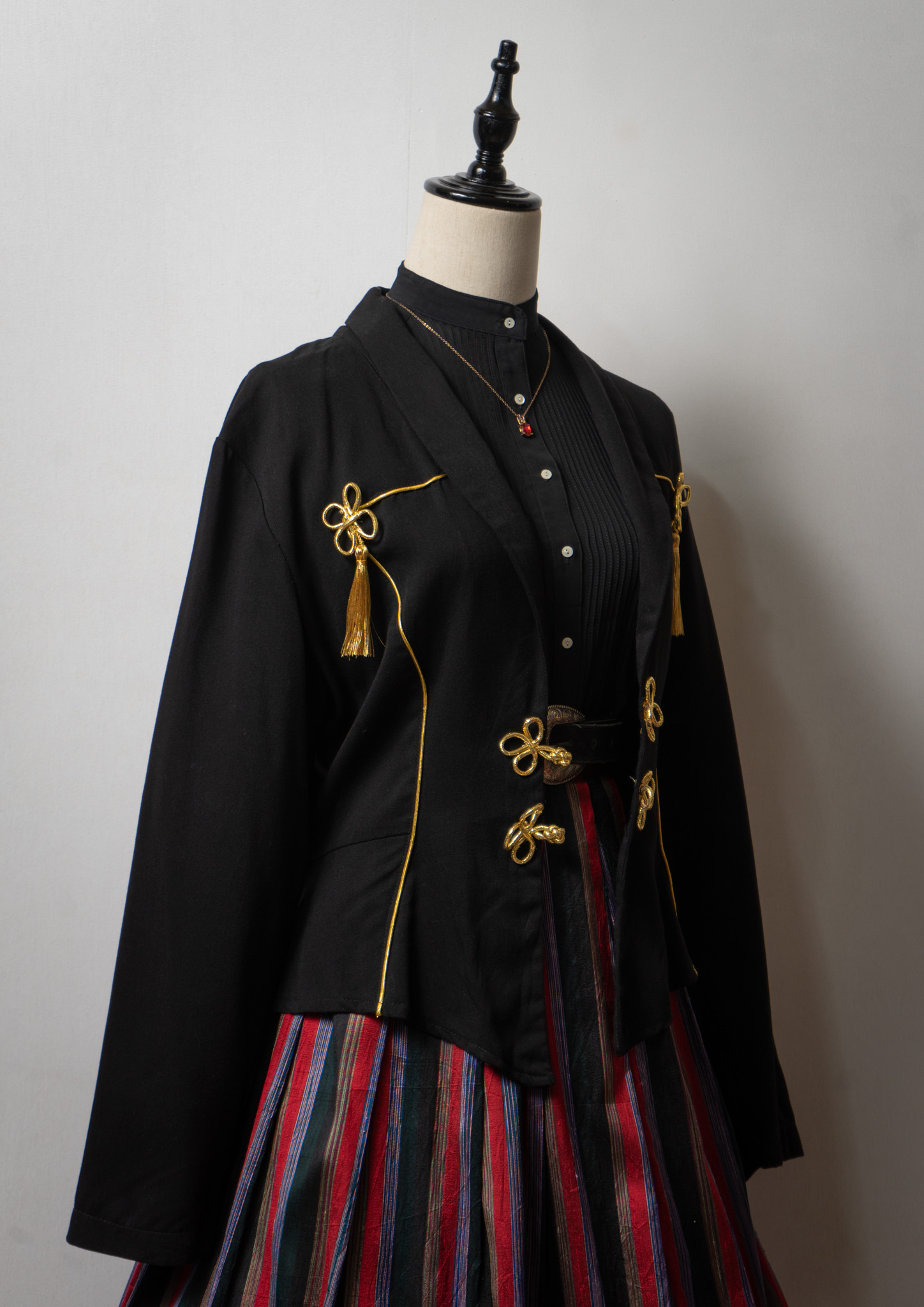 80's Rooster Embroidery Multi Button Design Black Tyrol Jacket