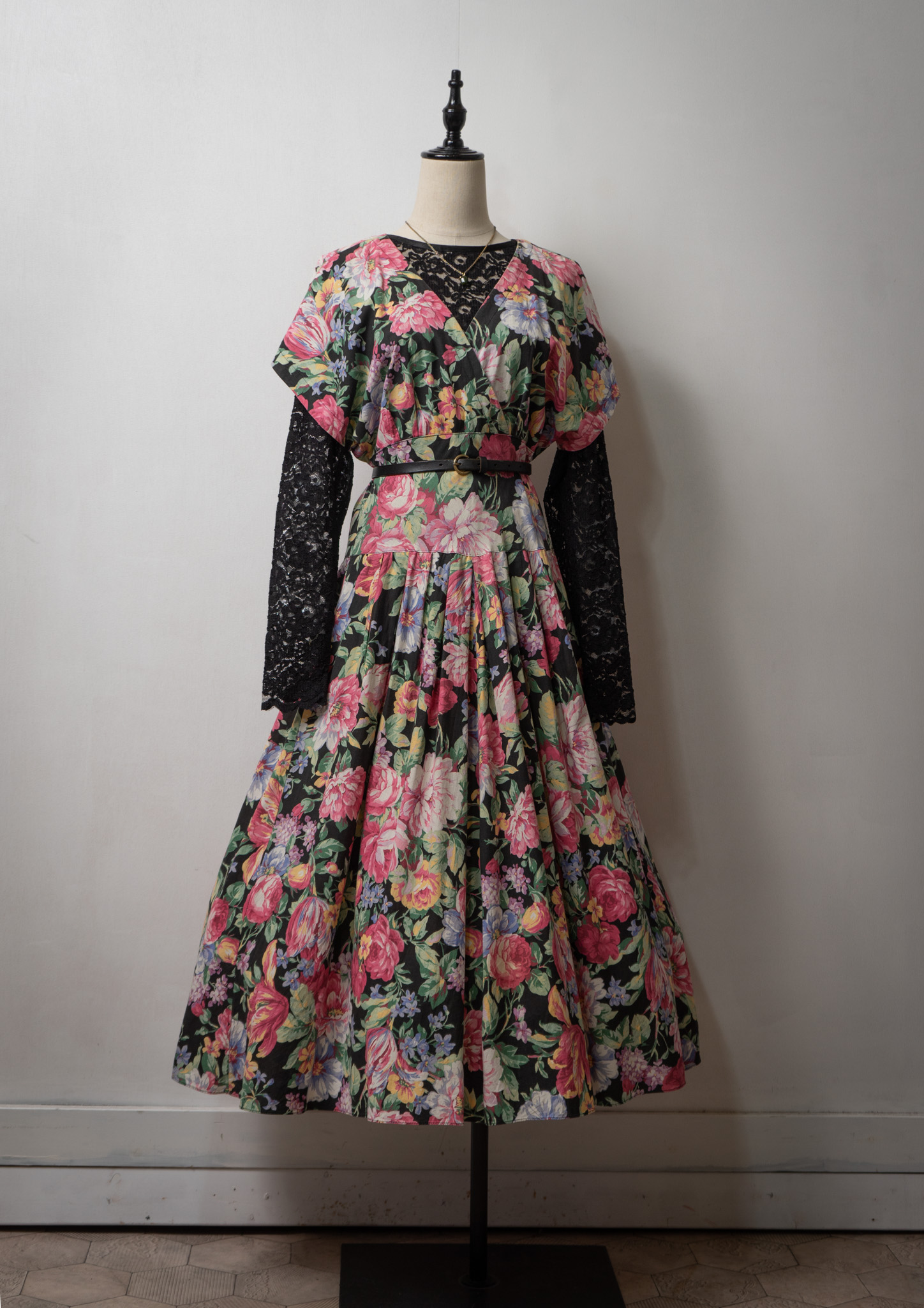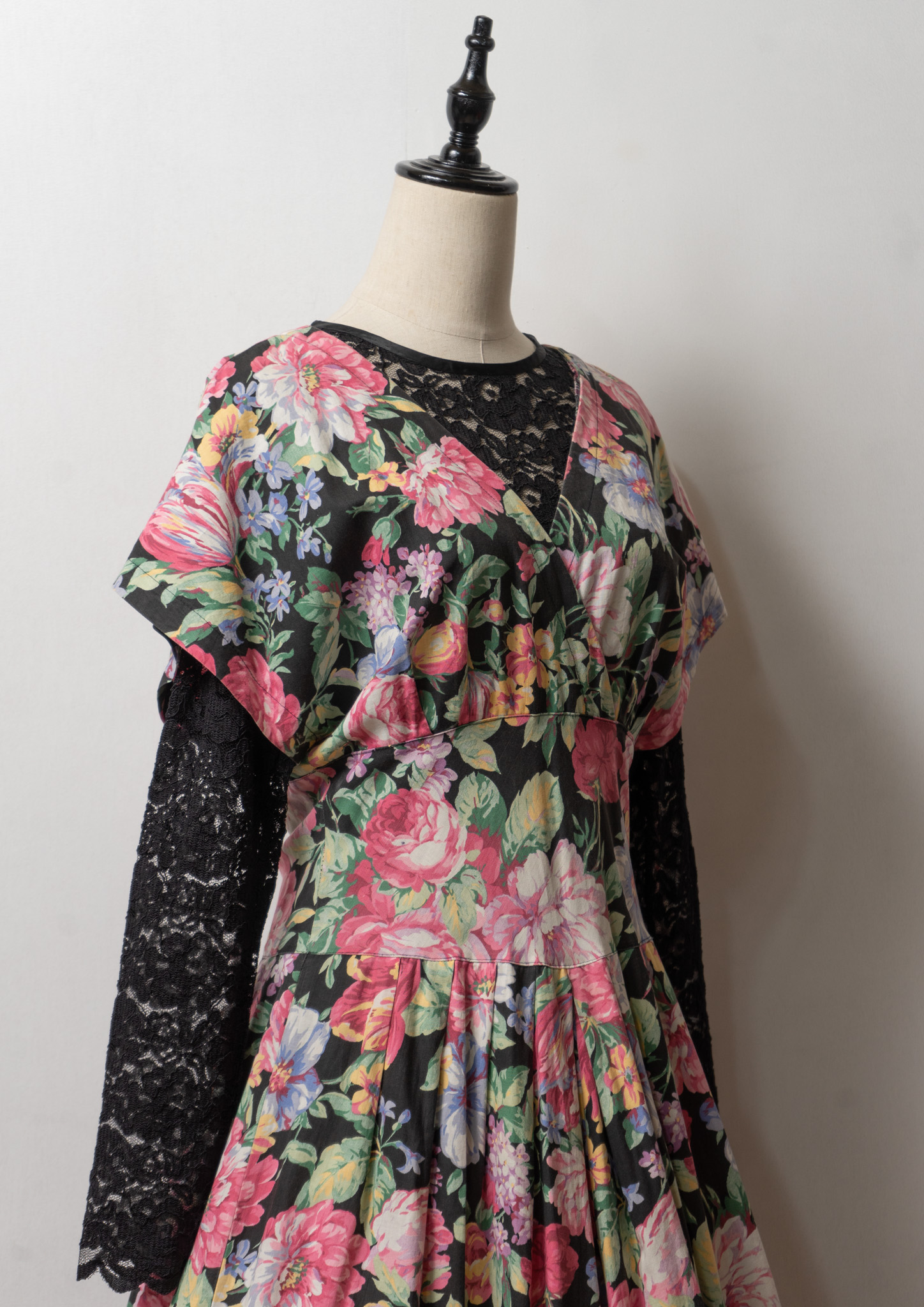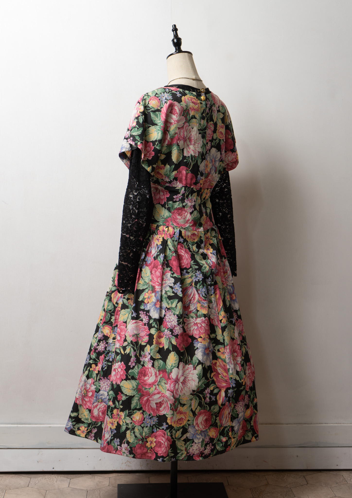 80~90's USA Botanical Pattern Big Lace Collar Dress