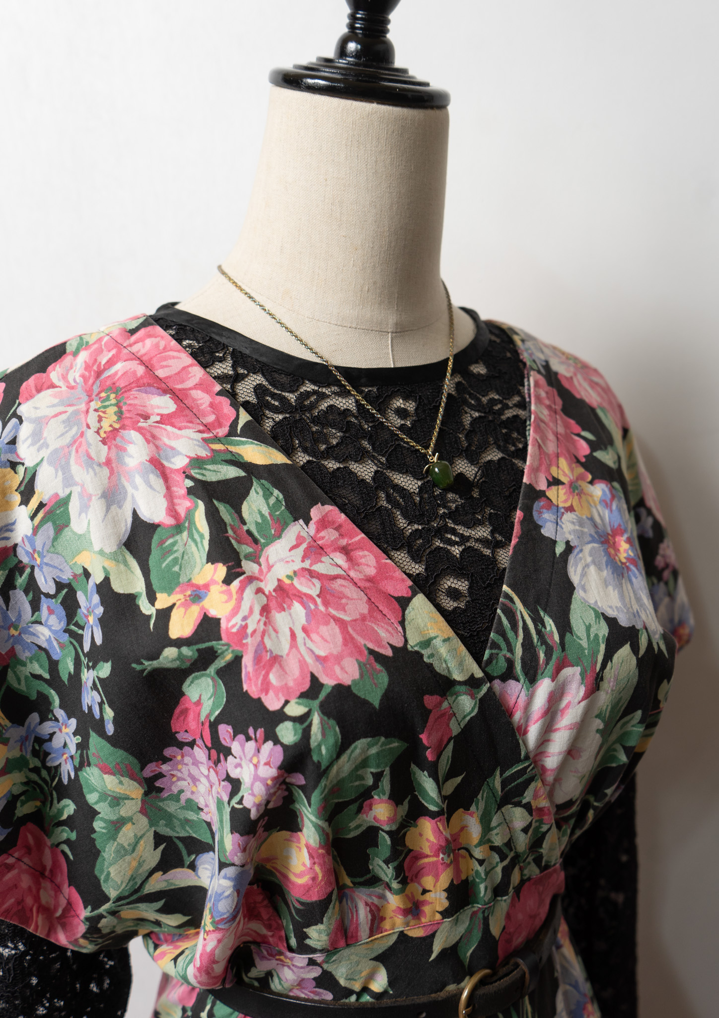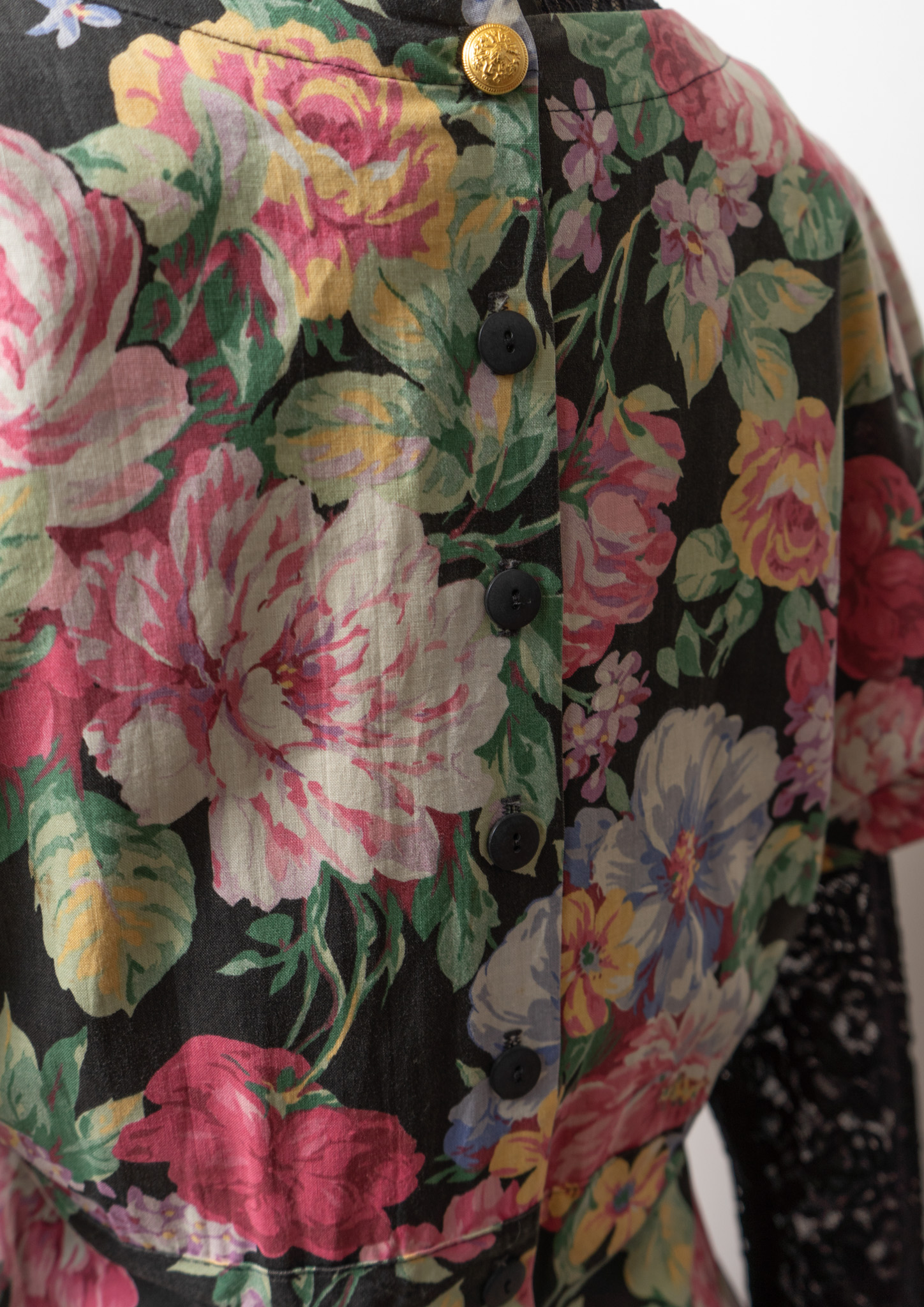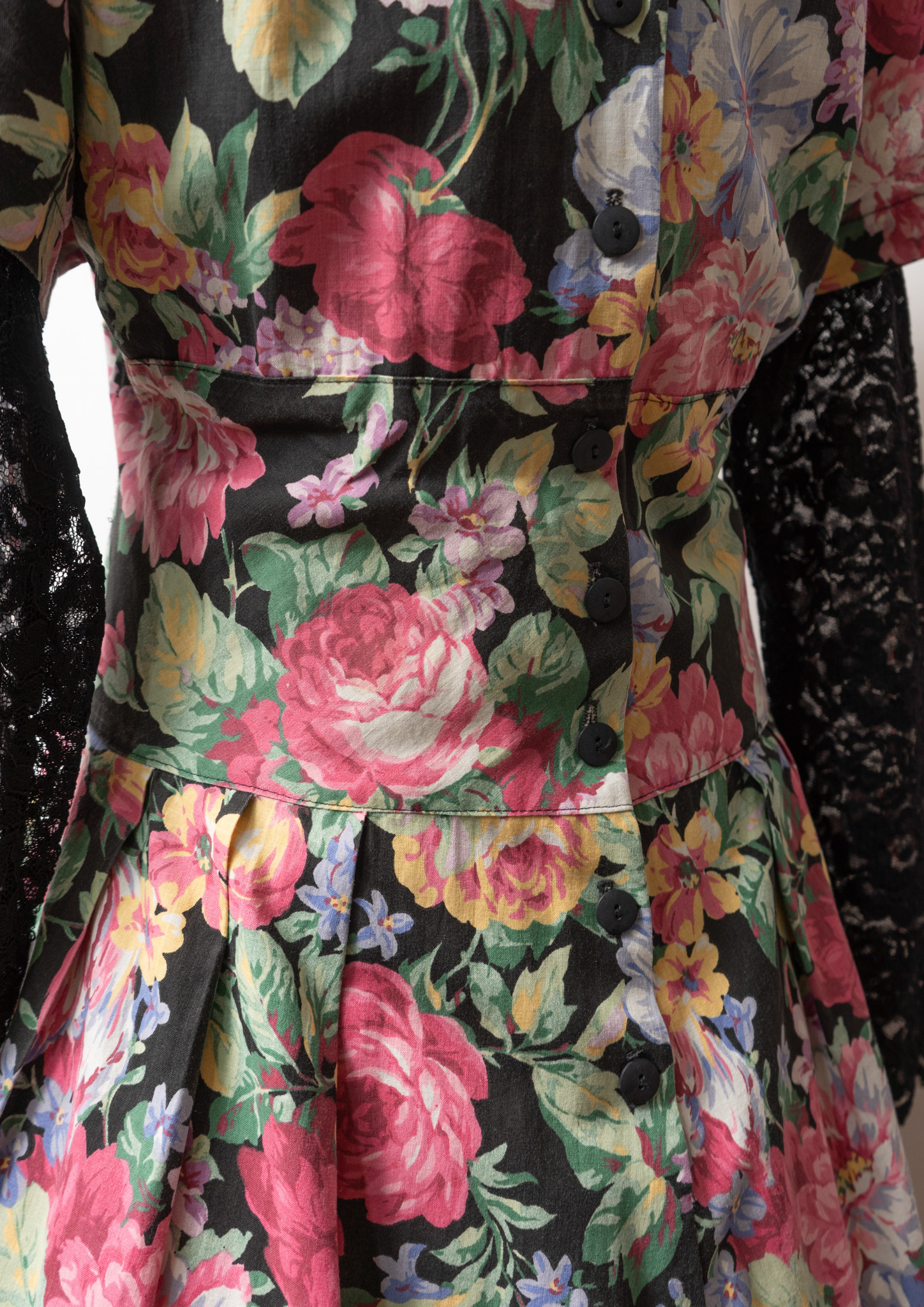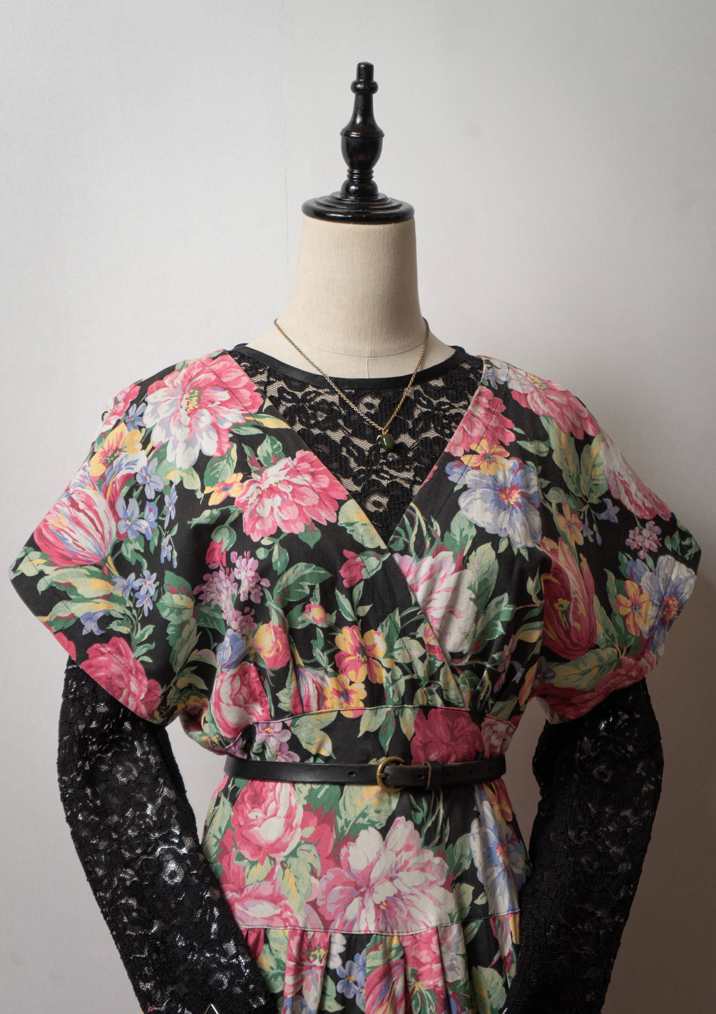 80~90's USA Botanical Pattern Big Lace Collar Dress