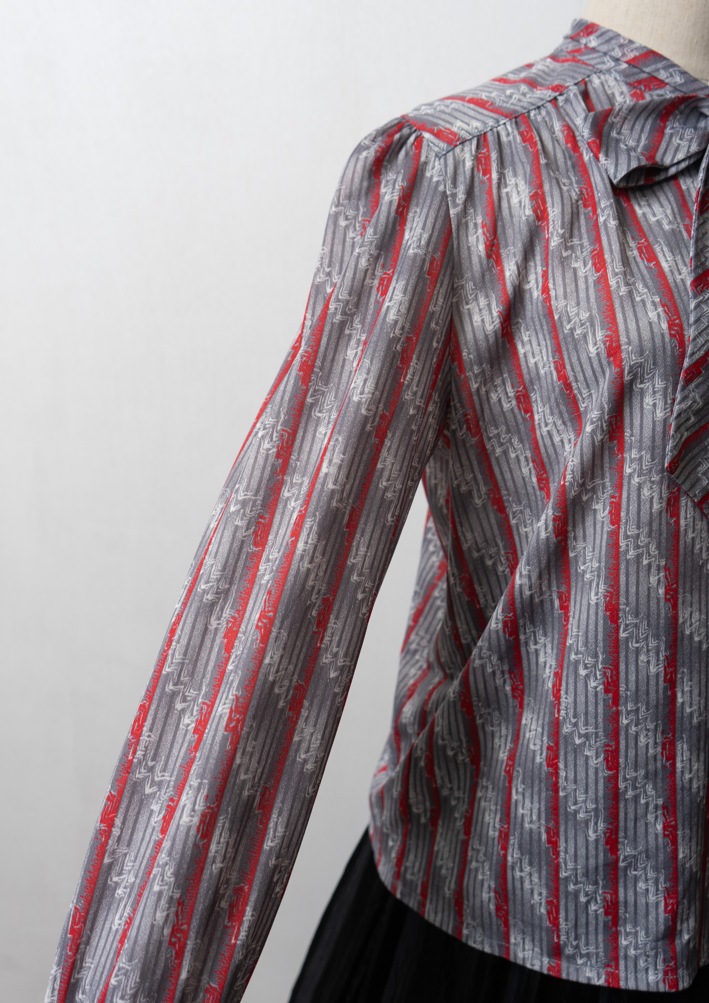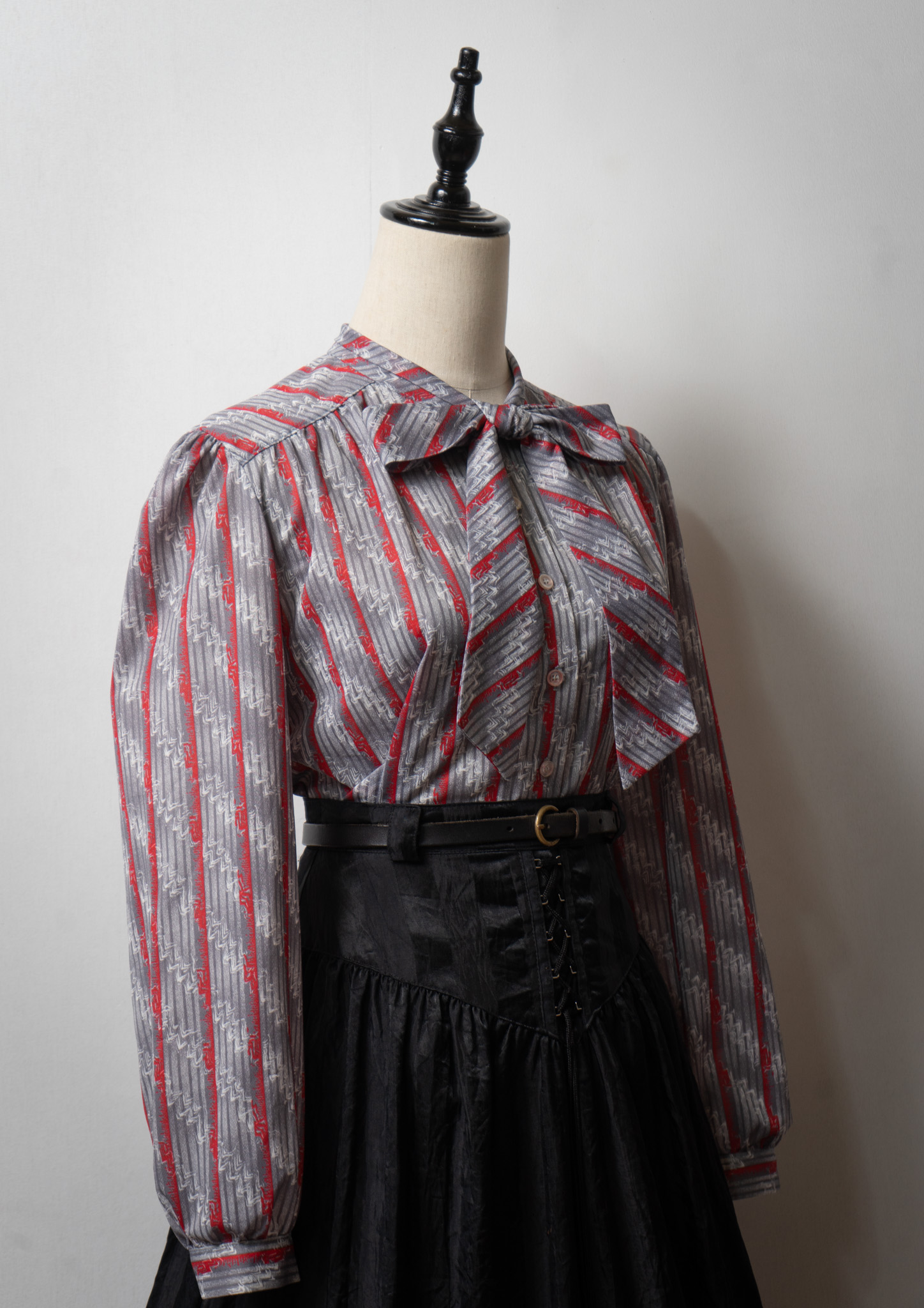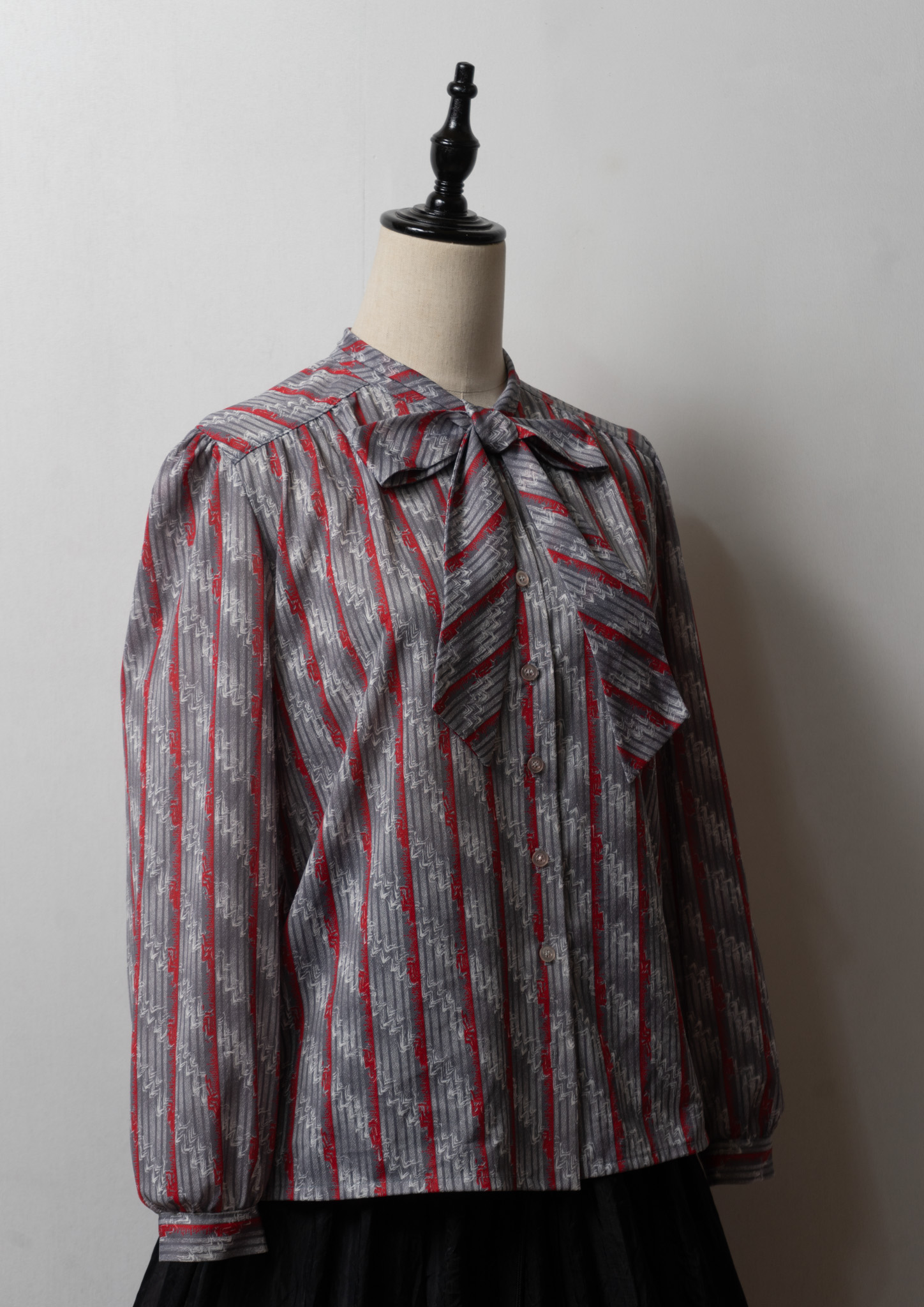 80~90's Canada Unique Stripe Pattern Bow-tie Blouse