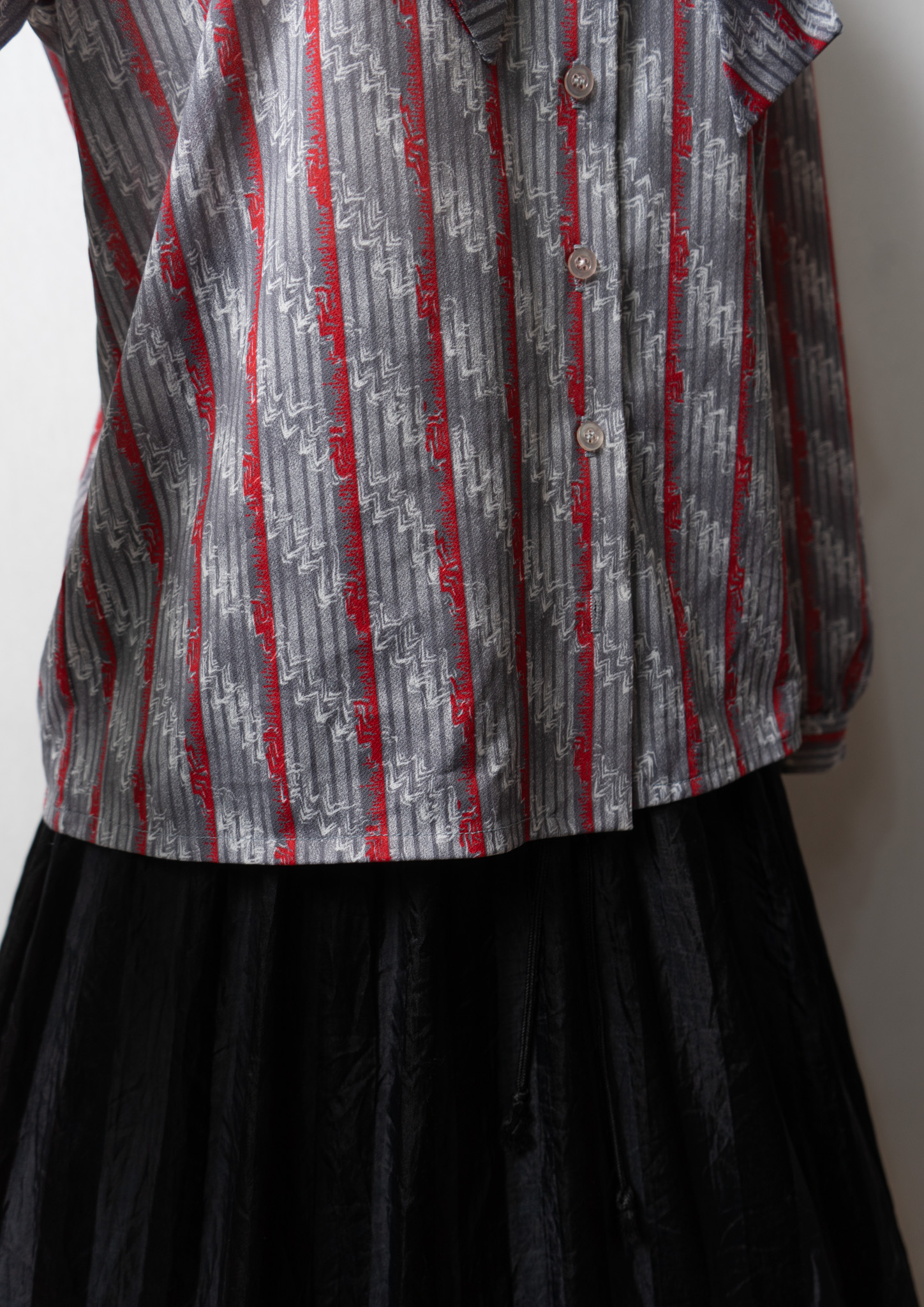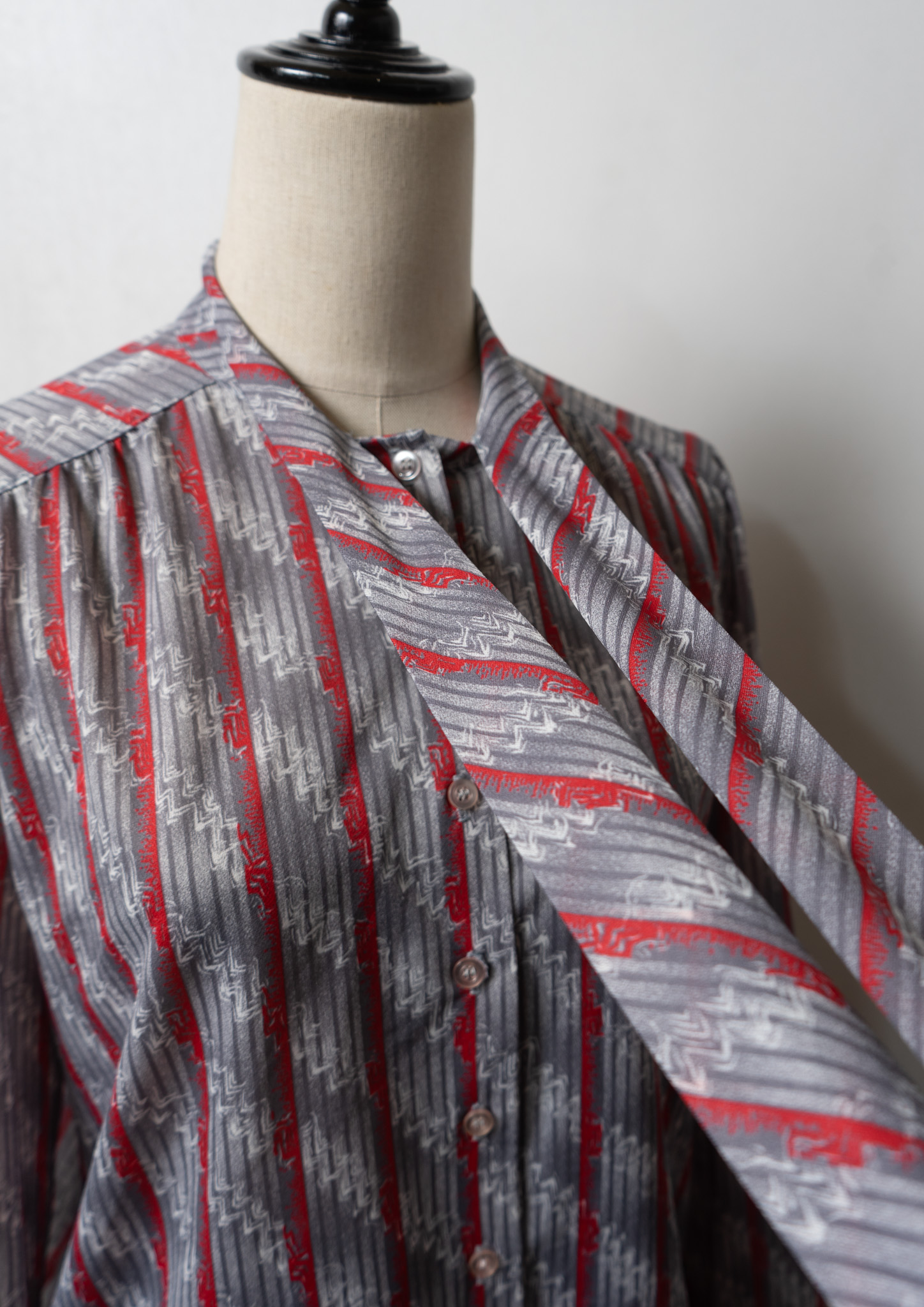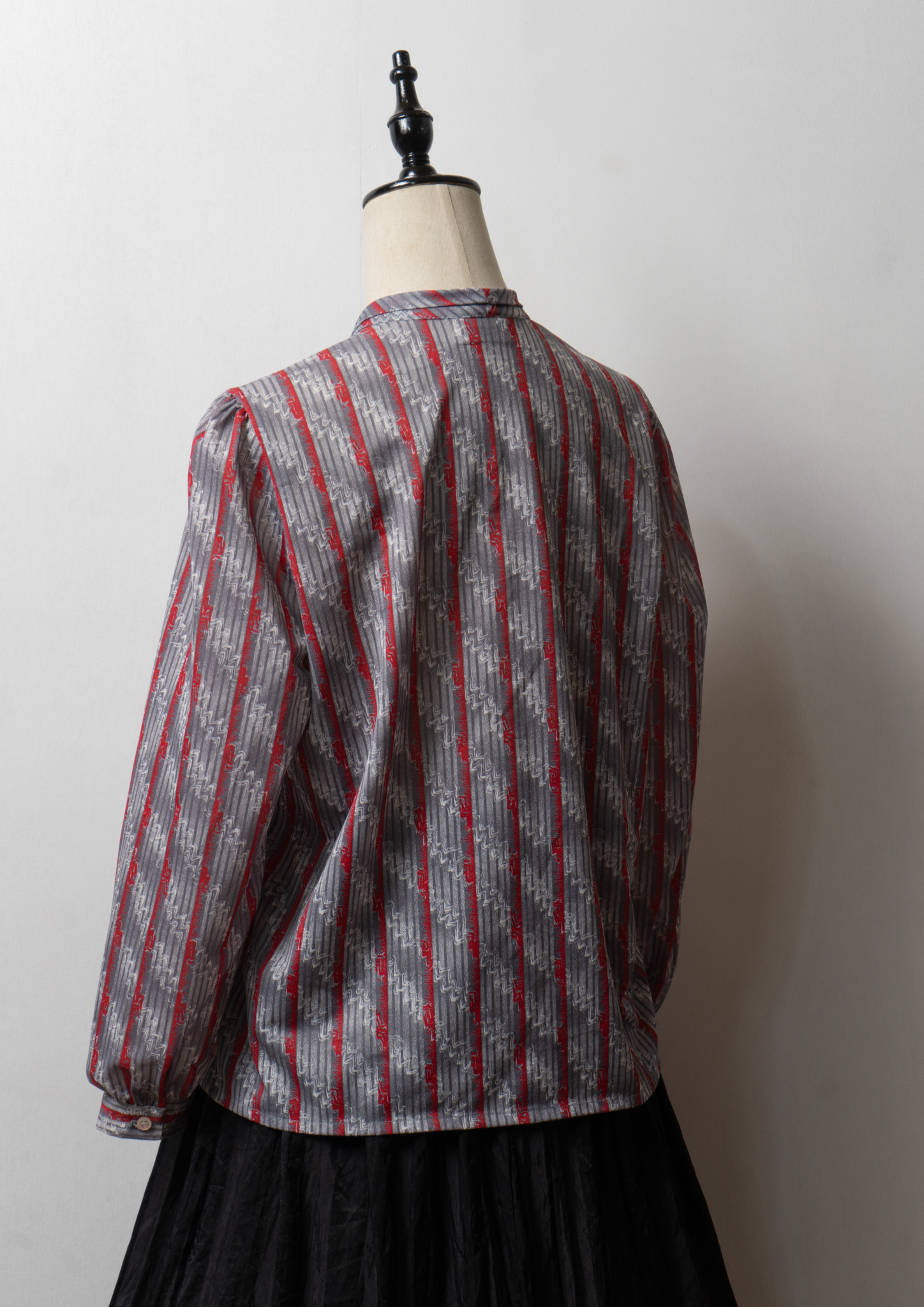 80~90's Canada Unique Stripe Pattern Bow-tie Blouse