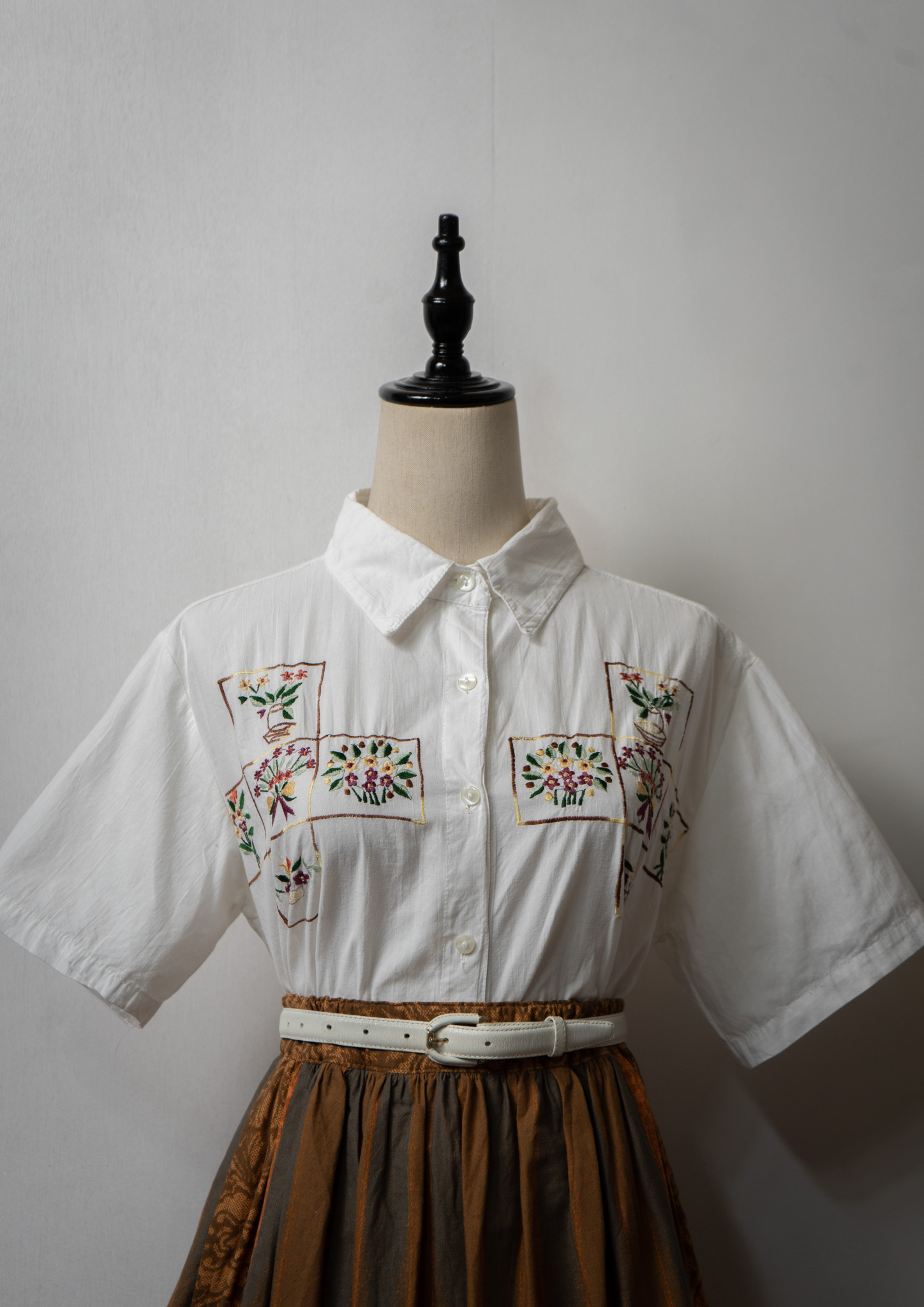 Upcycle Flower × Mountain Embroidery White Blouse