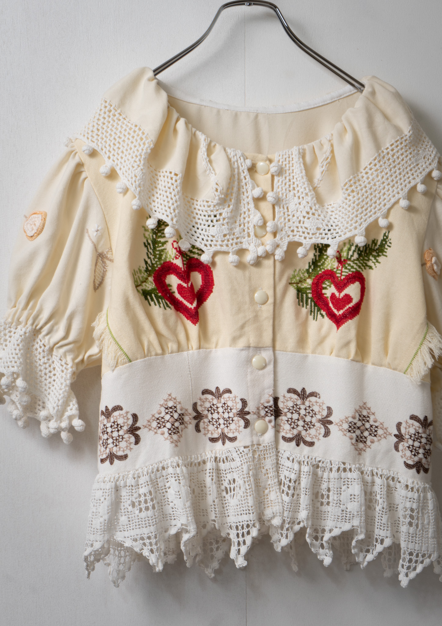 Upcycle Heart Embroidery Pom-pom Design Blouse