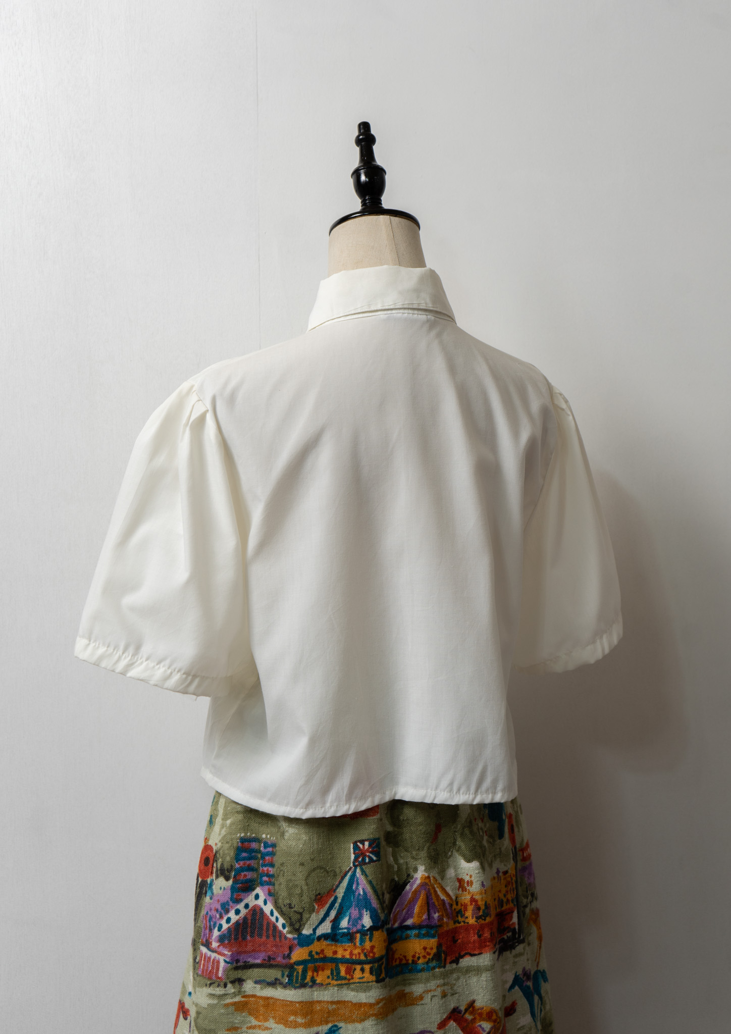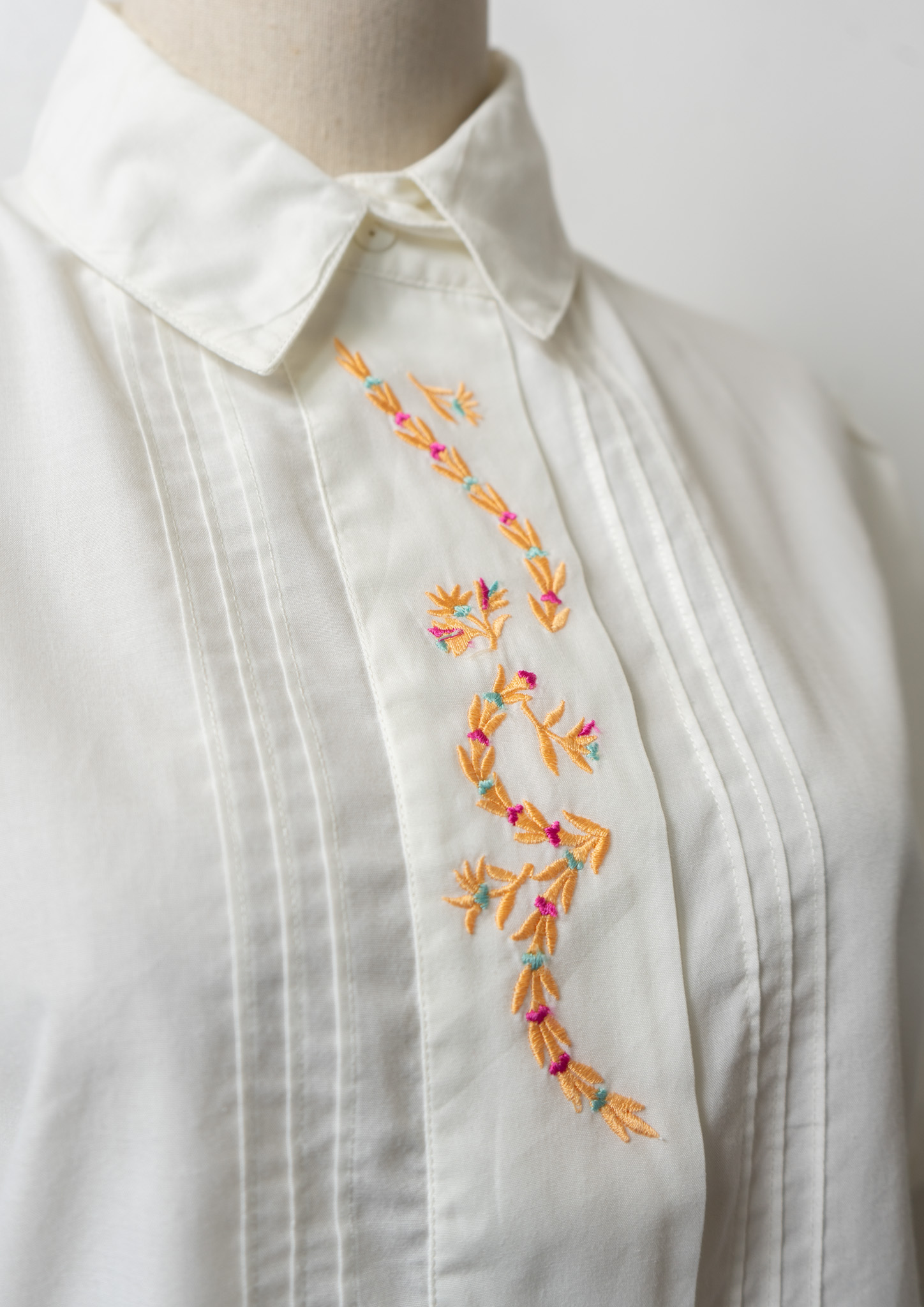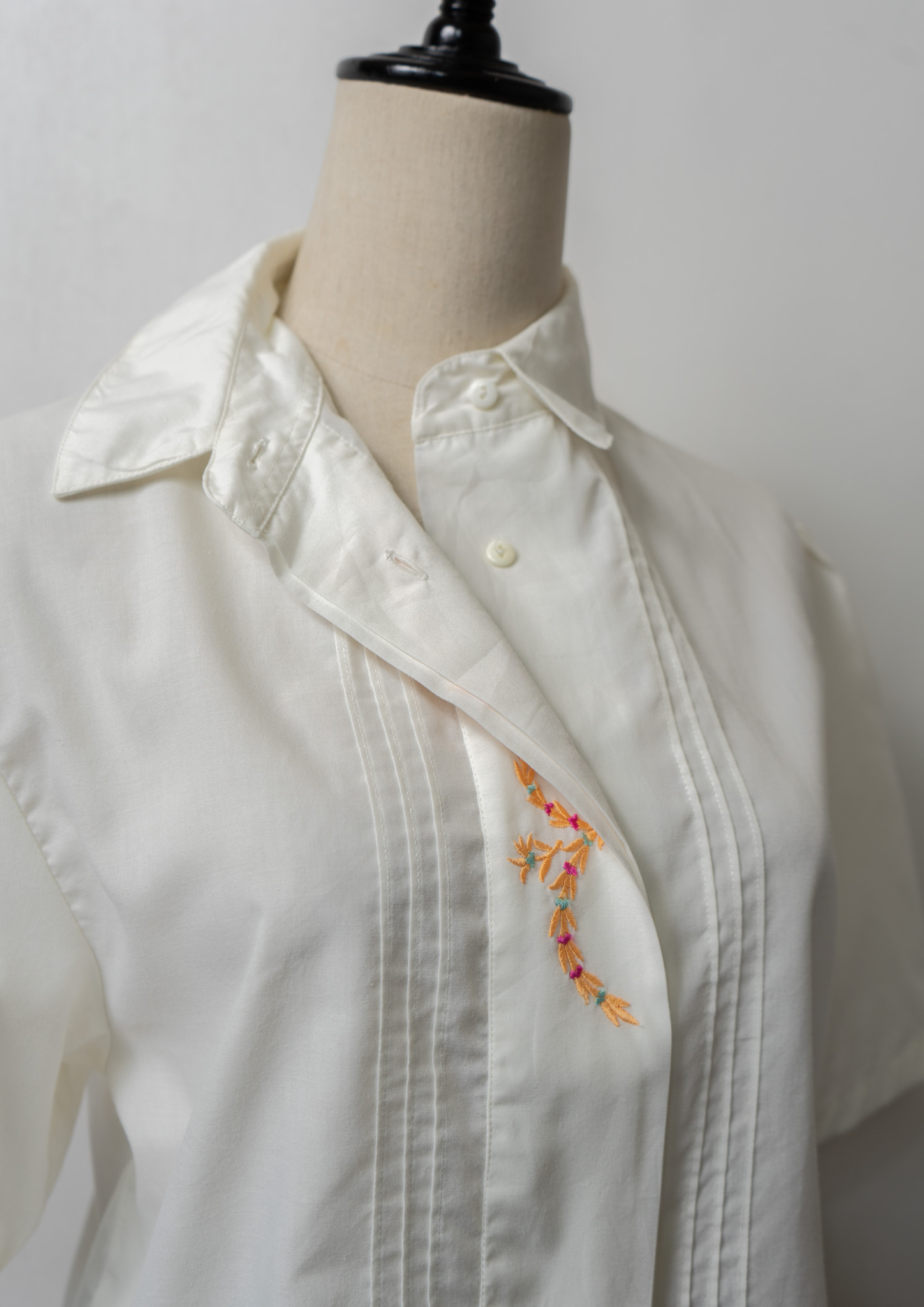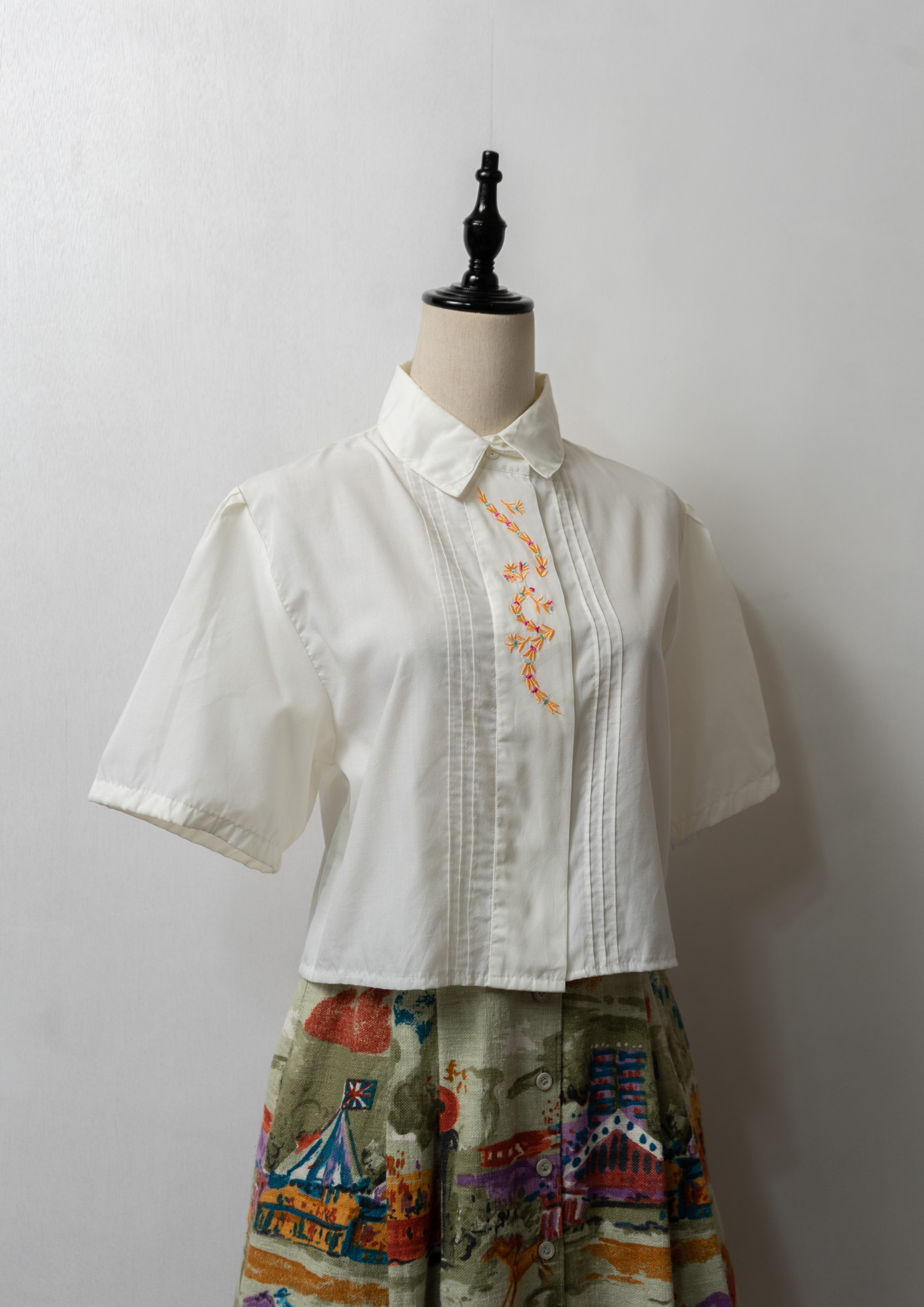 Upcycle Flower Embroidery × Pin Tuck Design Cropped Blouse