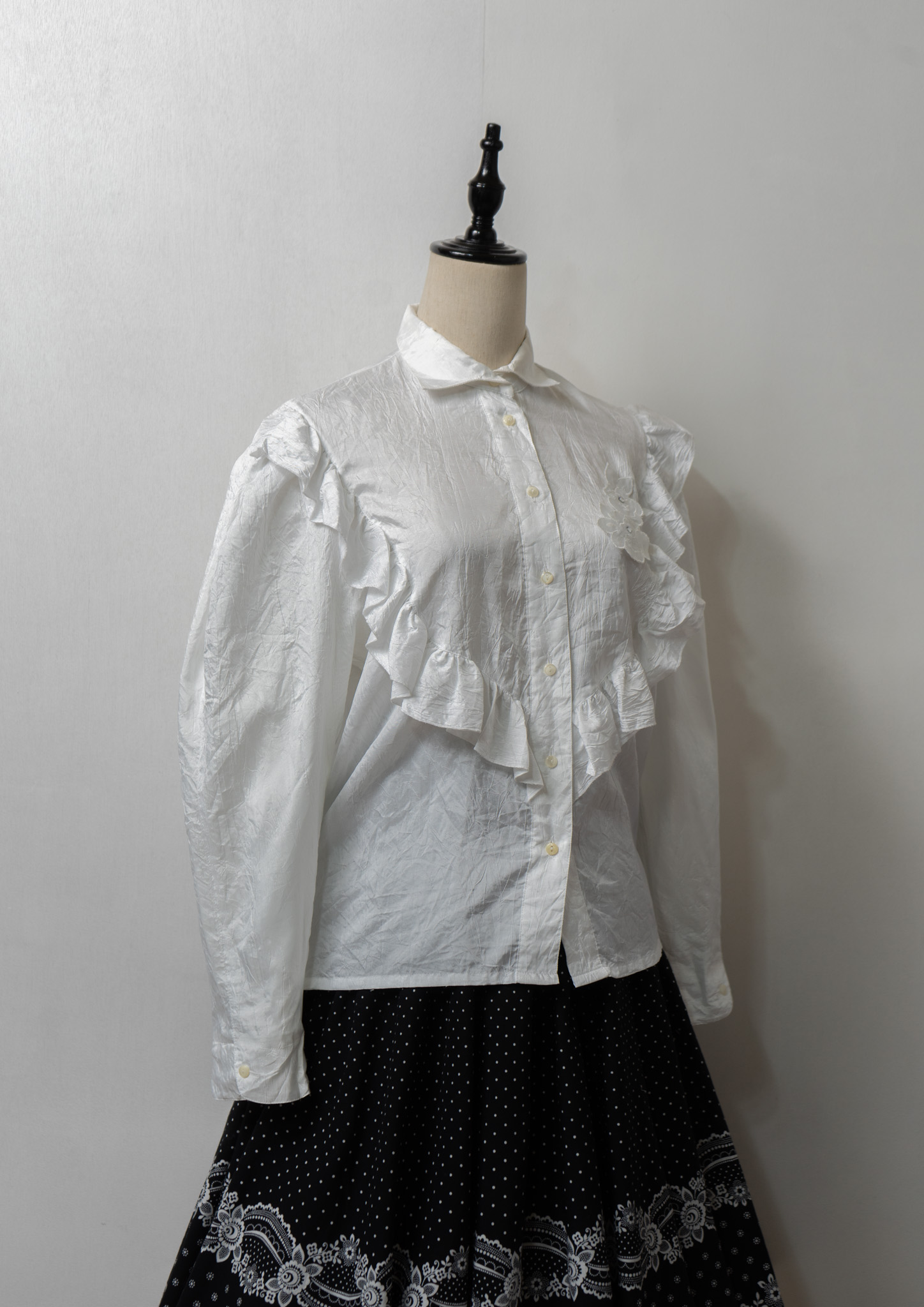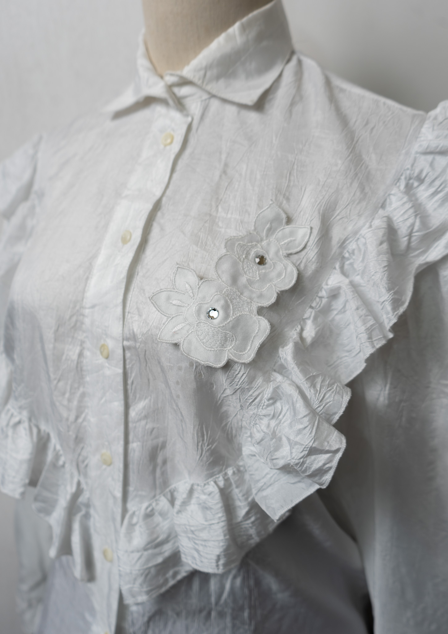 80~90's Yessica Frill × Flower Decoration Design White Blouse