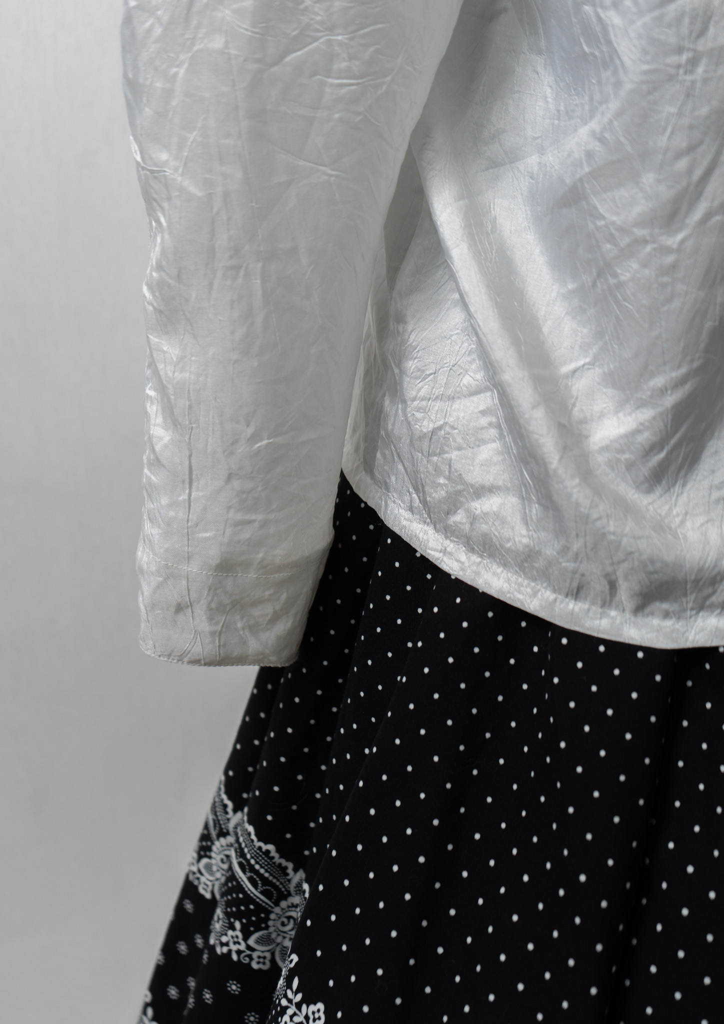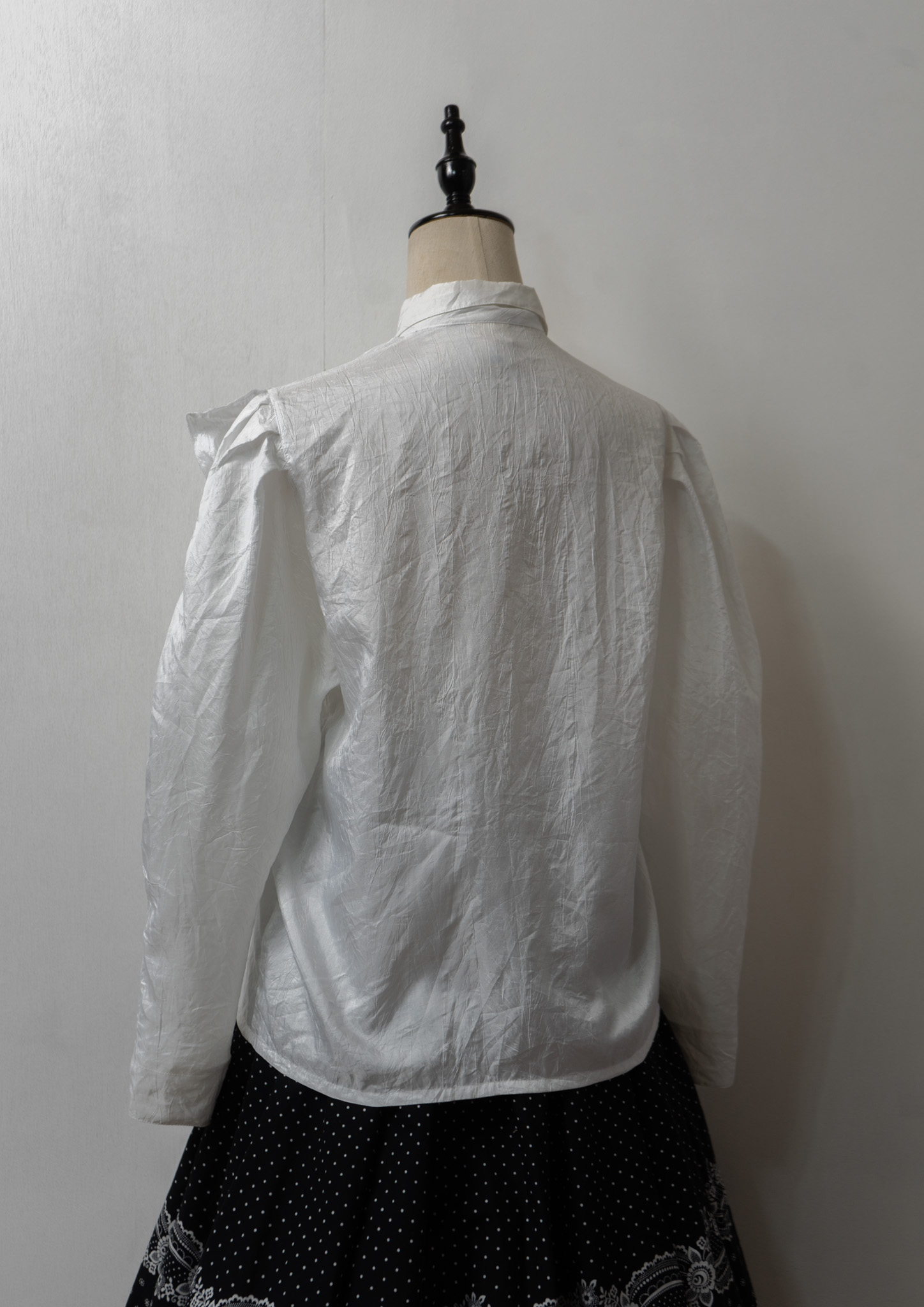 80's Stripe Pattern Tuck Design White Blouse