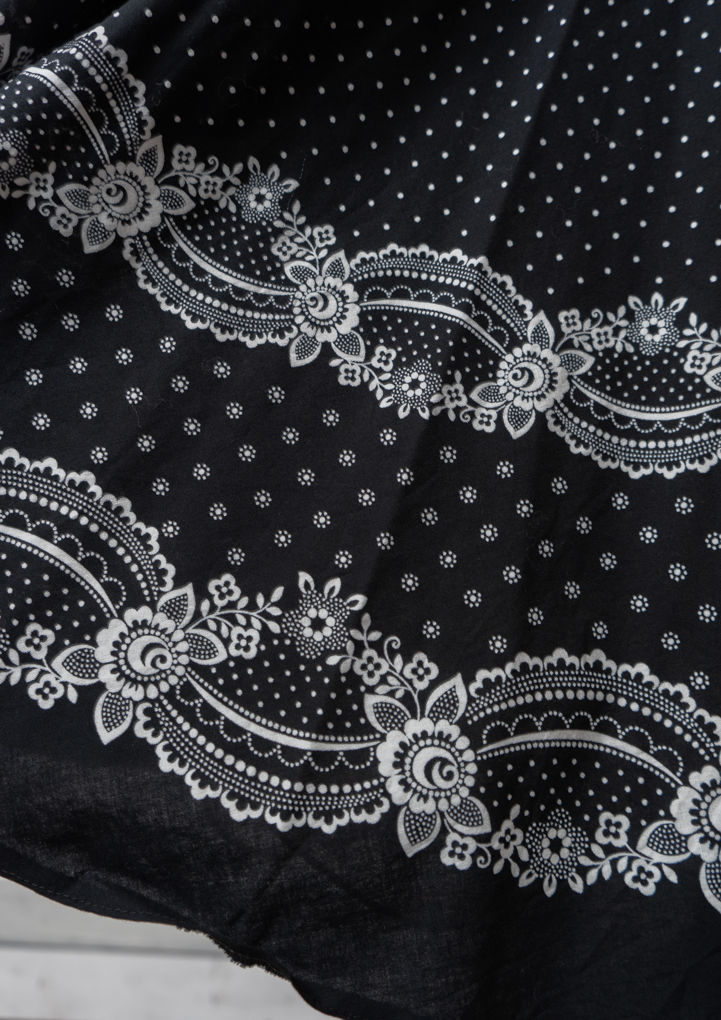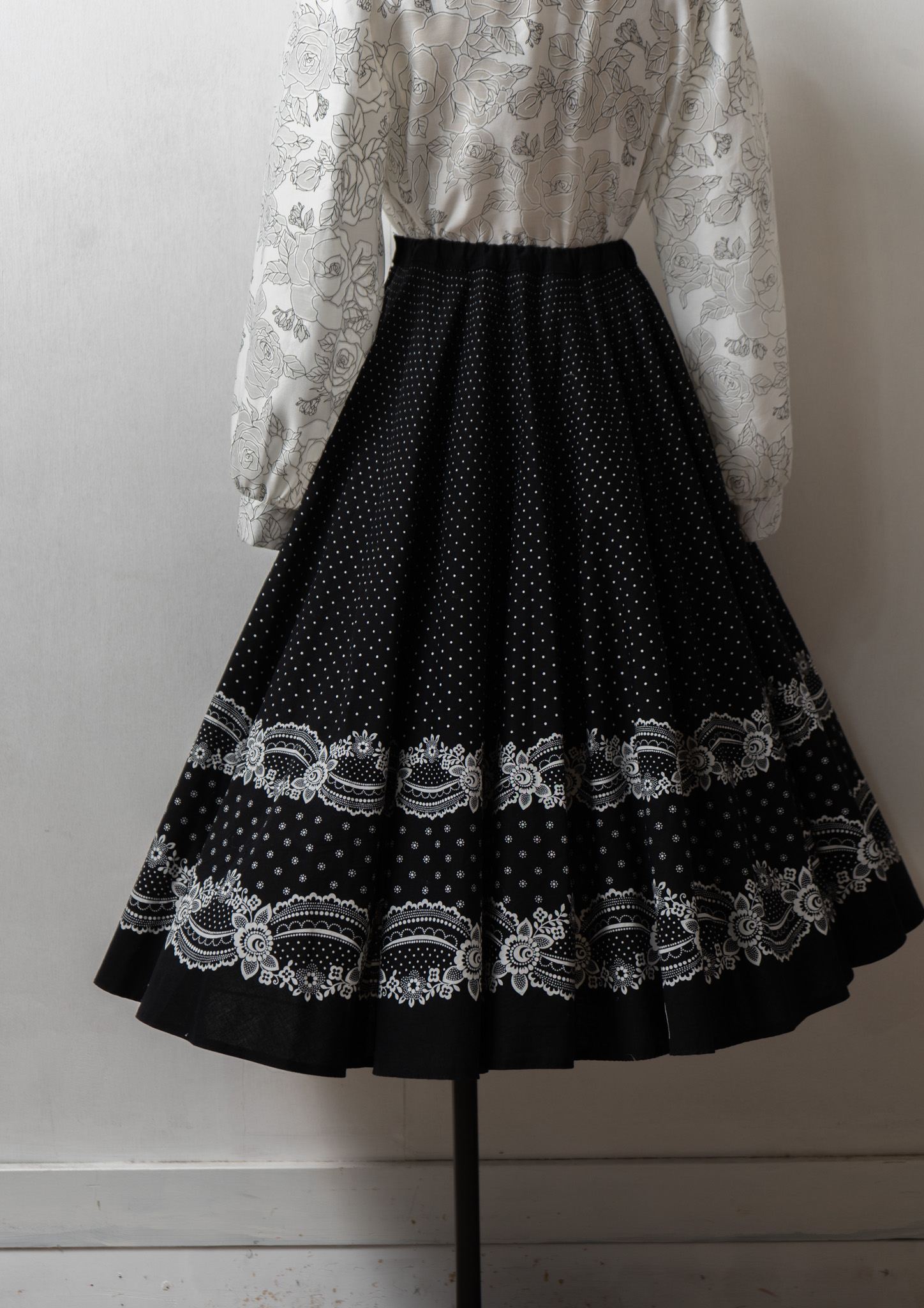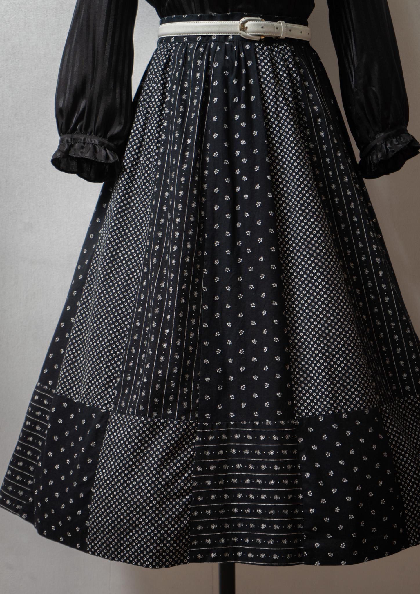80~90's Dot × Flower Pattern Black Tyrol Skirt