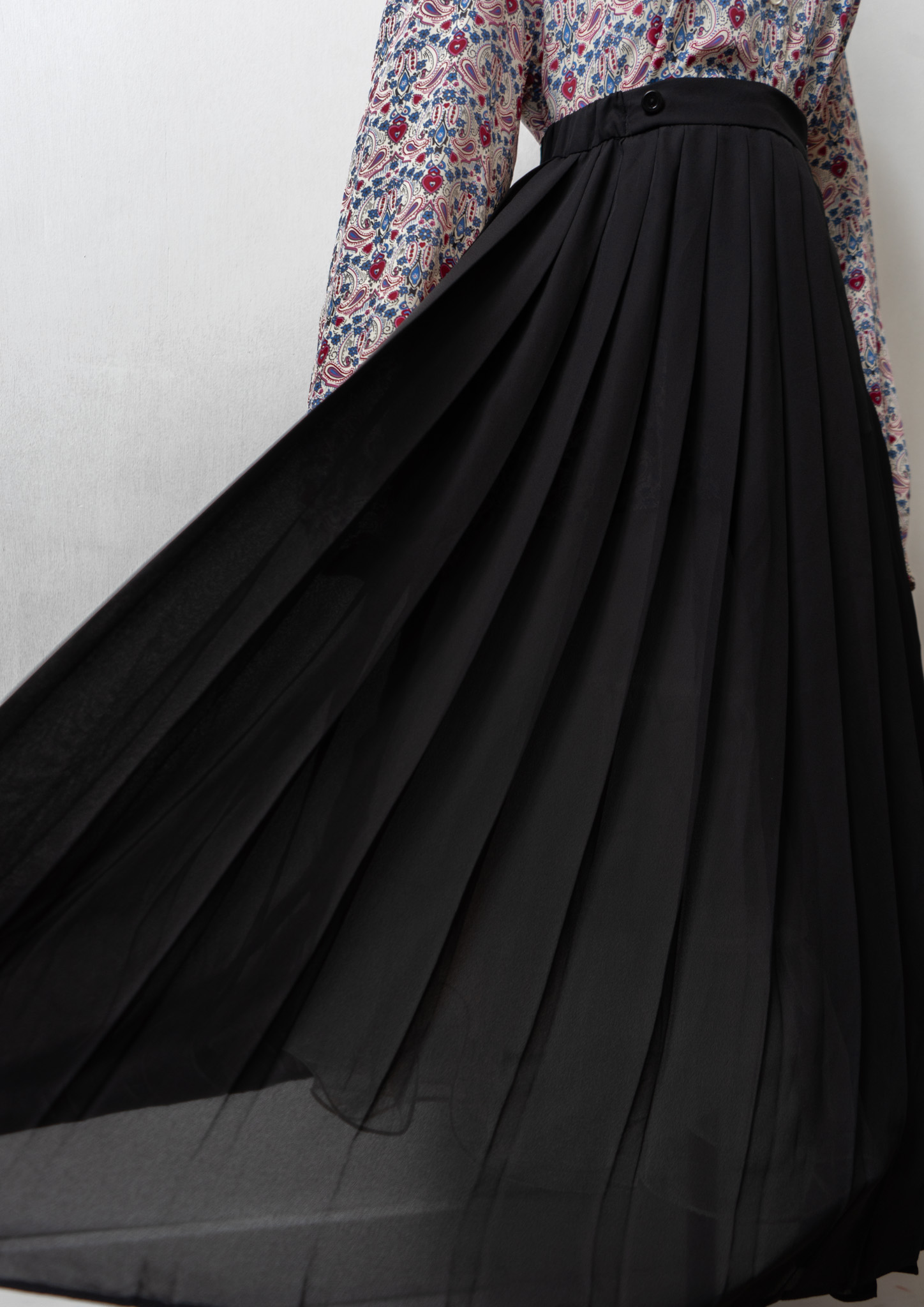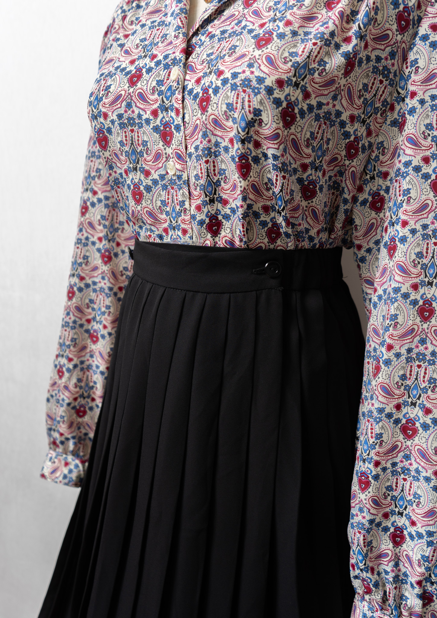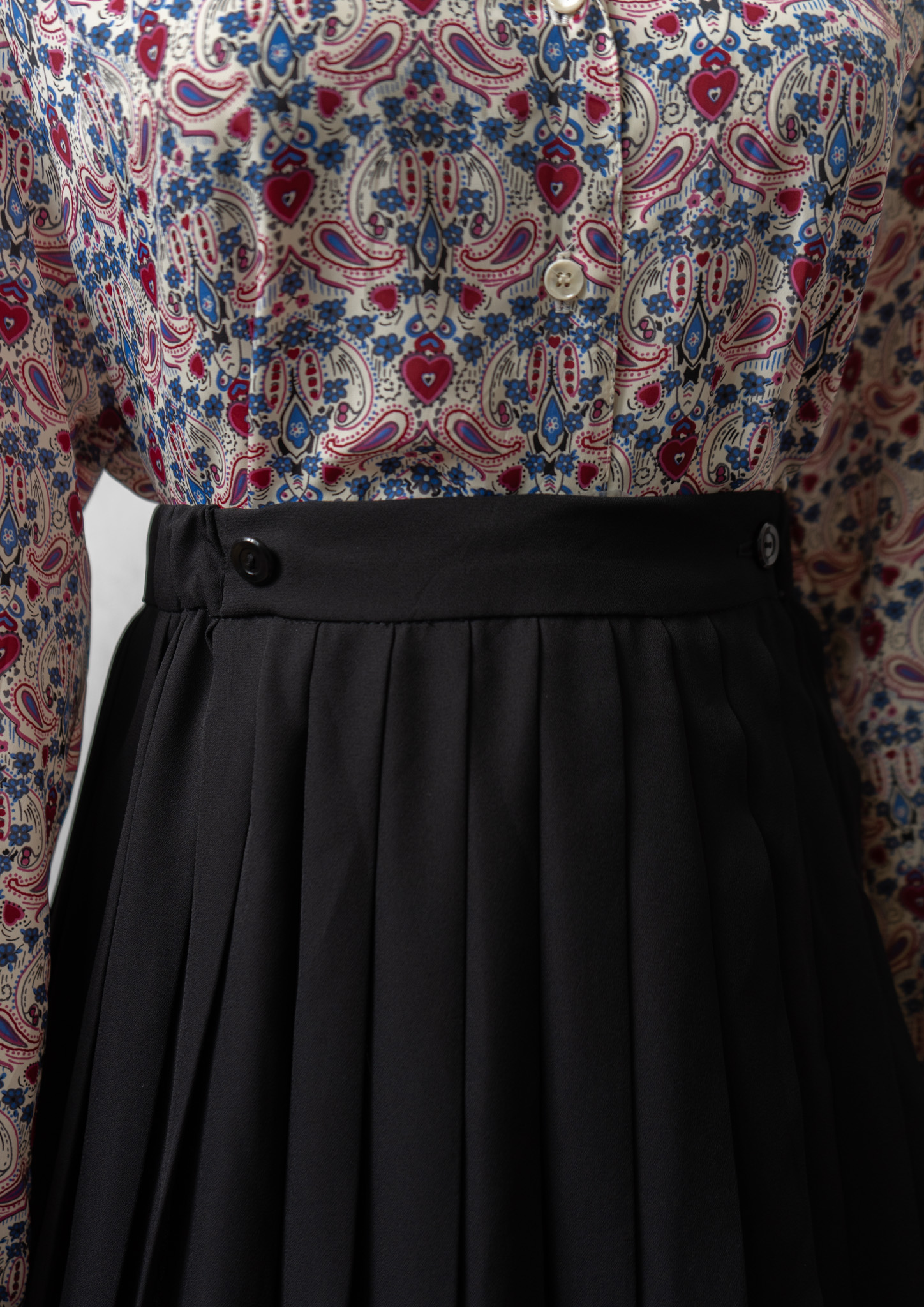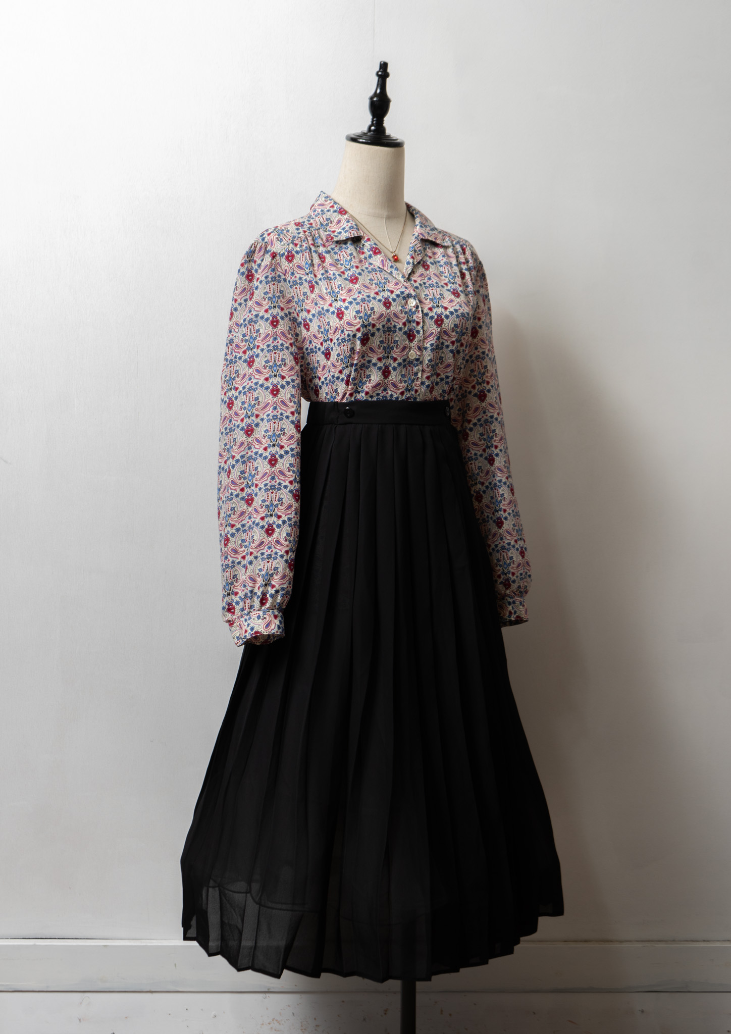 80's Small Flower × Dot Pattern Black Skirt