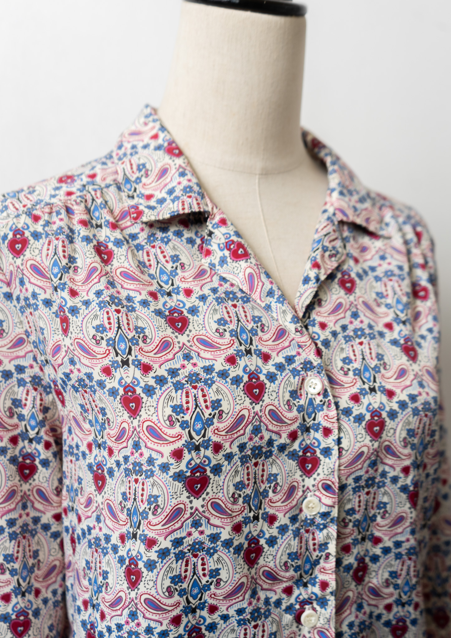 80's USA LESLIE FAY Heart × Paisley Pattern Blouse