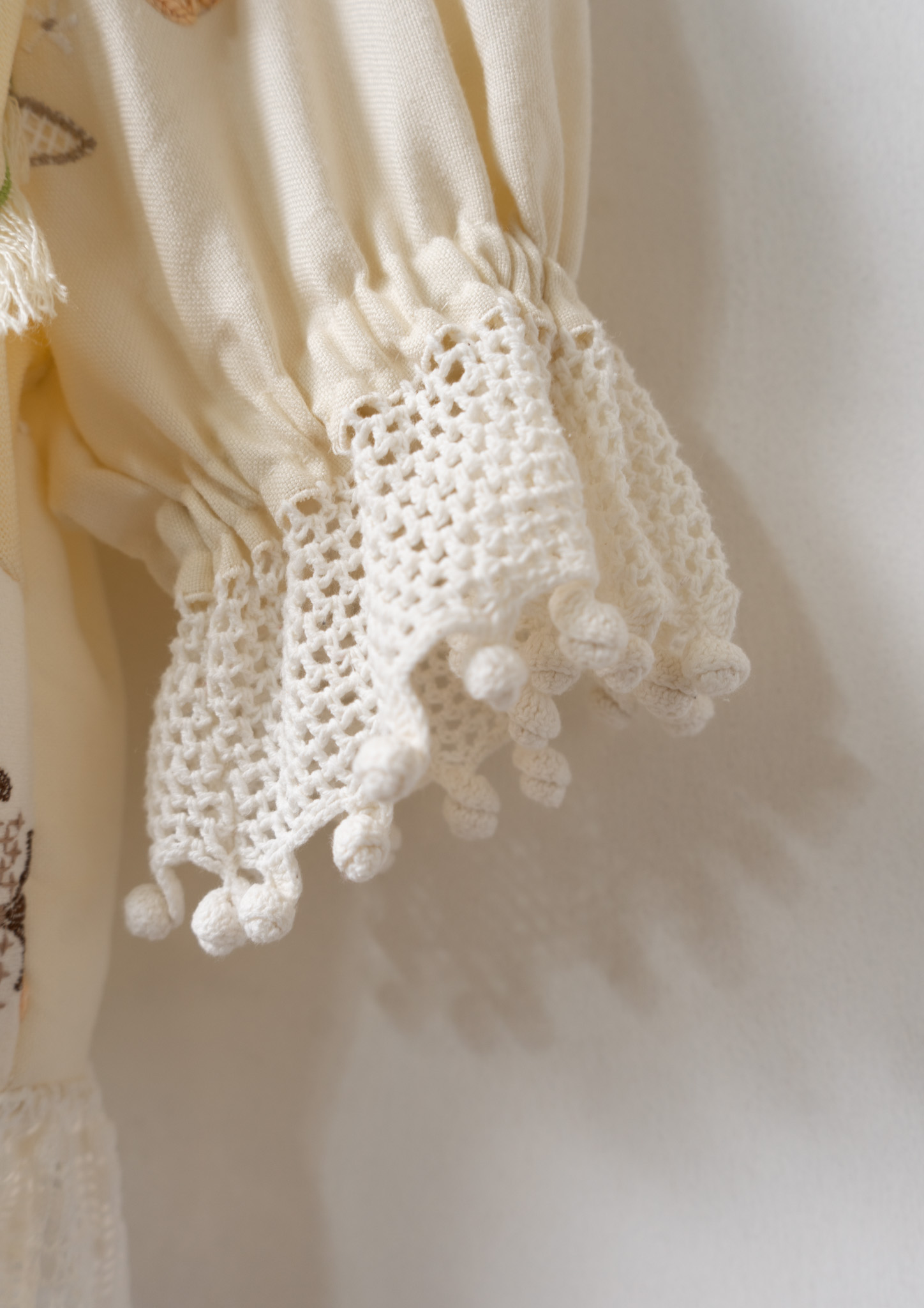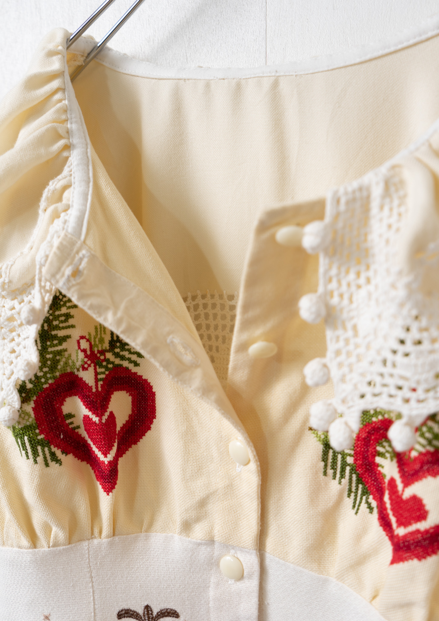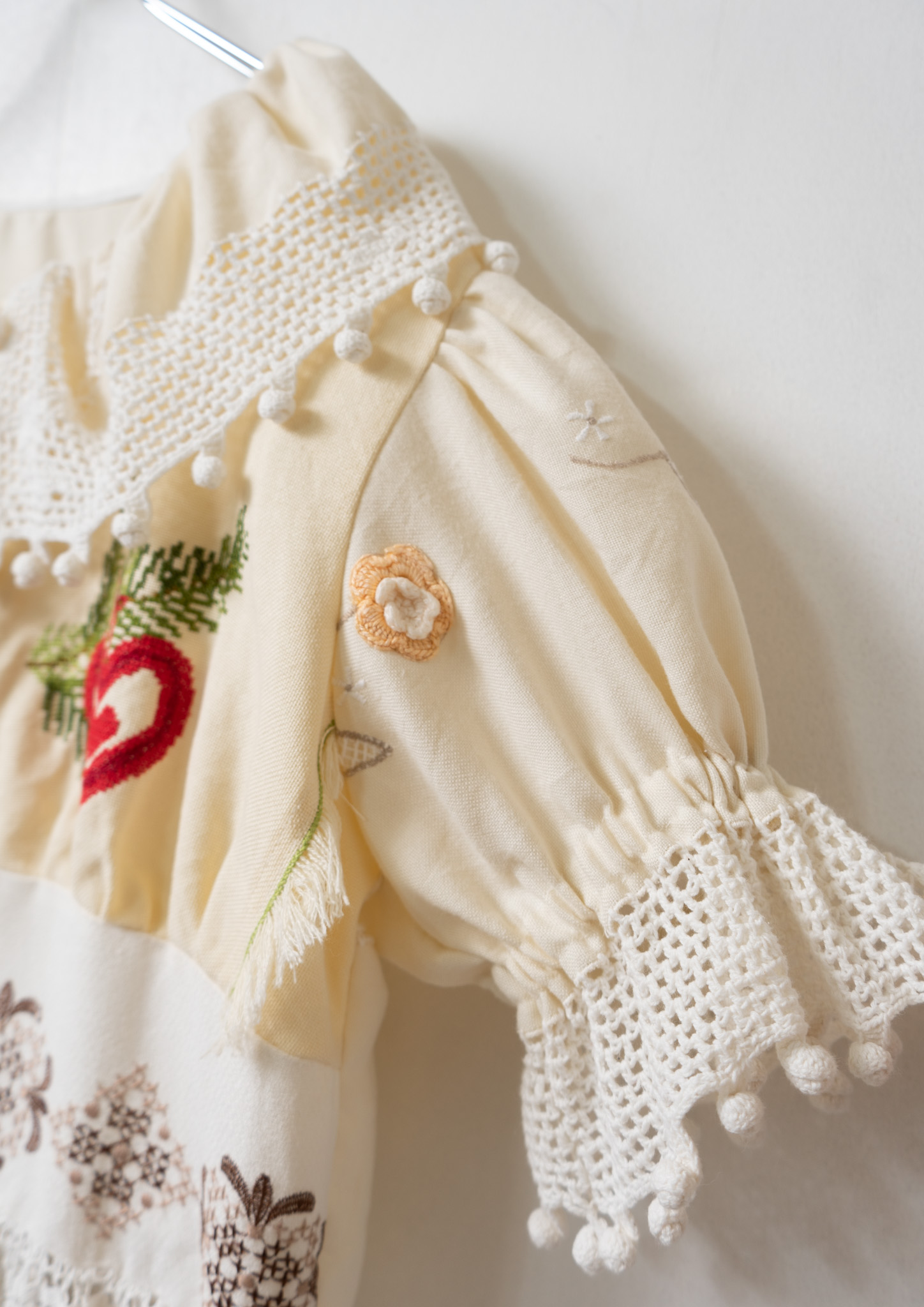 Upcycle Heart Embroidery Pom-pom Design Blouse