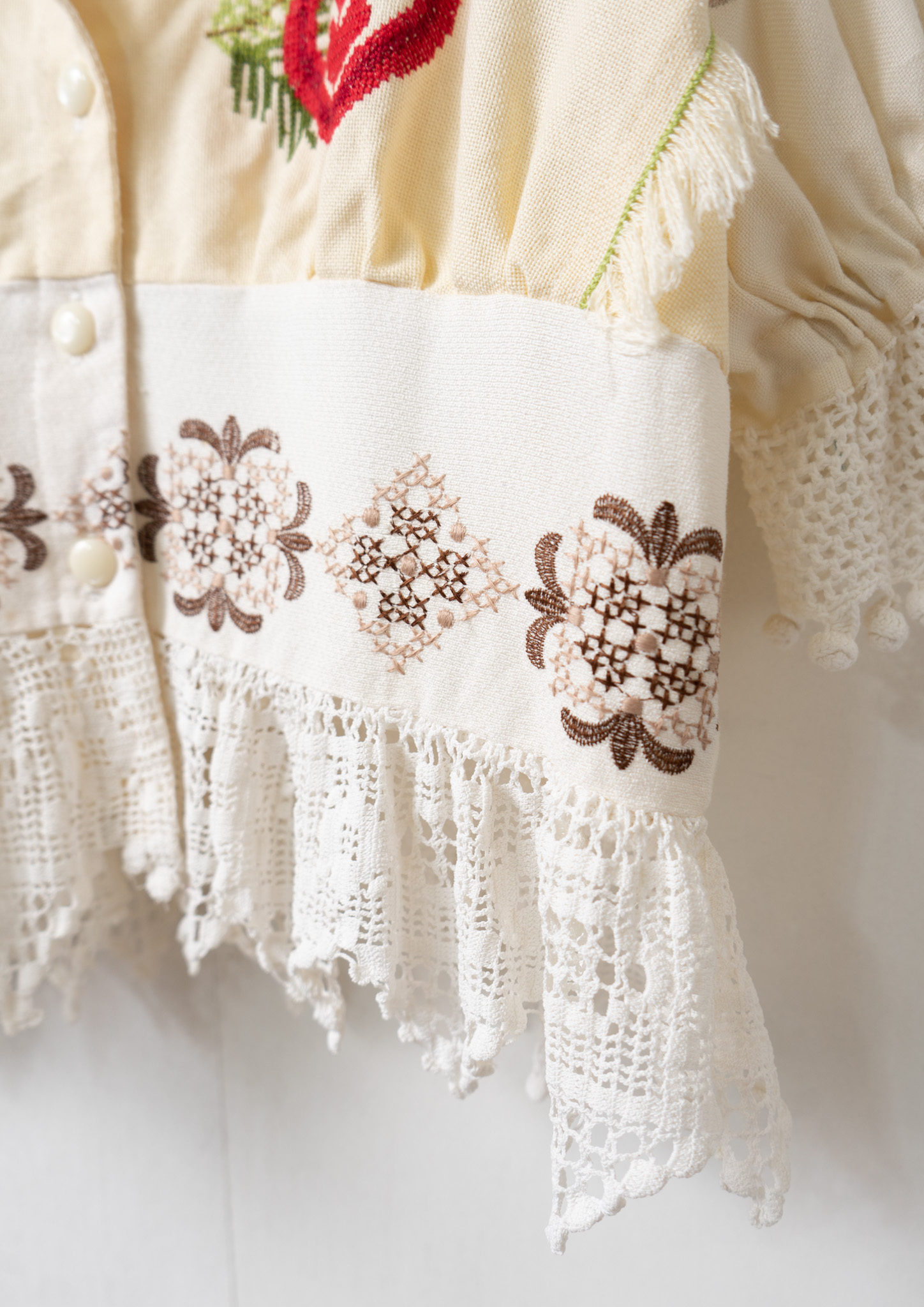 Upcycle Flower Bouquet Embroidery Pattern Cropped Blouse