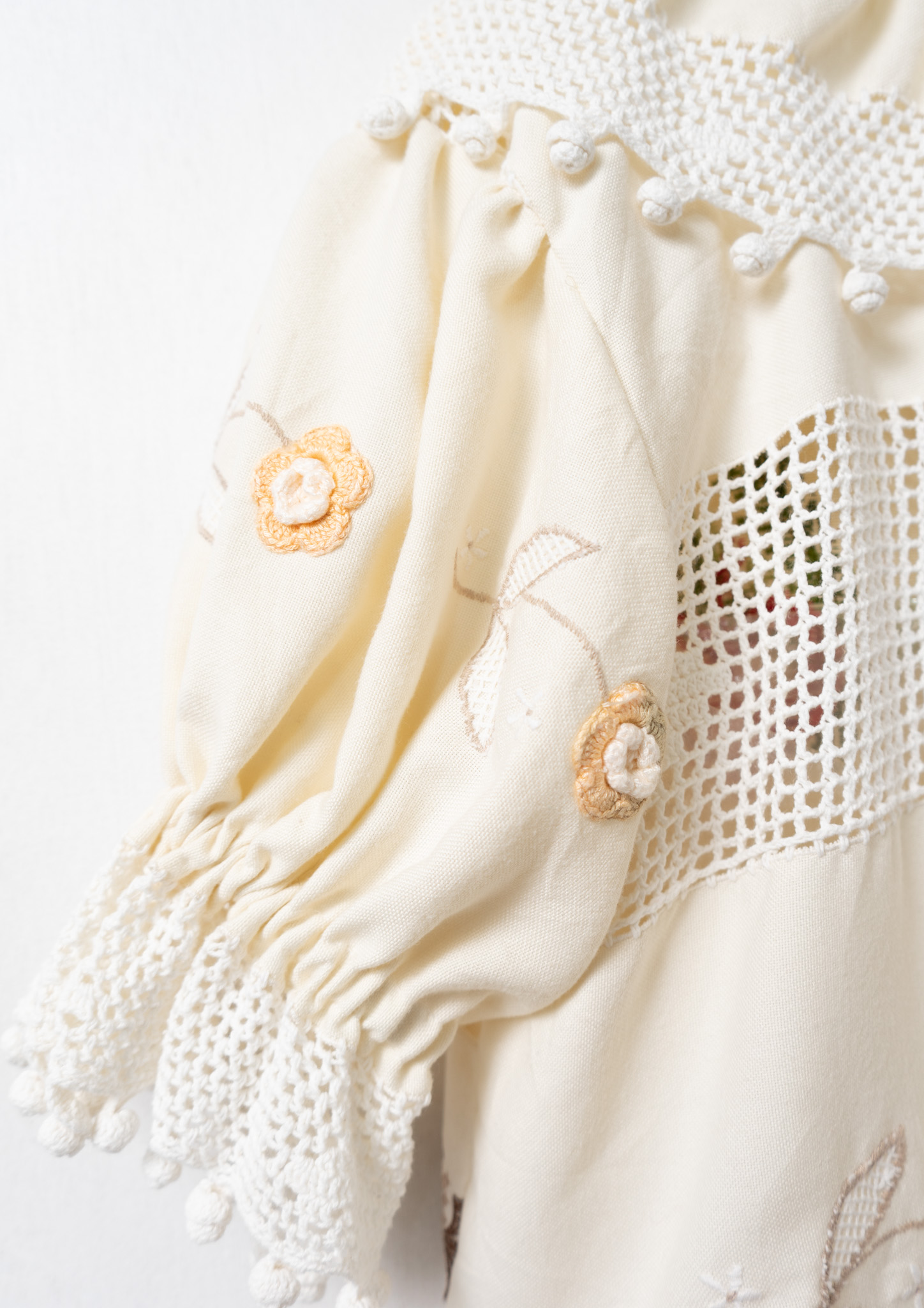 Upcycle Flower Embroidery × Pin Tuck Design Cropped Blouse