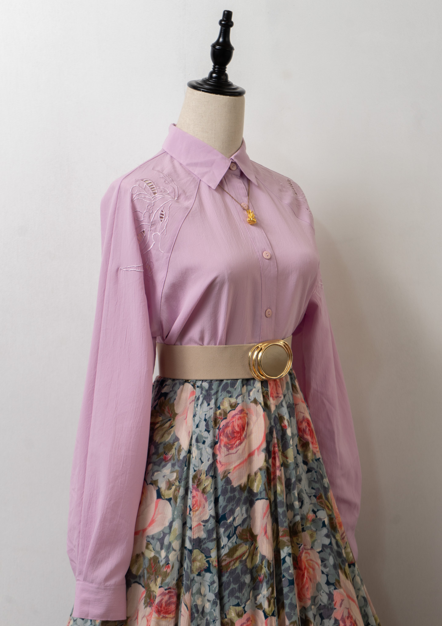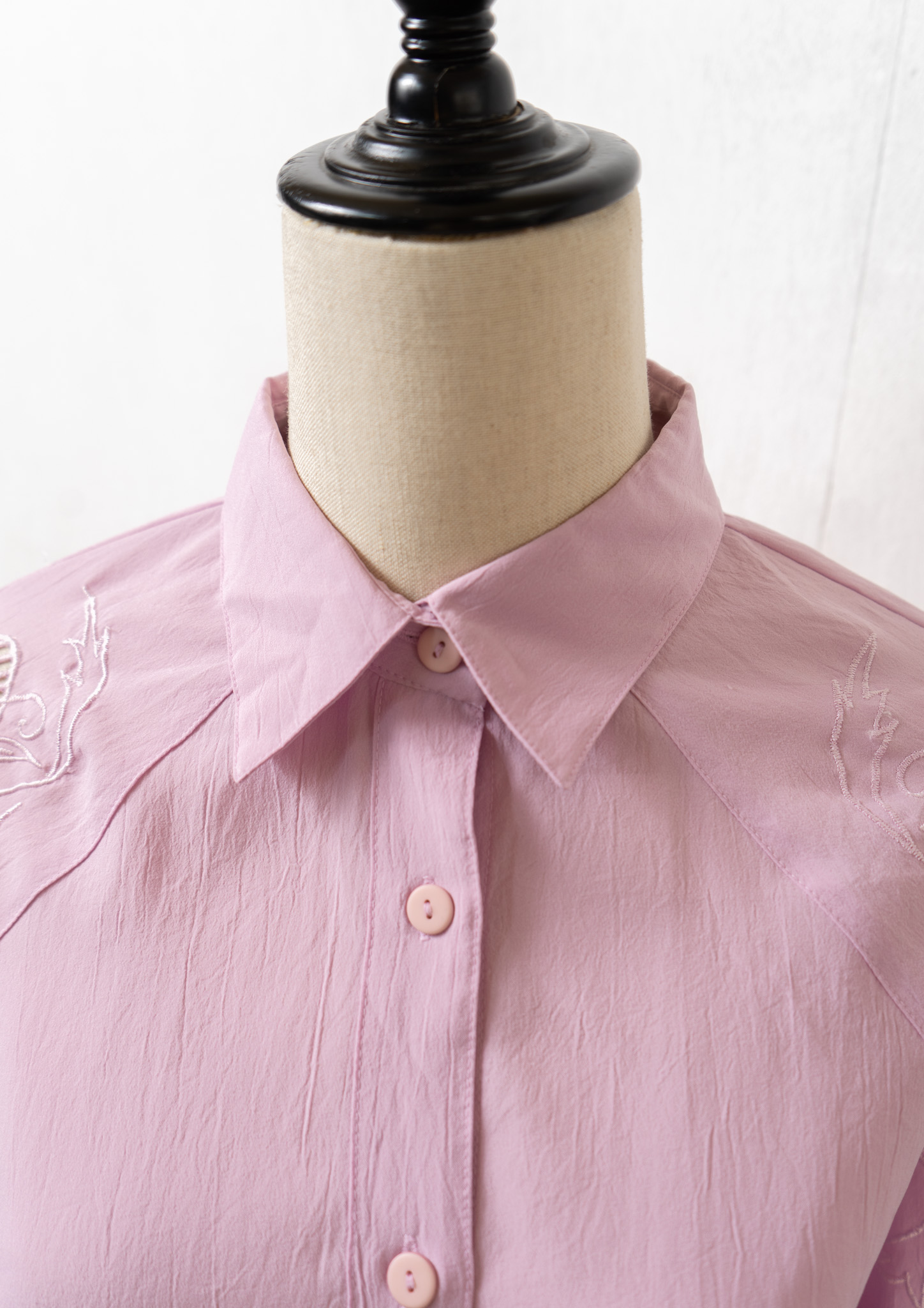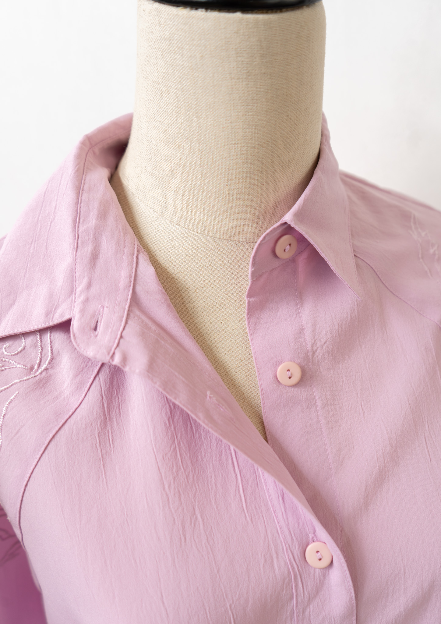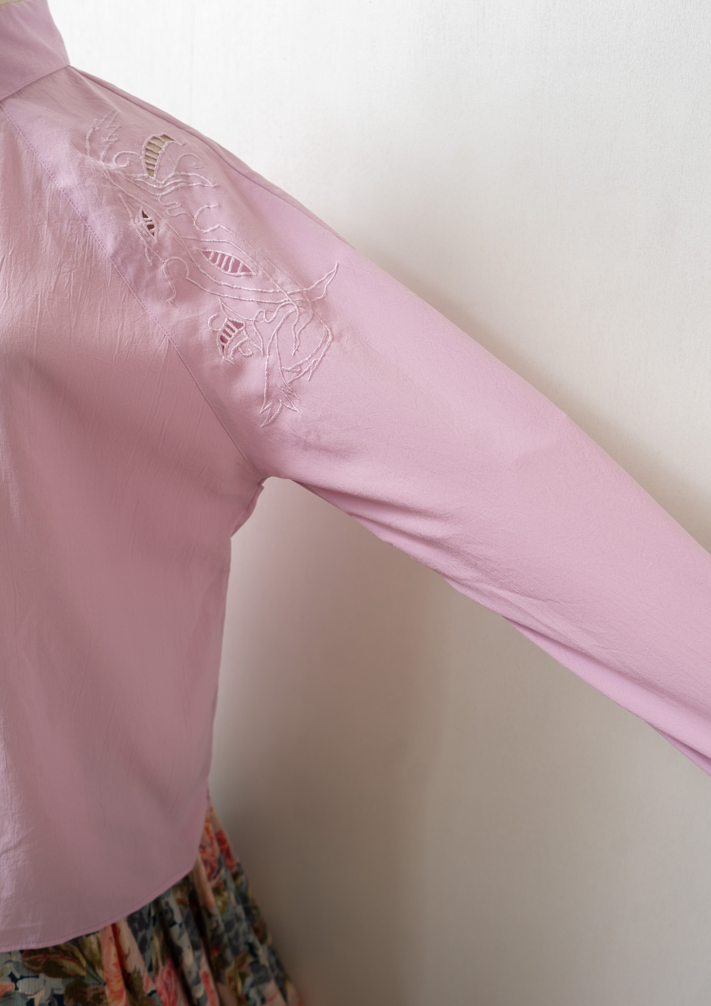 80's Botanical Cutwork Design Lavender Pink Blouse