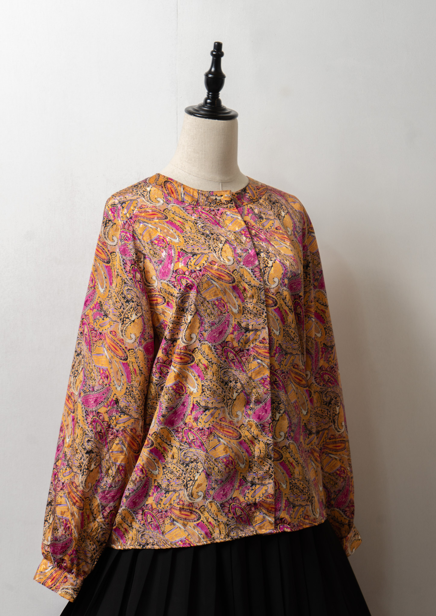 80's Botanical Cutwork Design Lavender Pink Blouse
