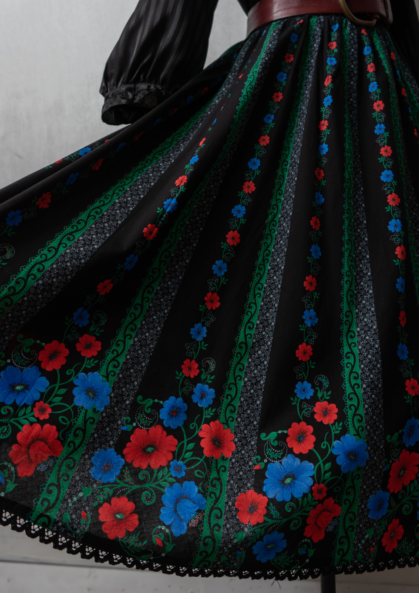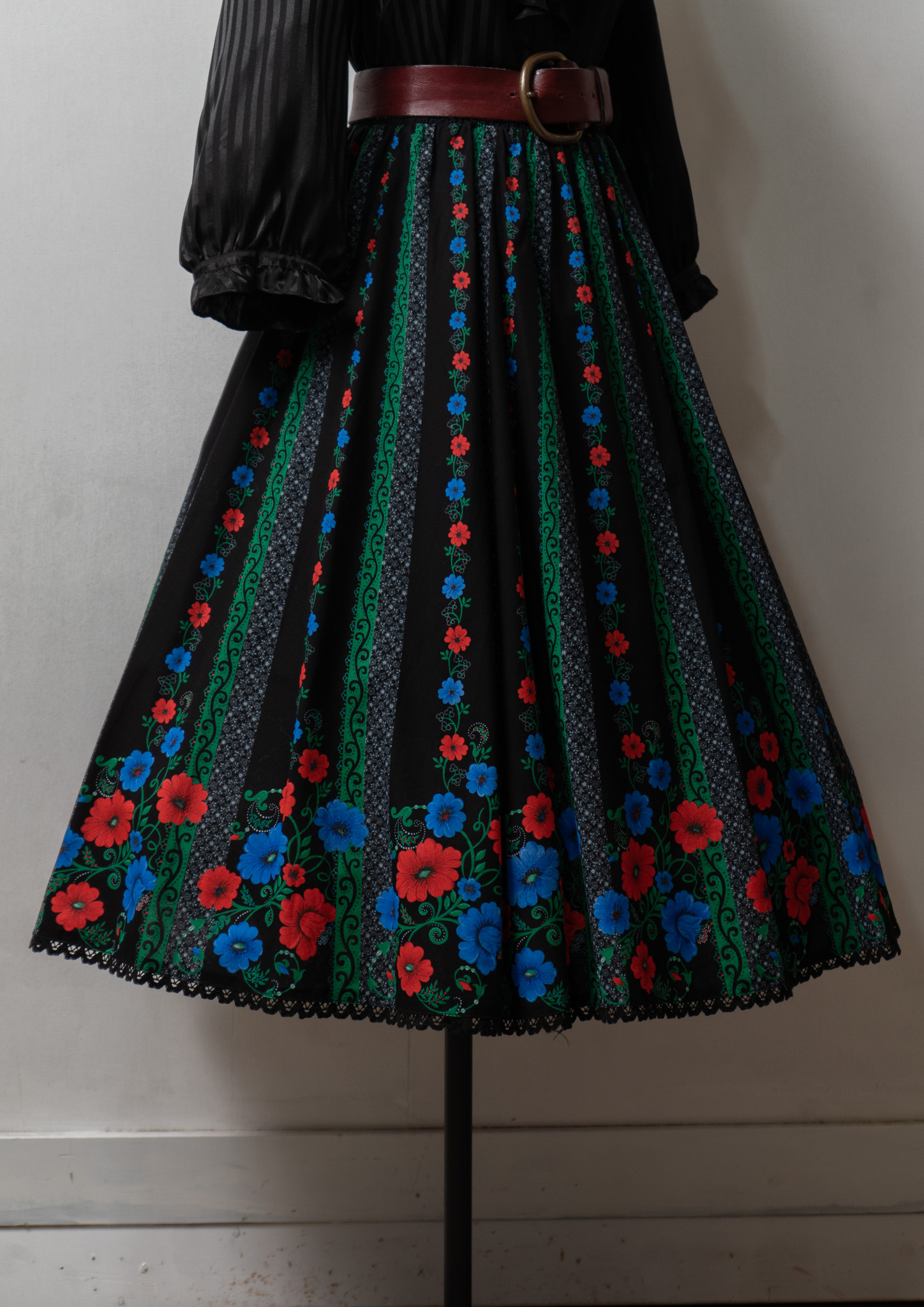 90's Red × Blue Flower Pattern Black Tyrol Skirt