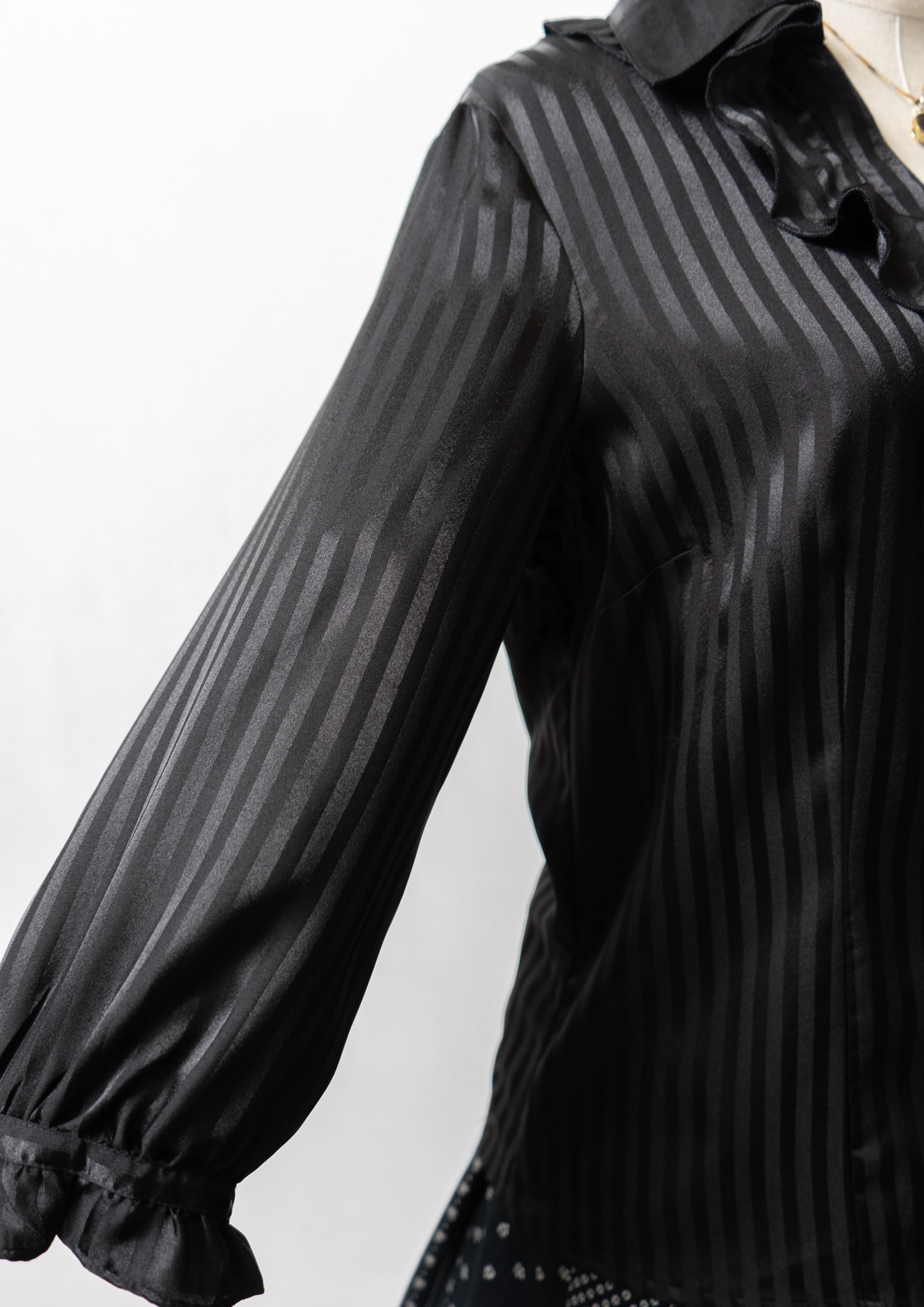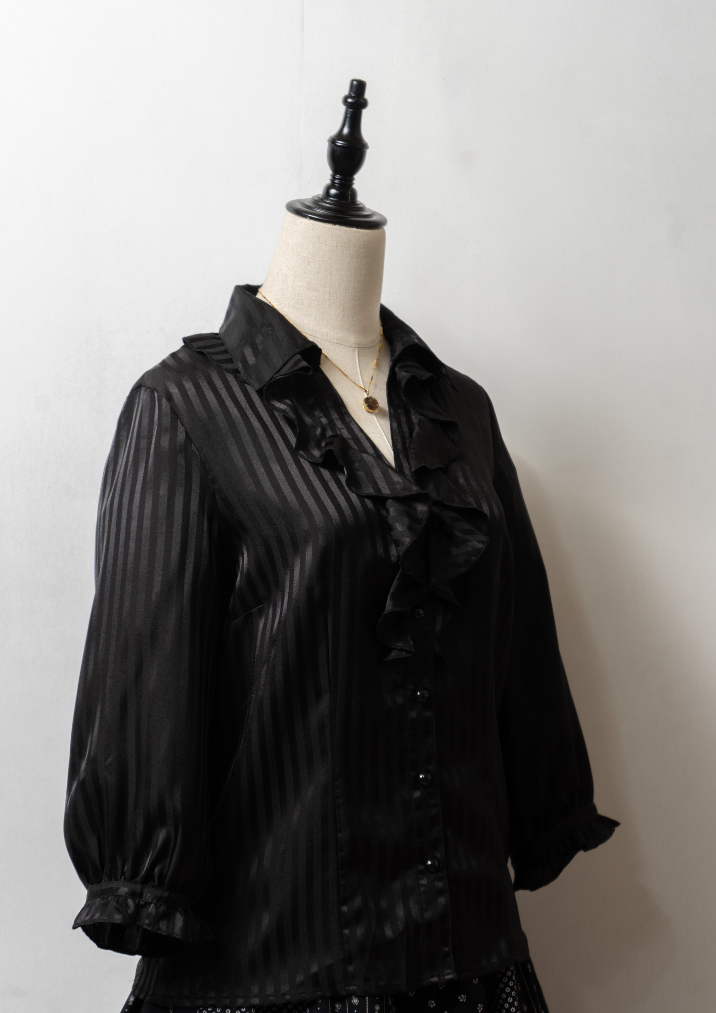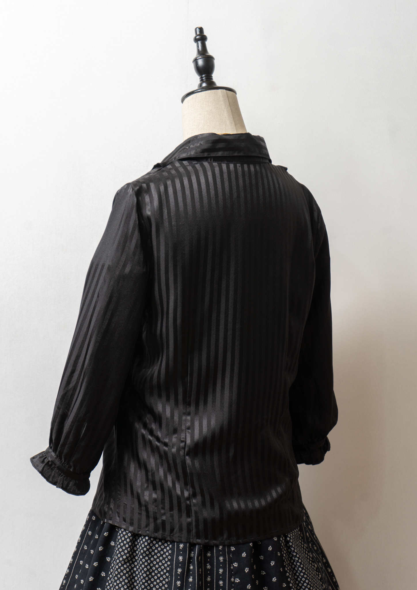 Stripe Pattern Frill Design Black Blouse