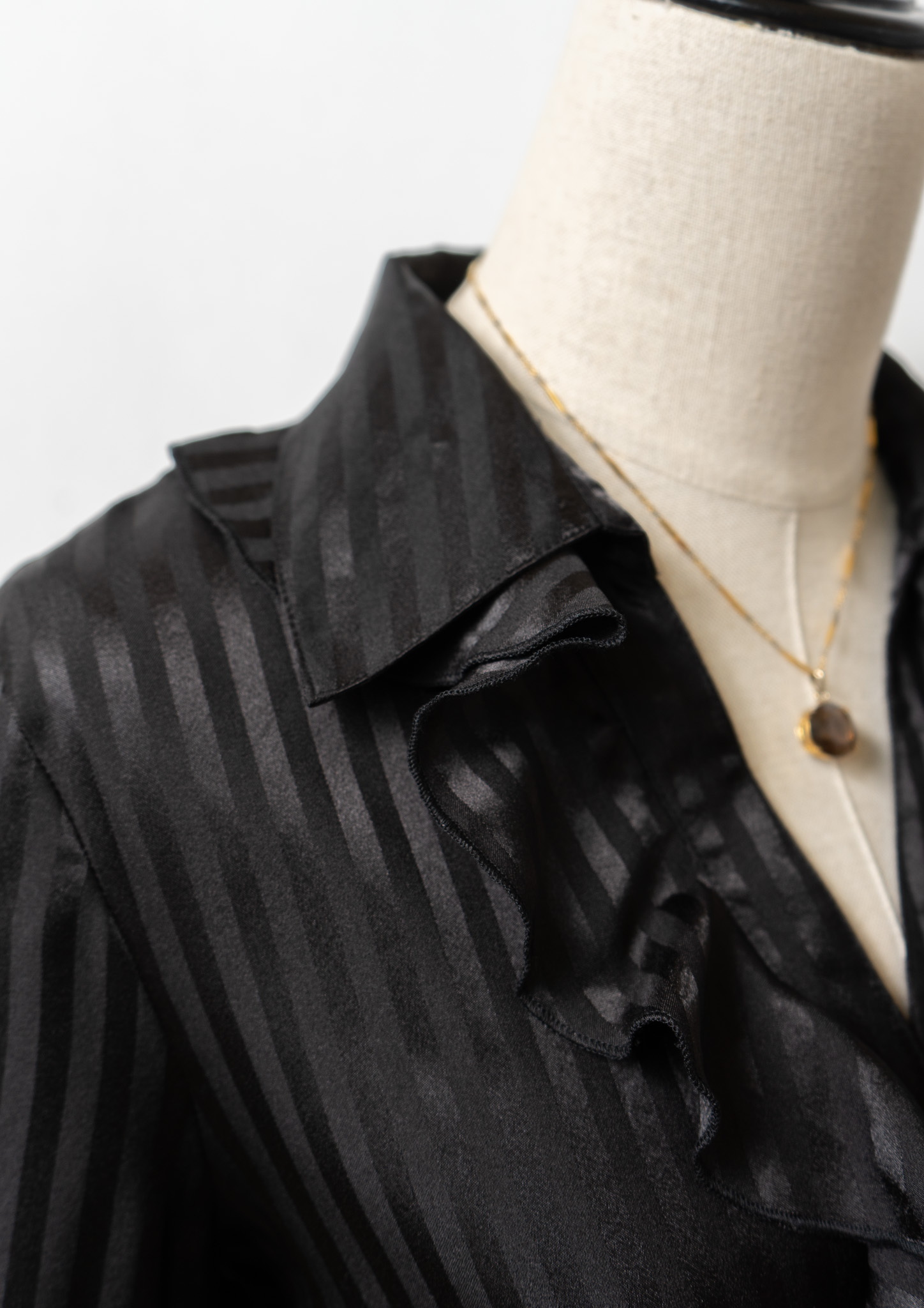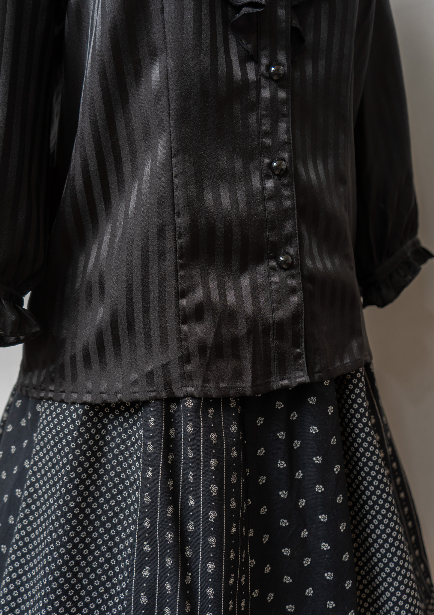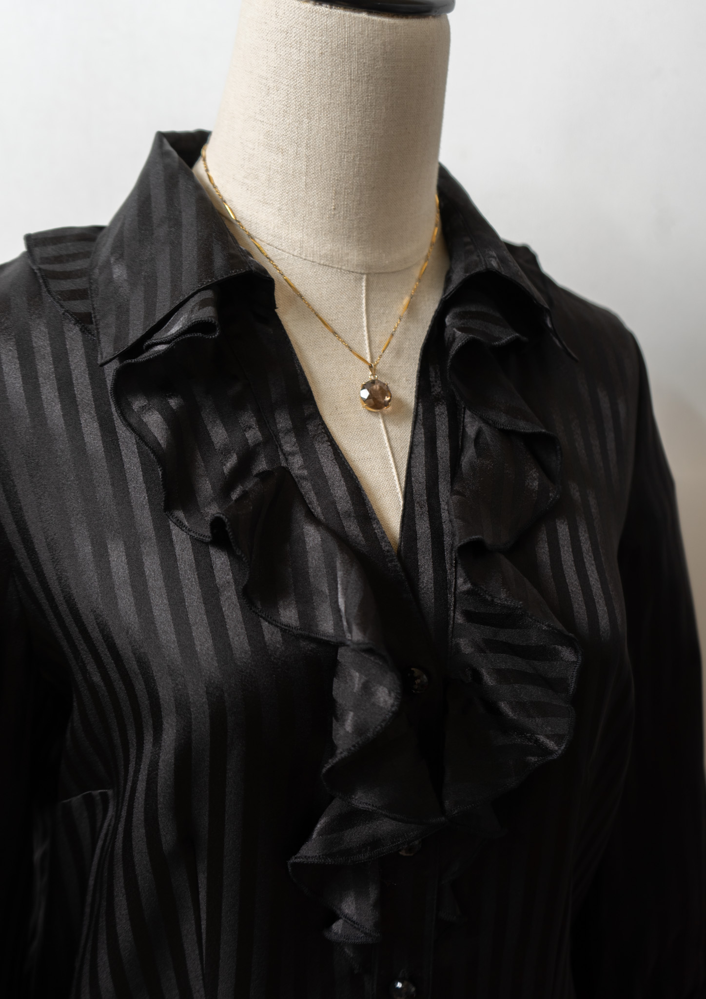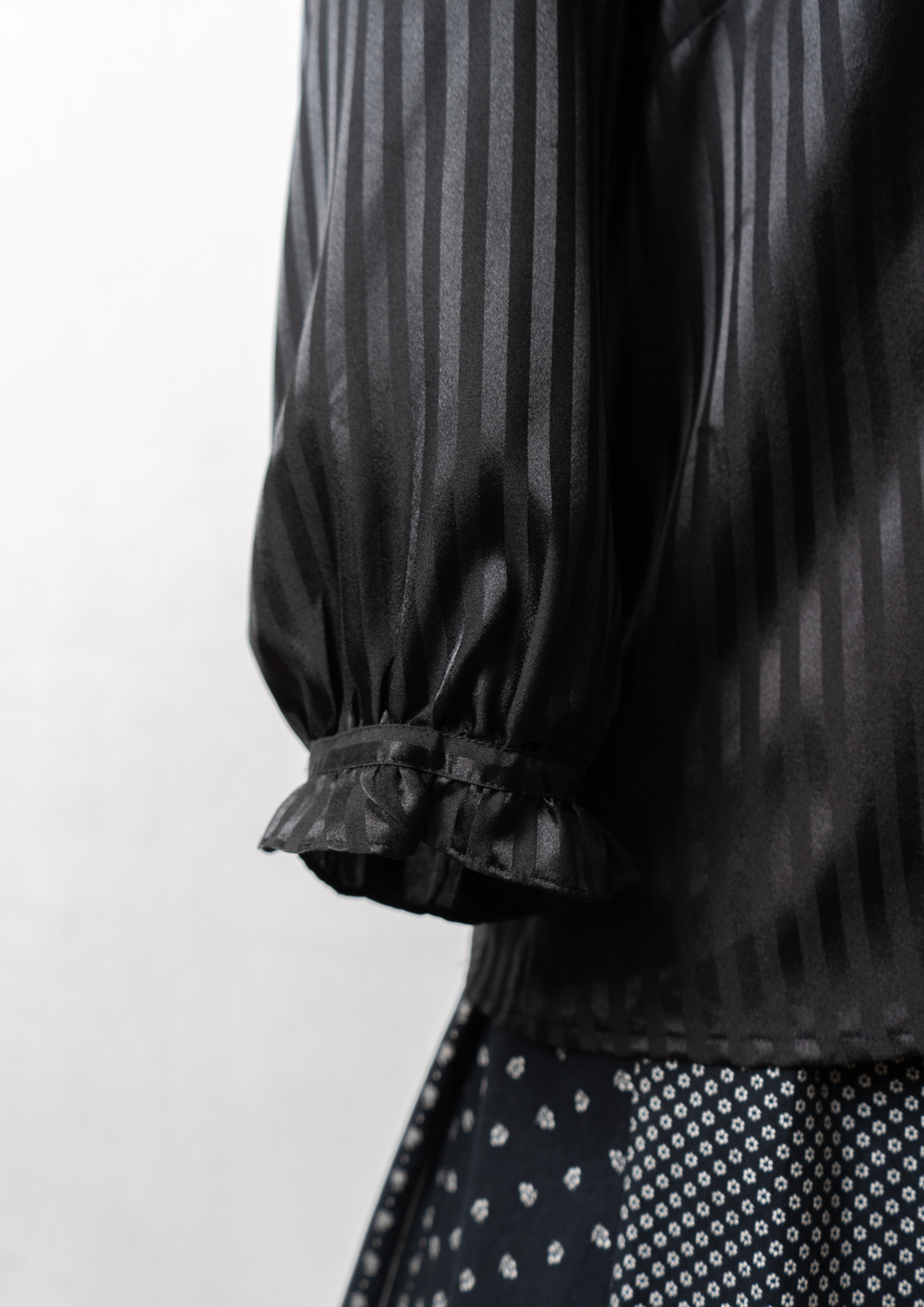 Stripe Pattern Frill Design Black Blouse