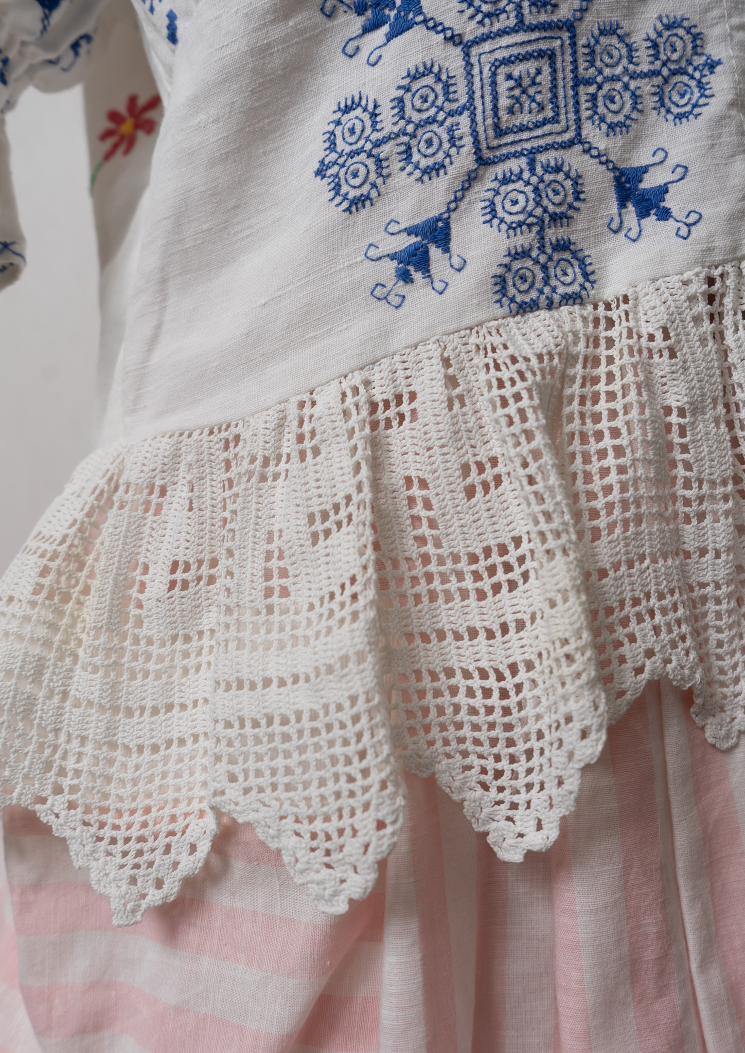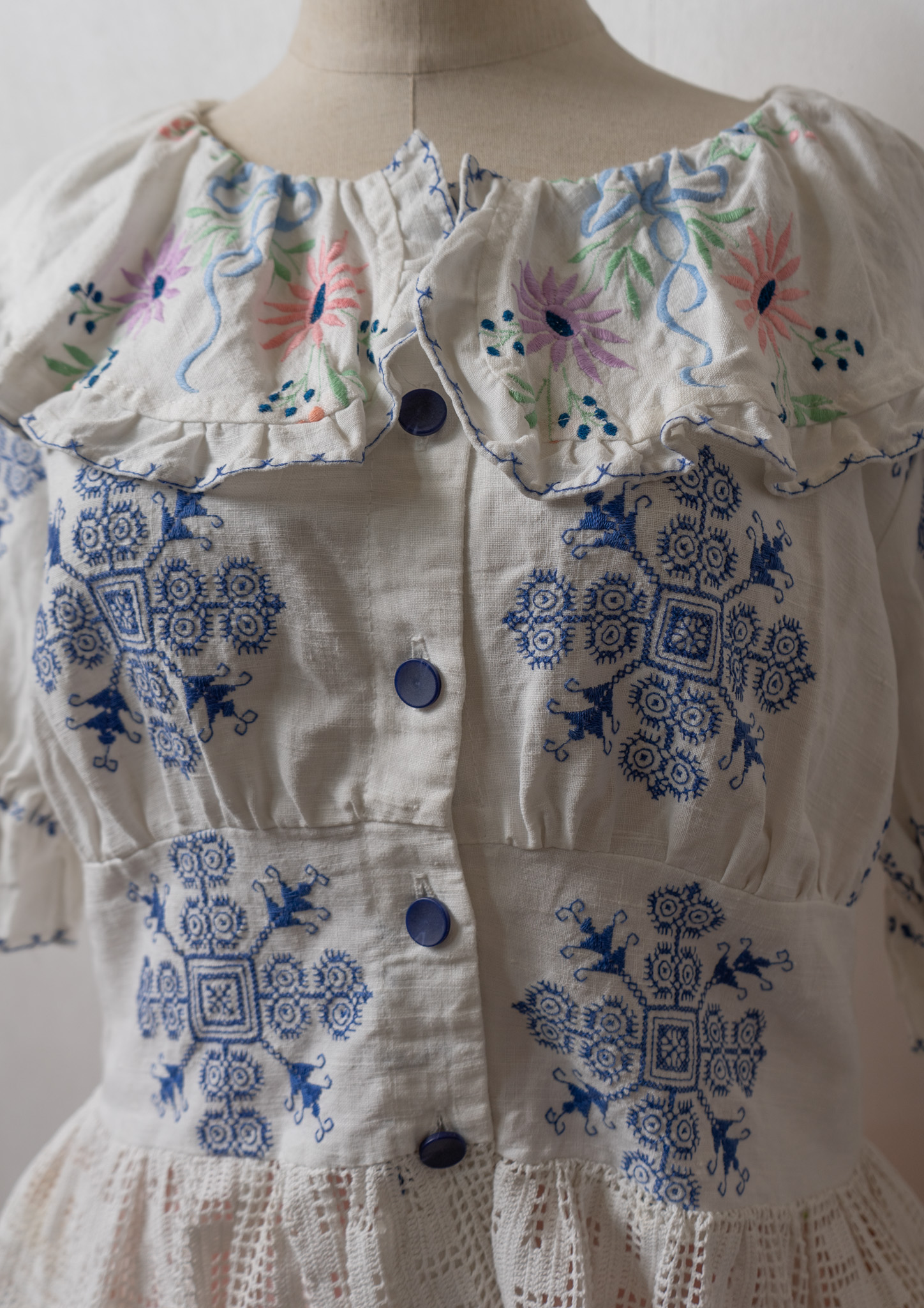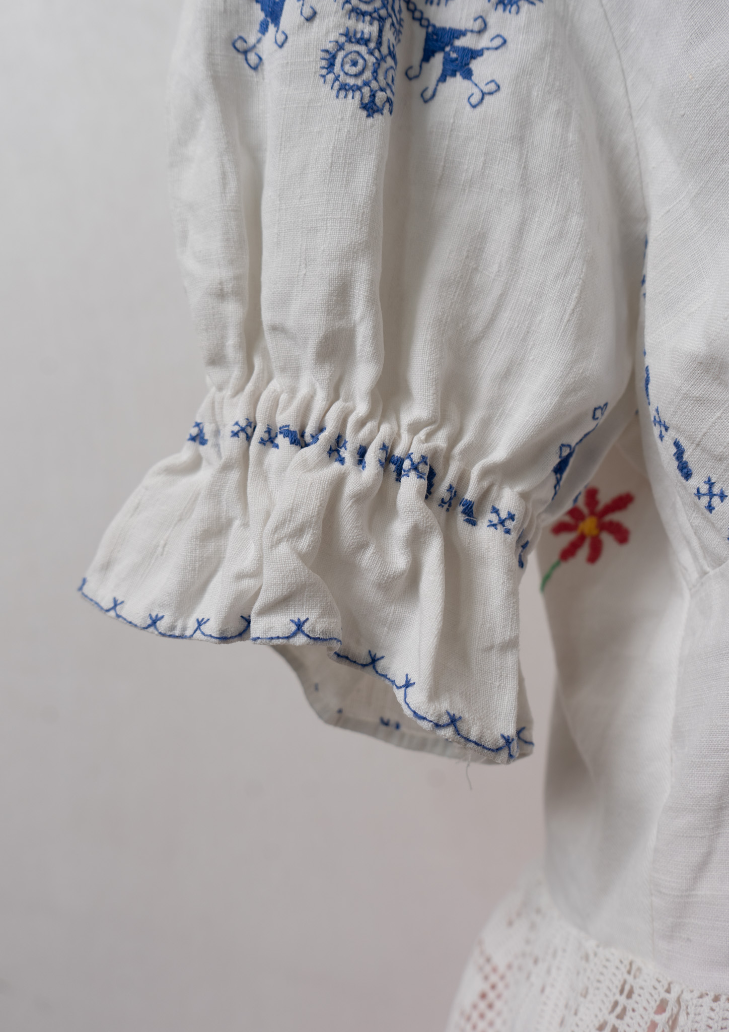 Upcycle Flower Embroidery Crochet Lace White Blouse