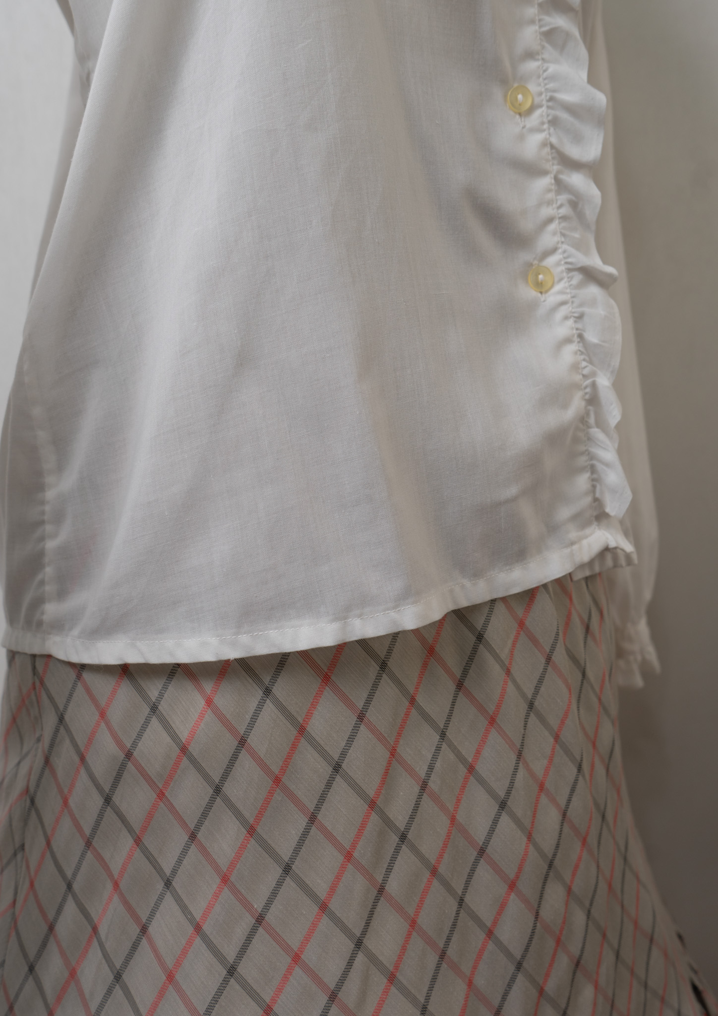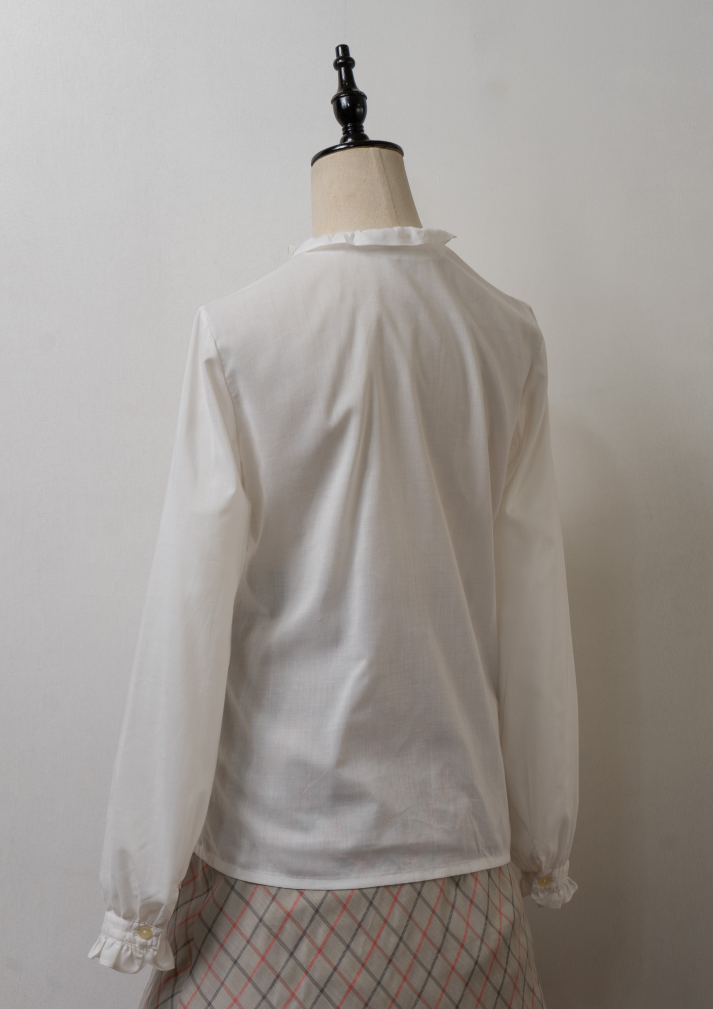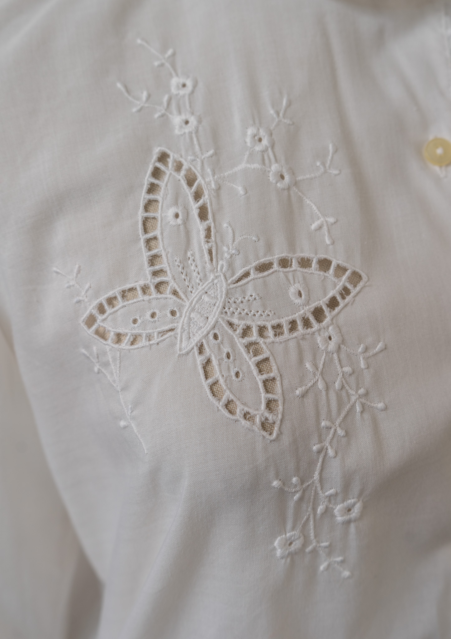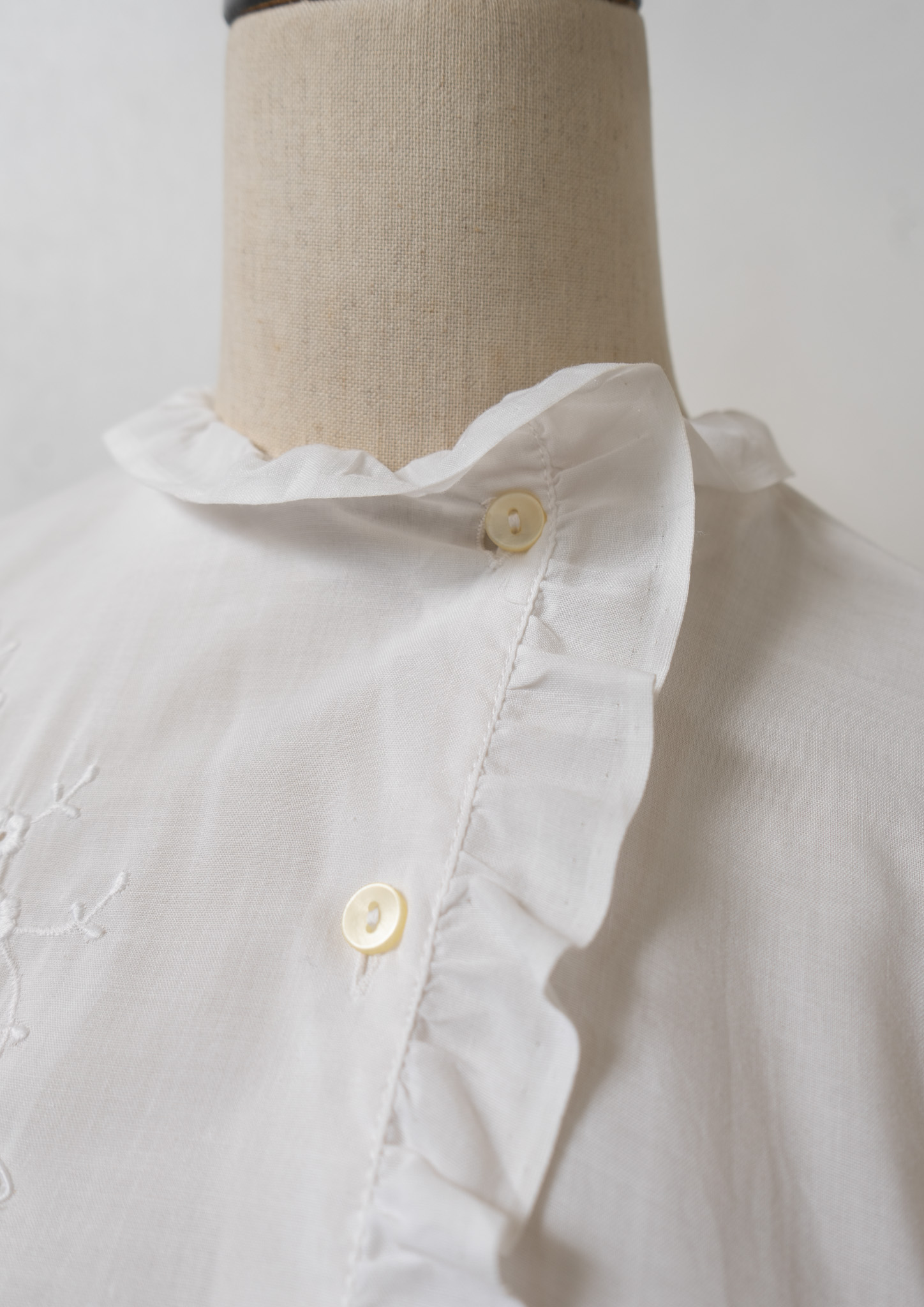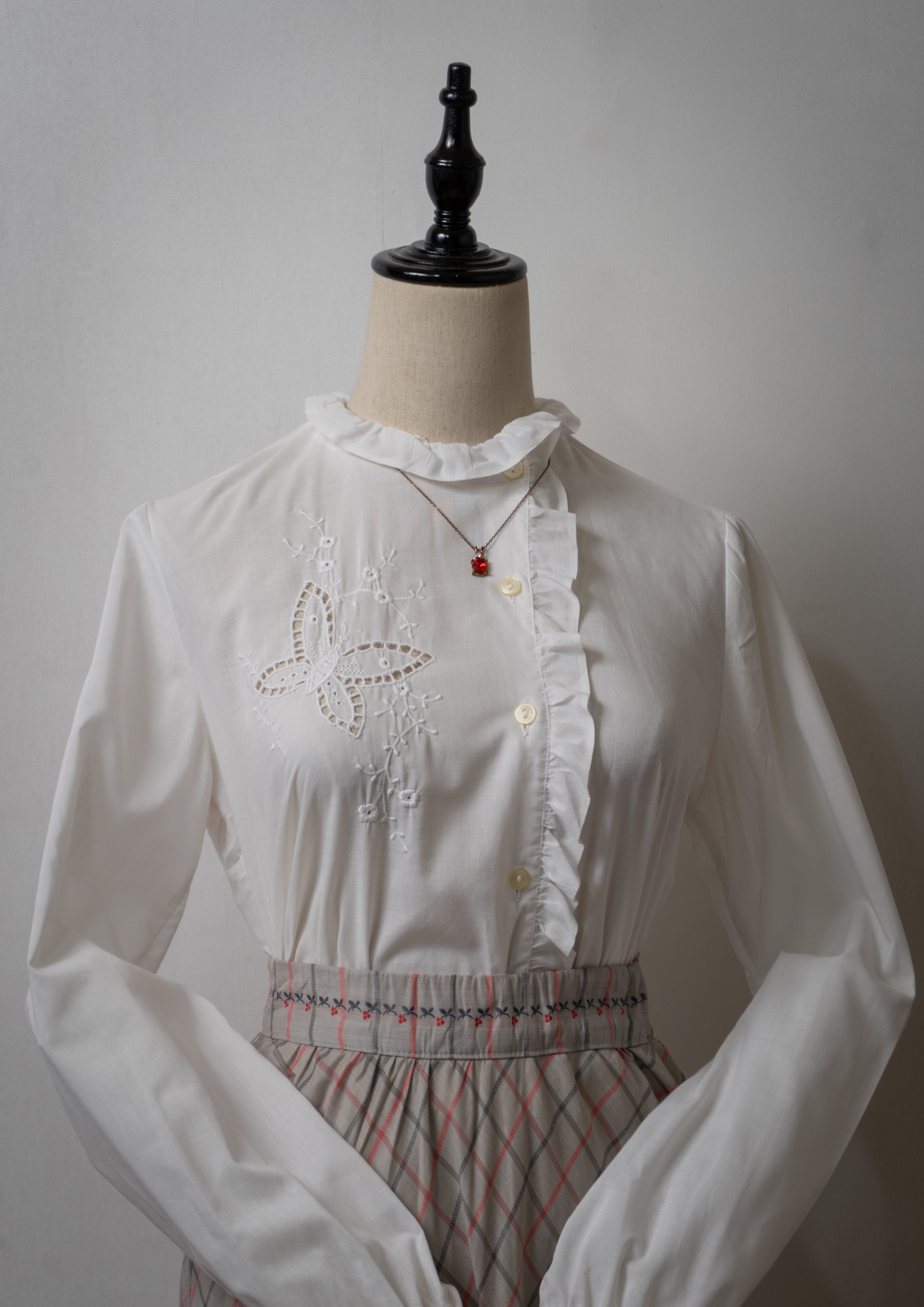 70~80’s Butterfly × Flower Embroidery Frill Design Whiite Blouse