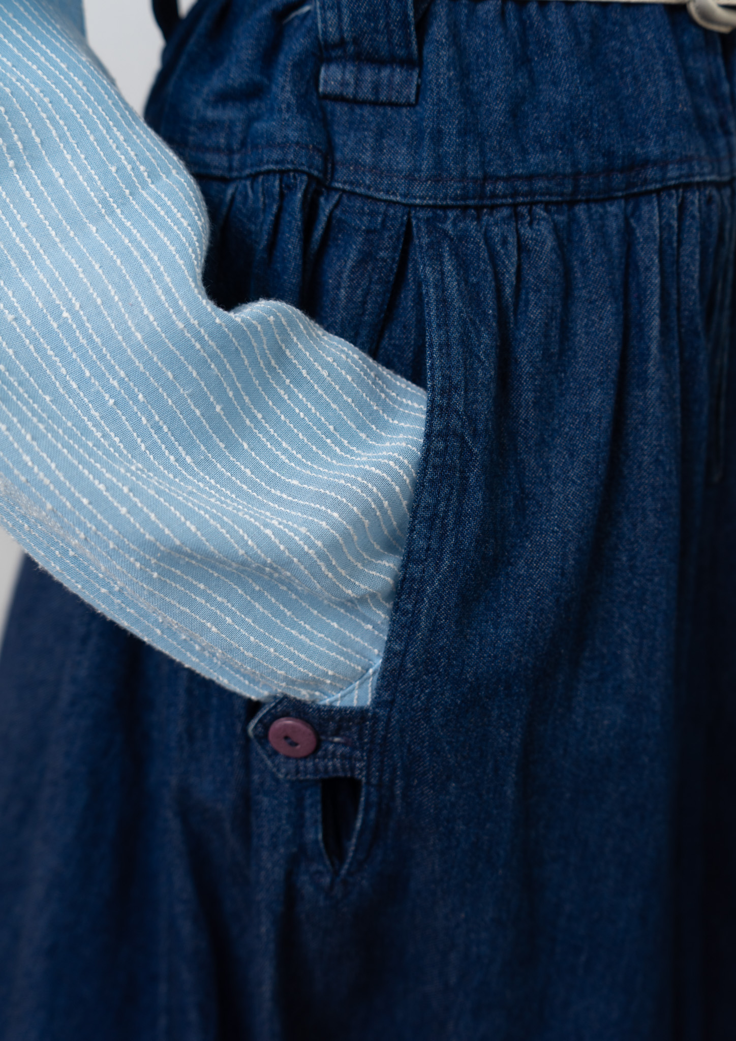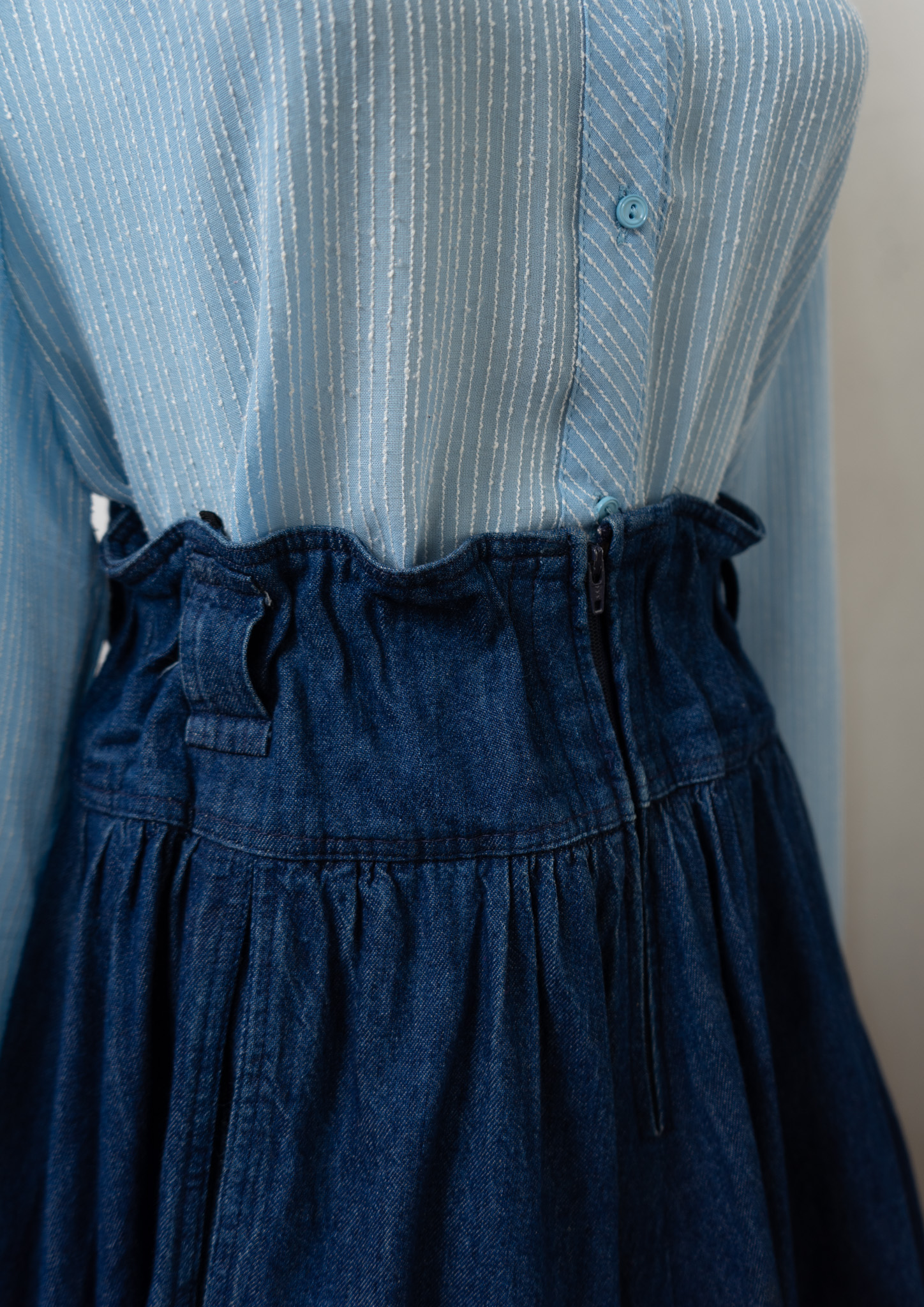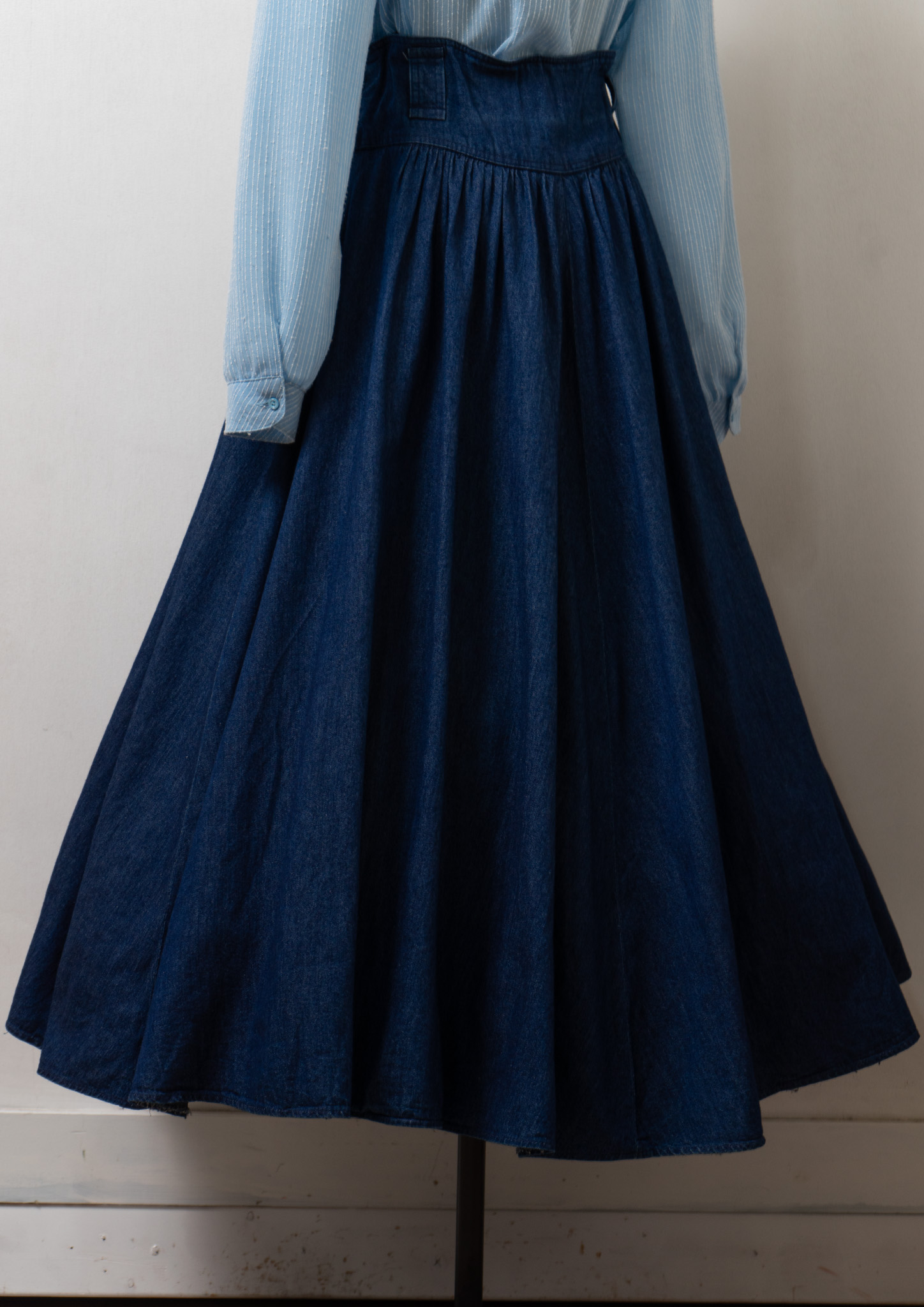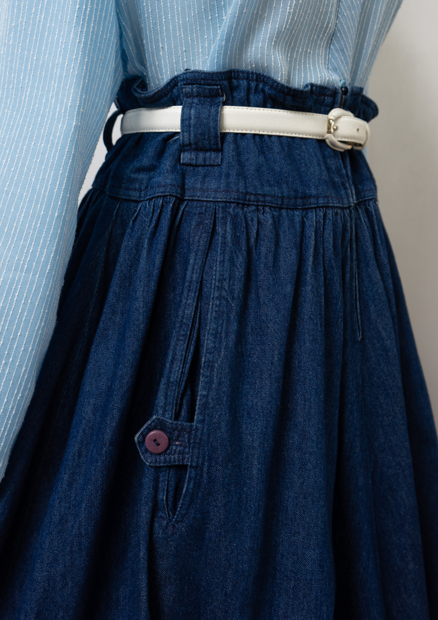 70~80’s Pocket Design Blue Denim Flare Skirt