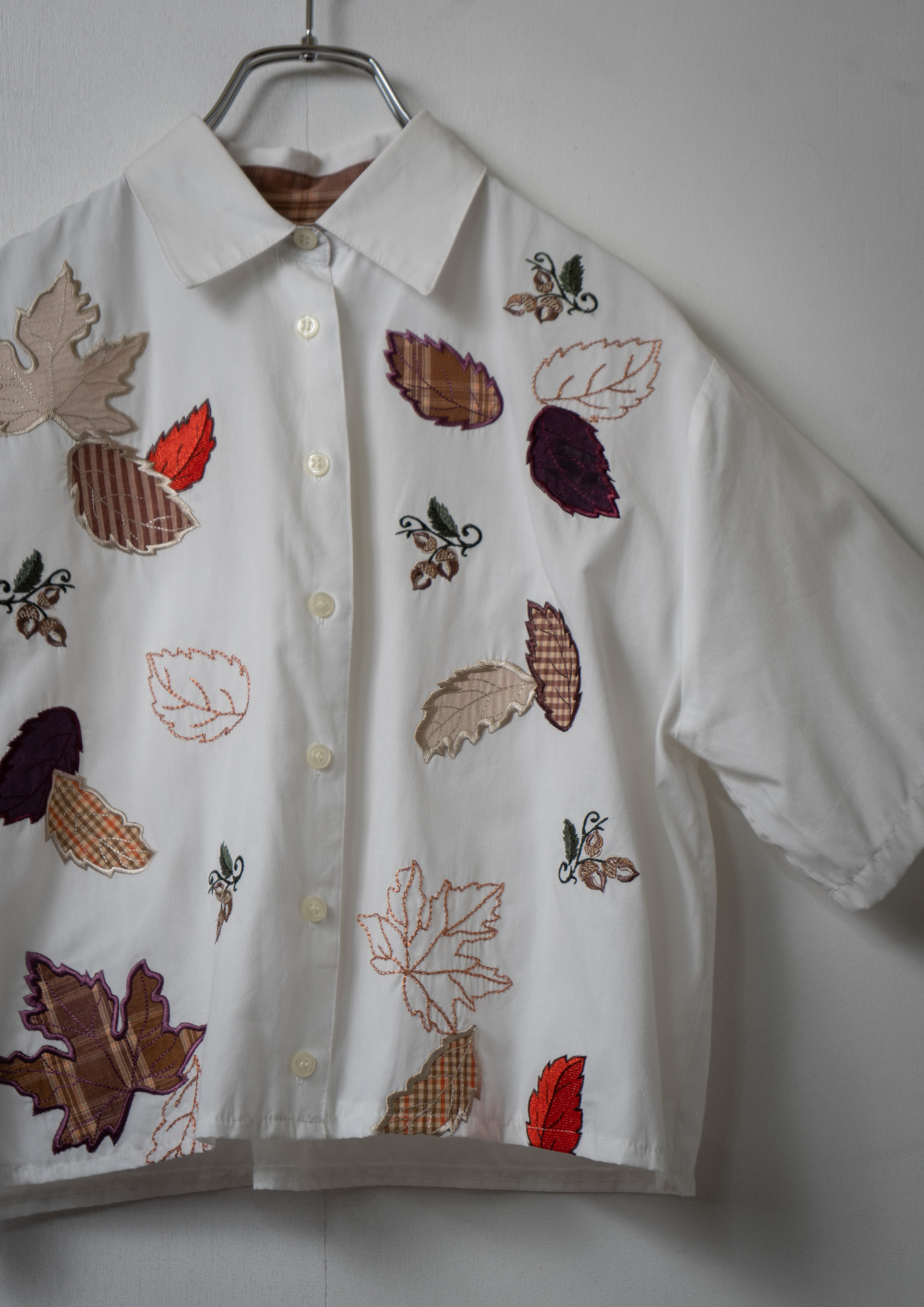Upcycle Leaves Patchwork × Embroidery White Cropped Blouse
