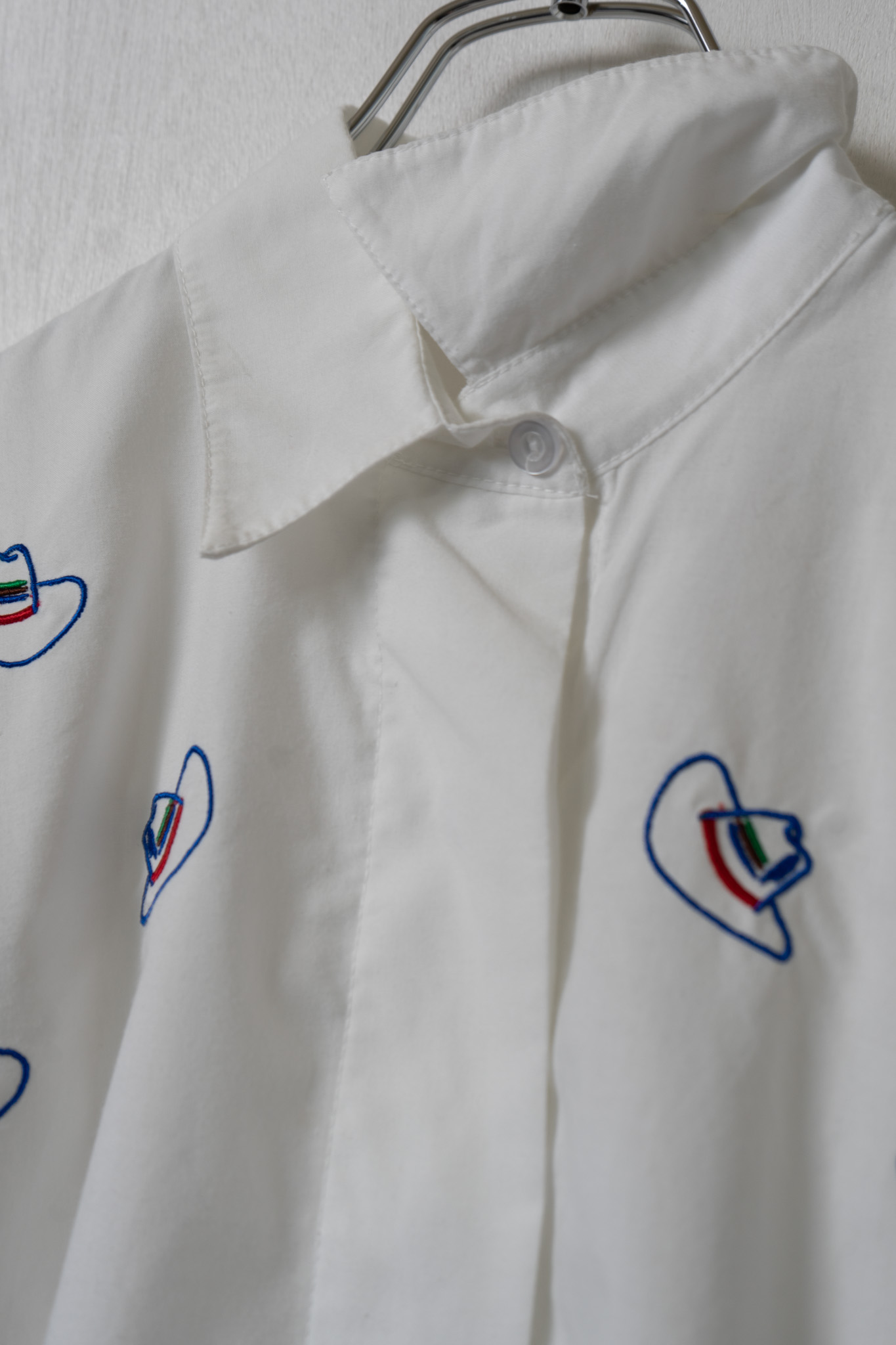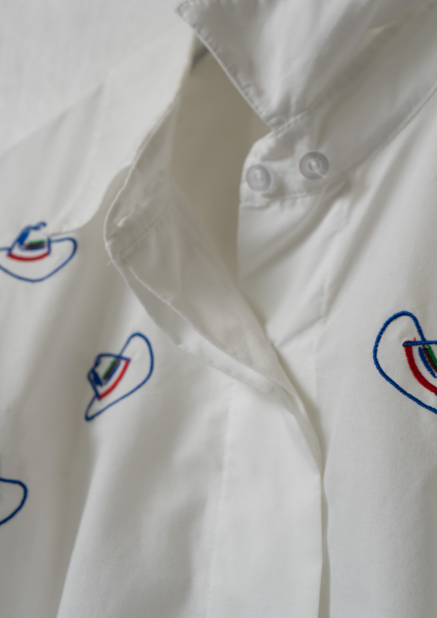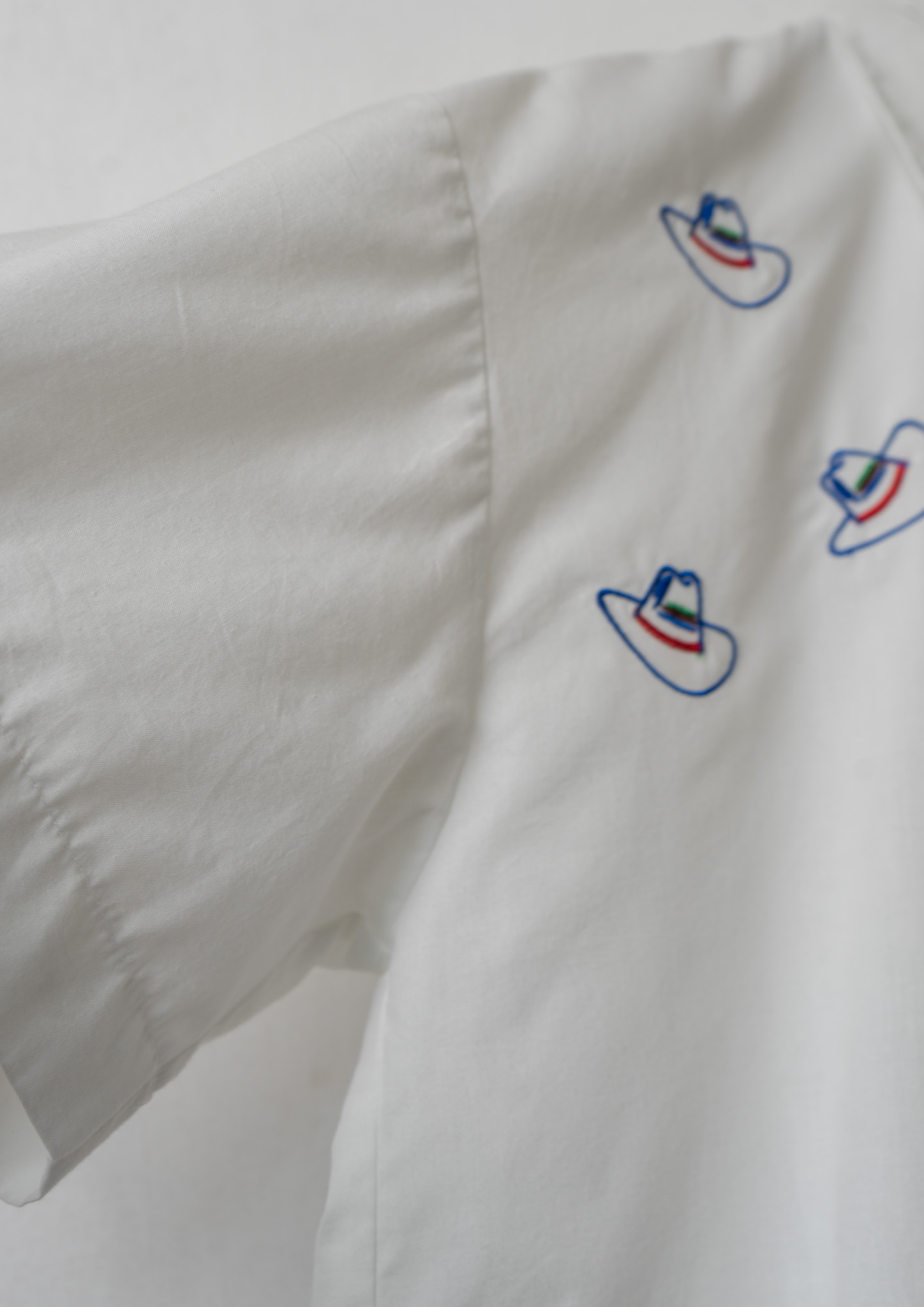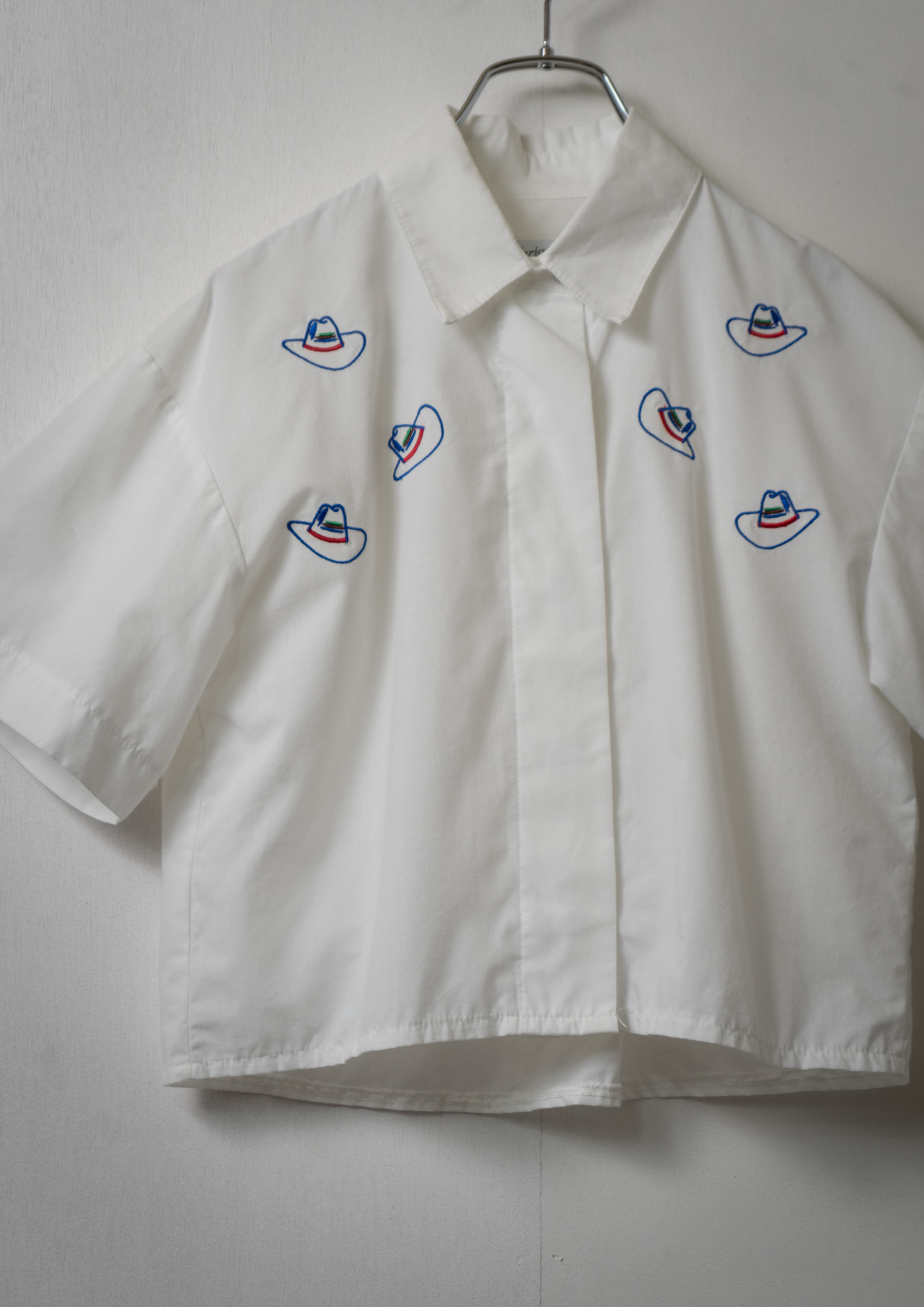 Upcycle Cowboy Hat Embroidery White Cropped Blouse