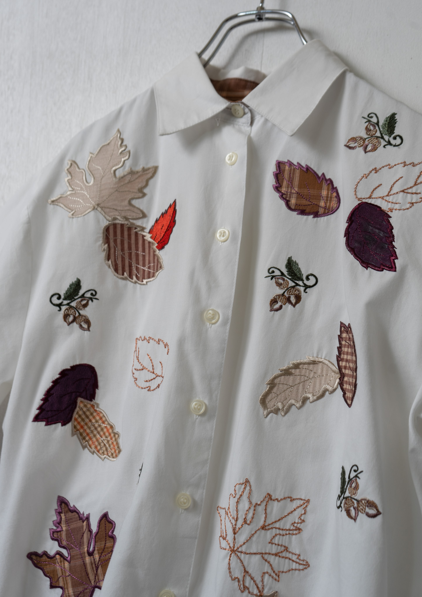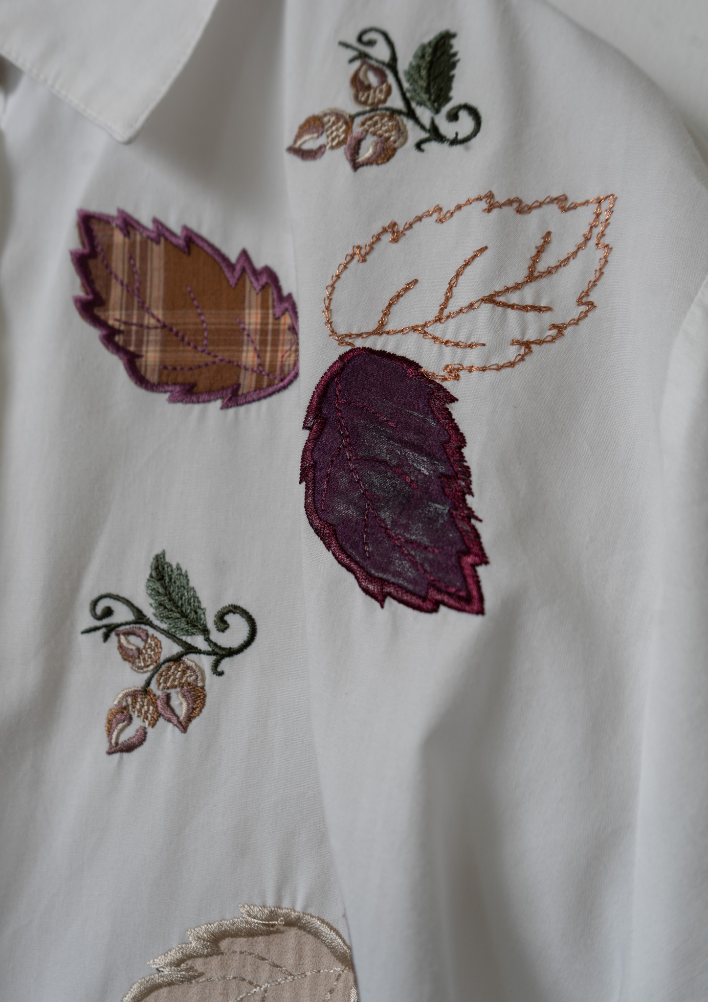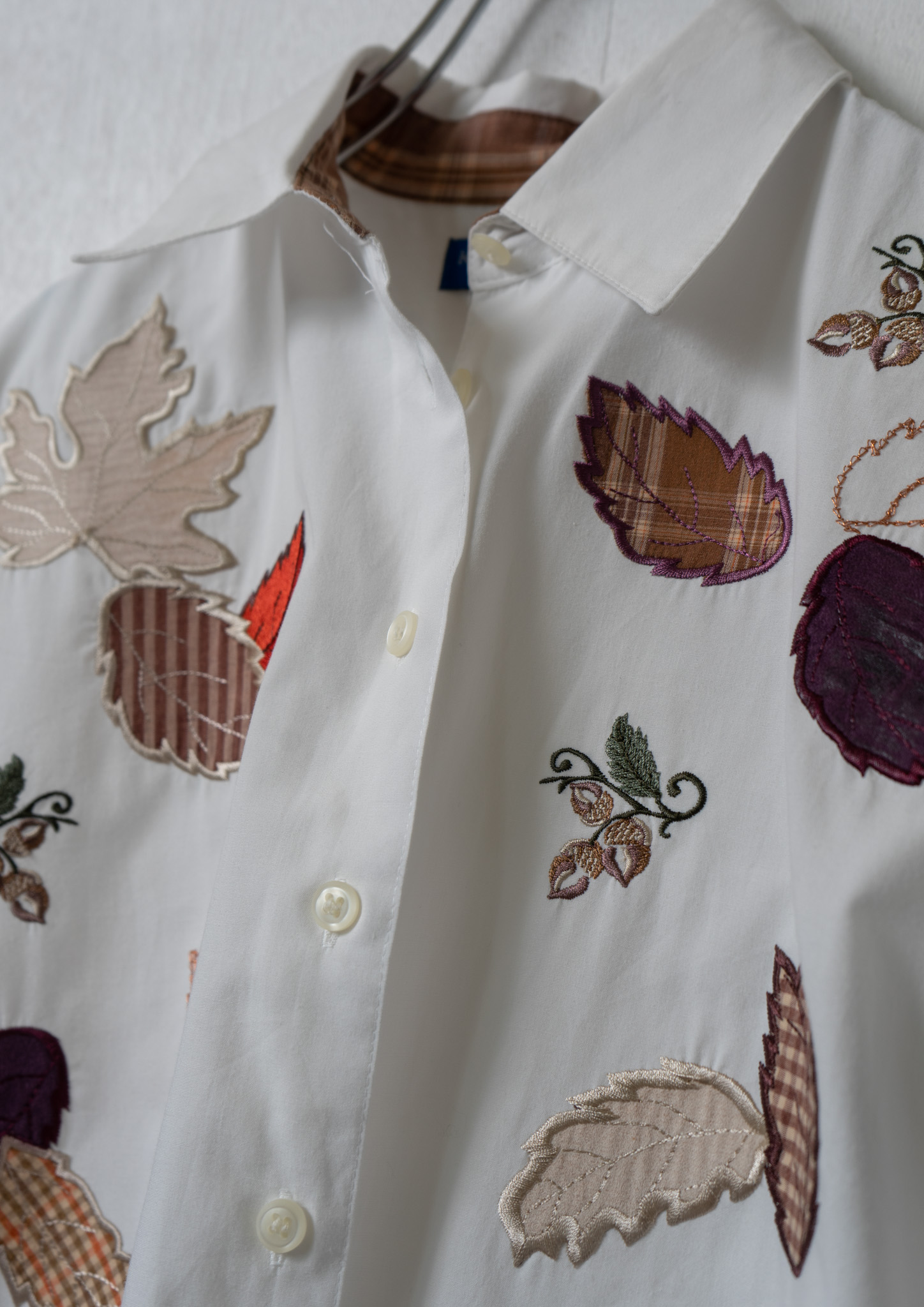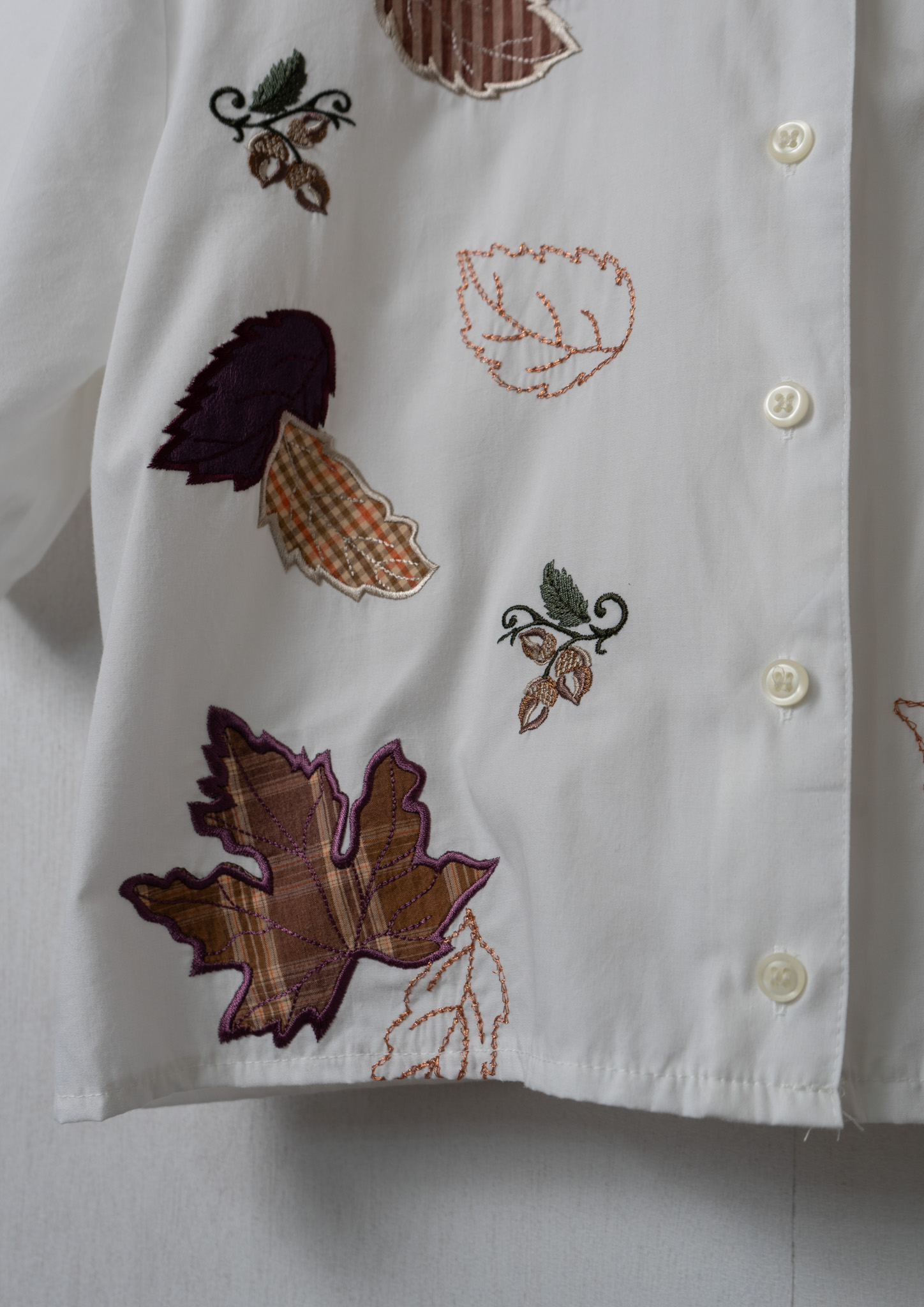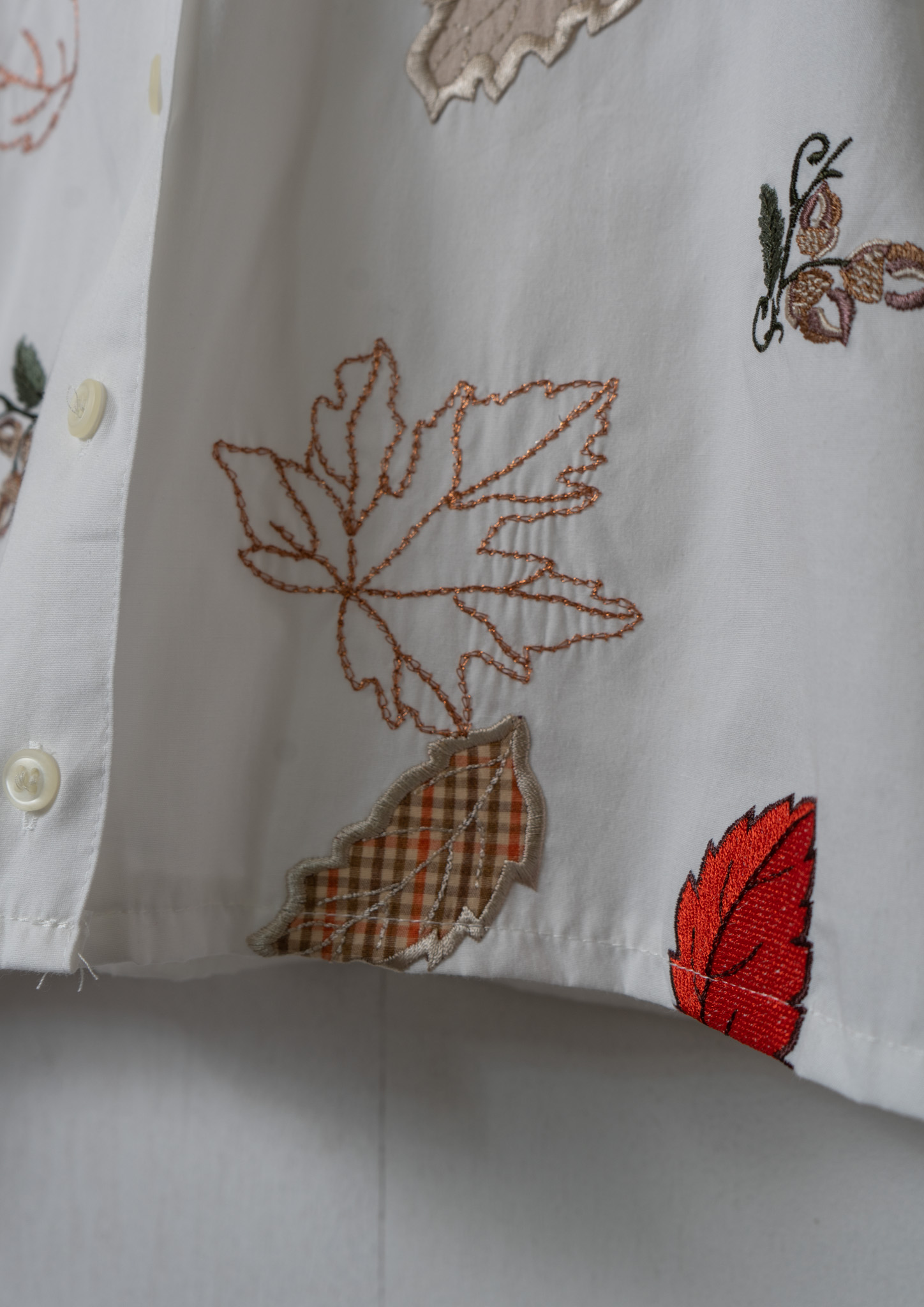 Upcycle Leaves Patchwork × Embroidery White Cropped Blouse
