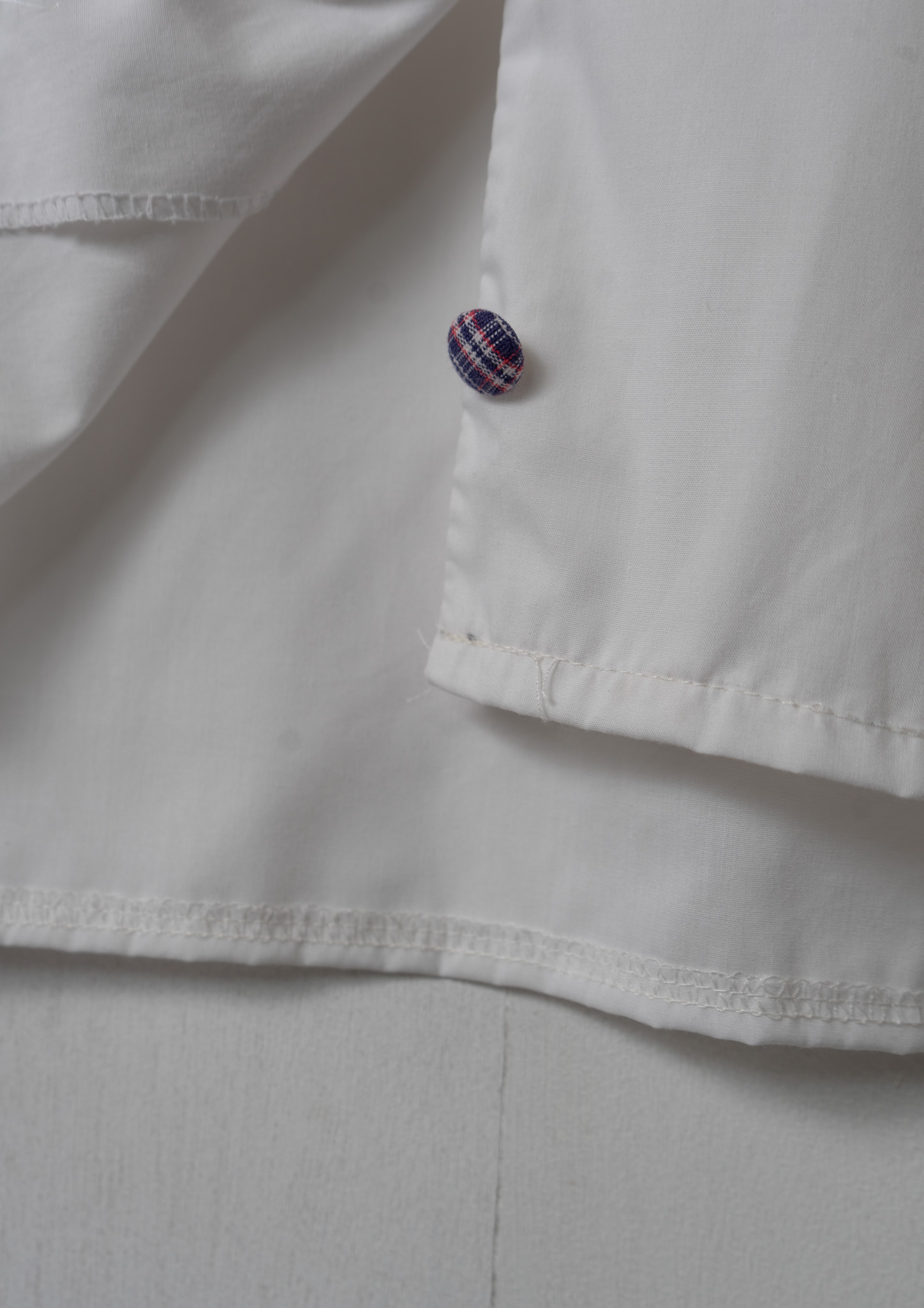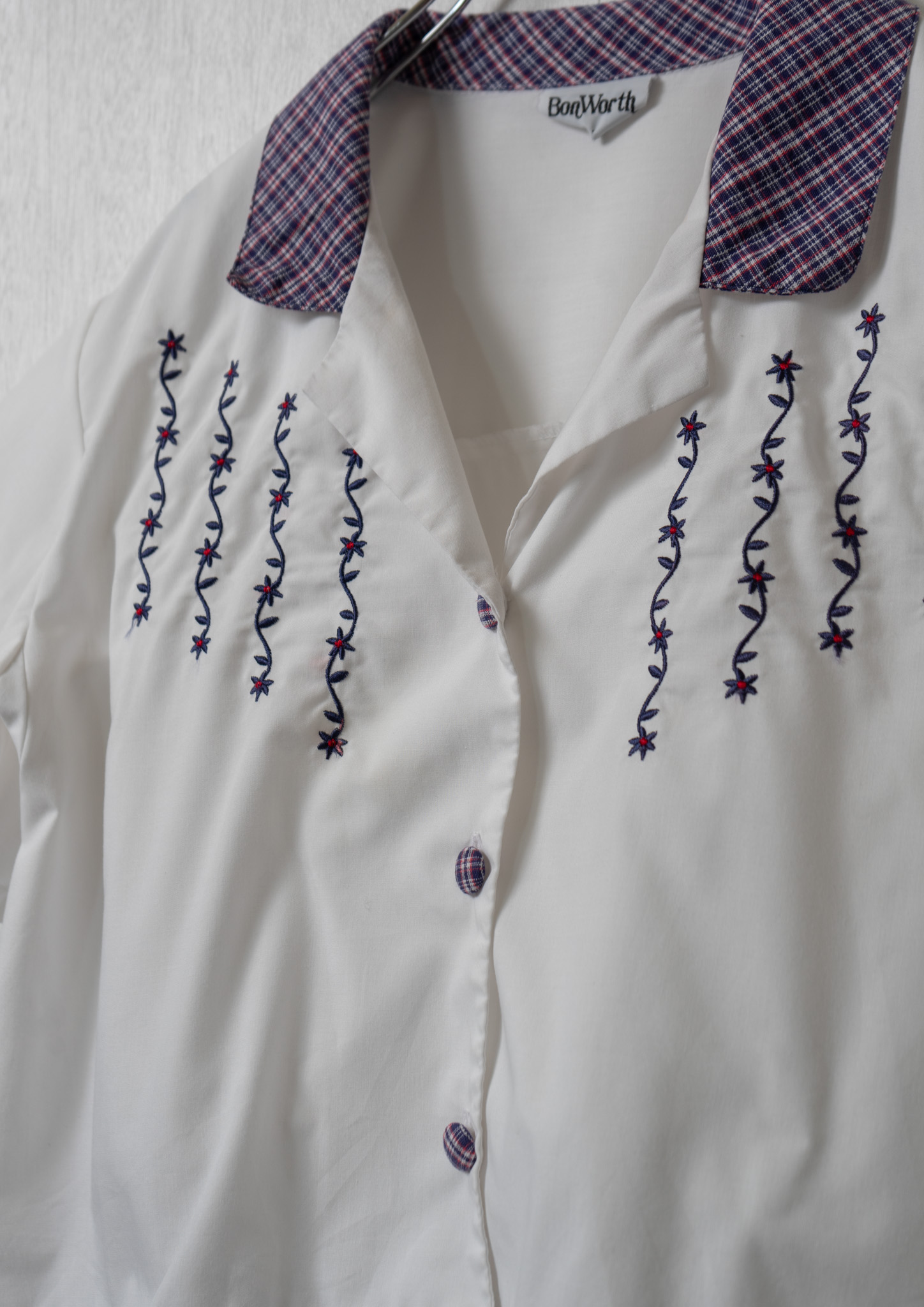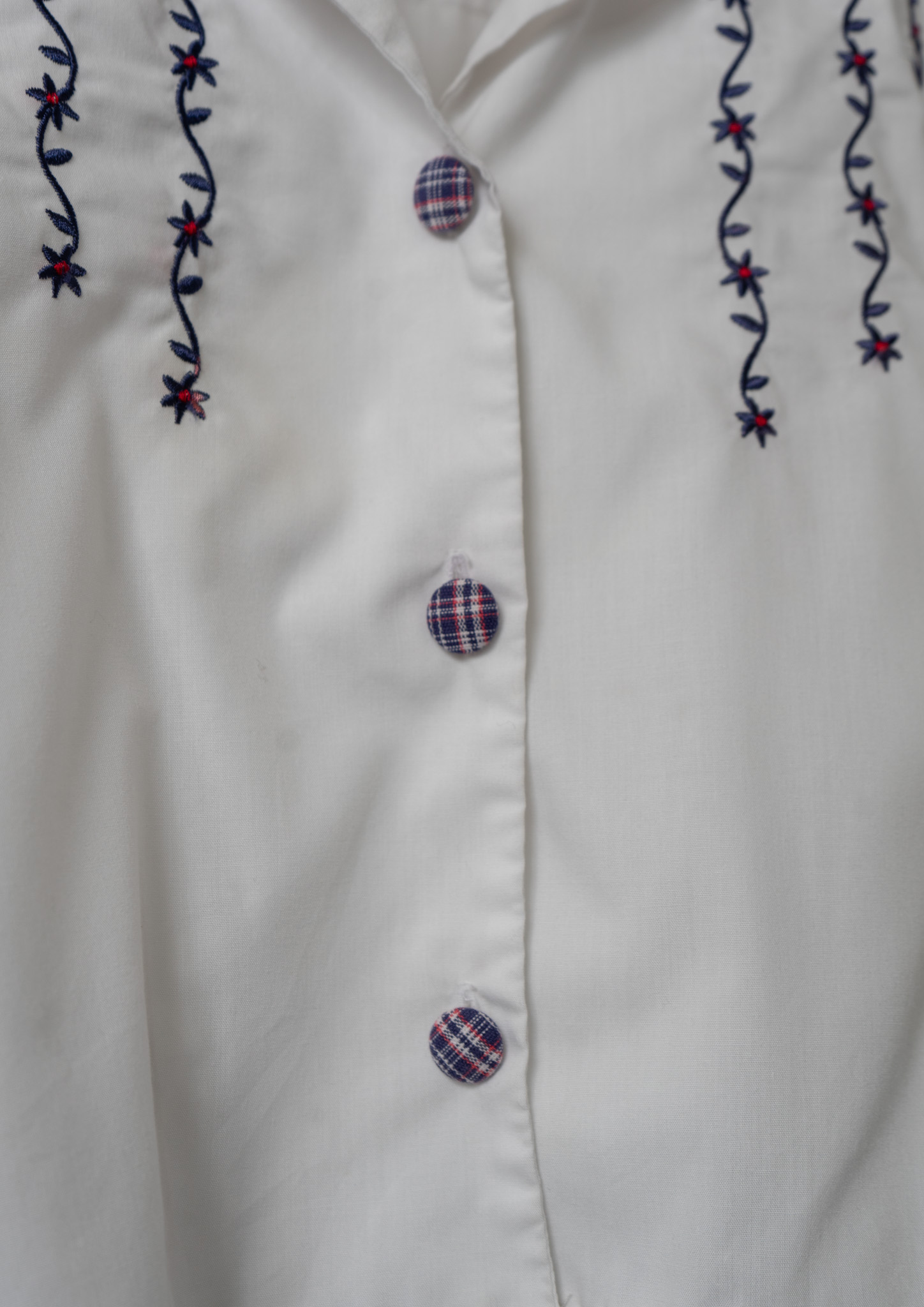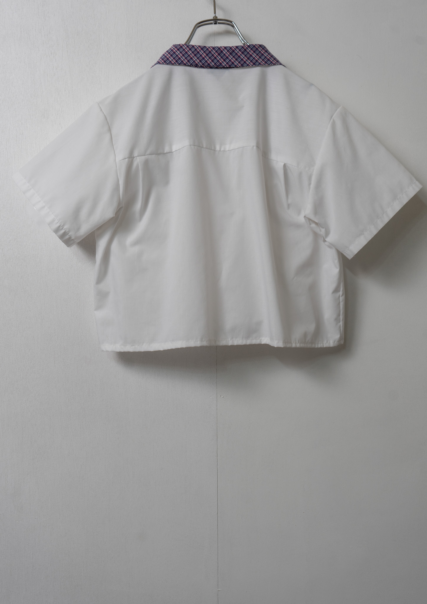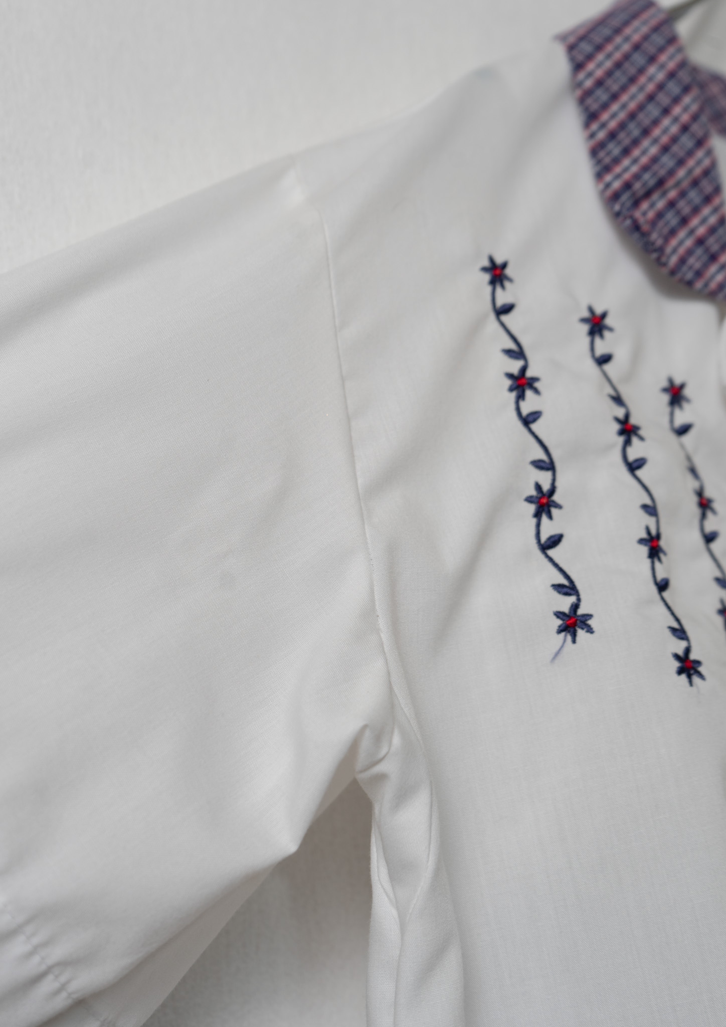 Upcycle Check pattern × Flower Embroidery White Cropped Blouse