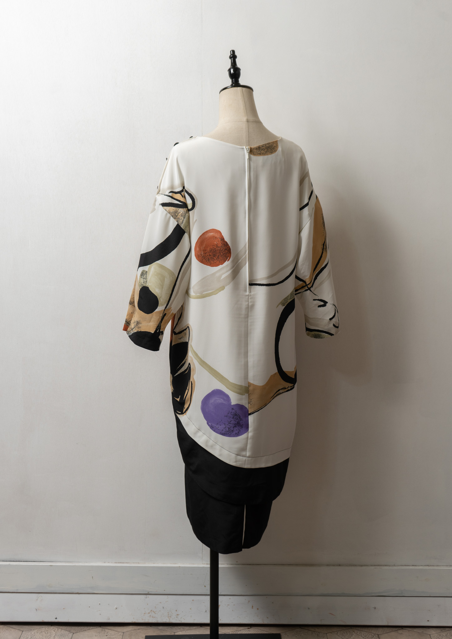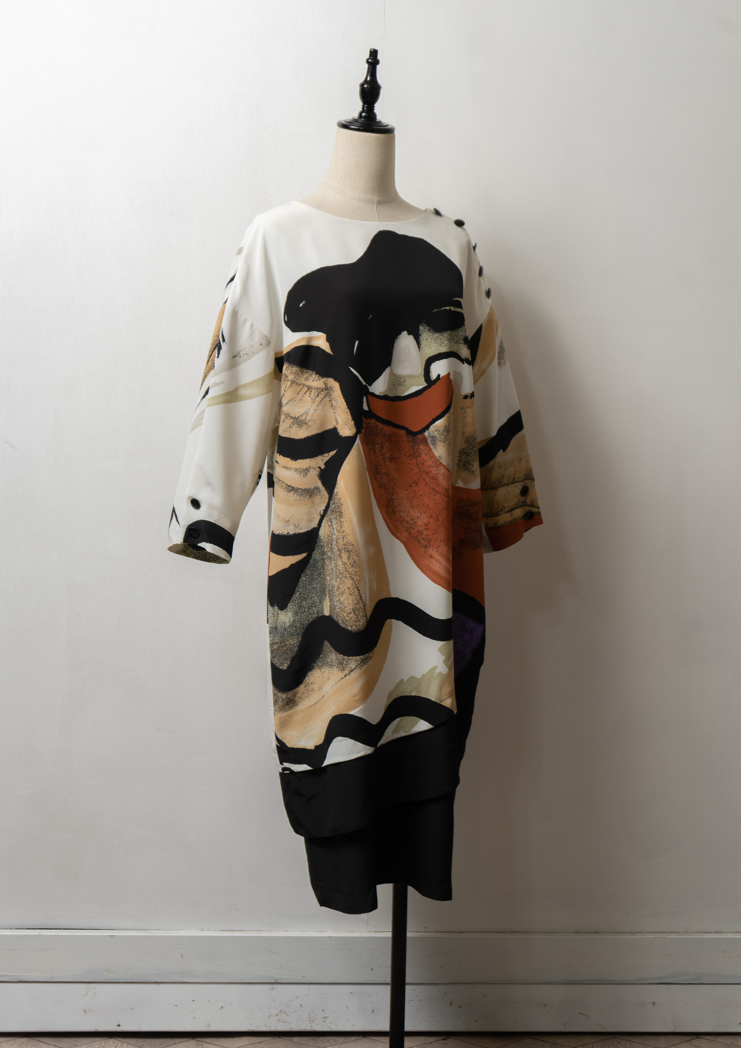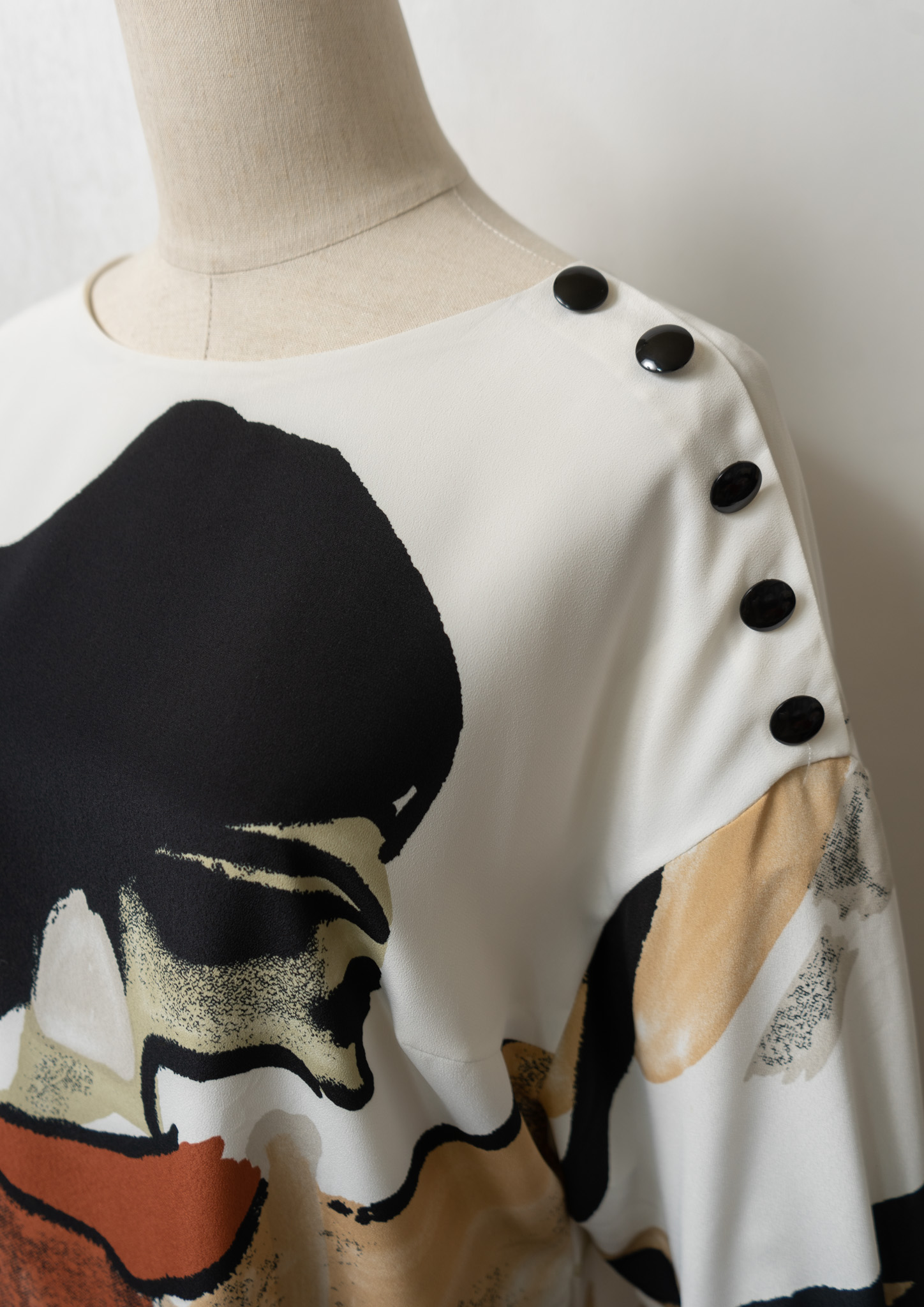 70~80's Bird × Botanical Pattern Stand Neck Dress