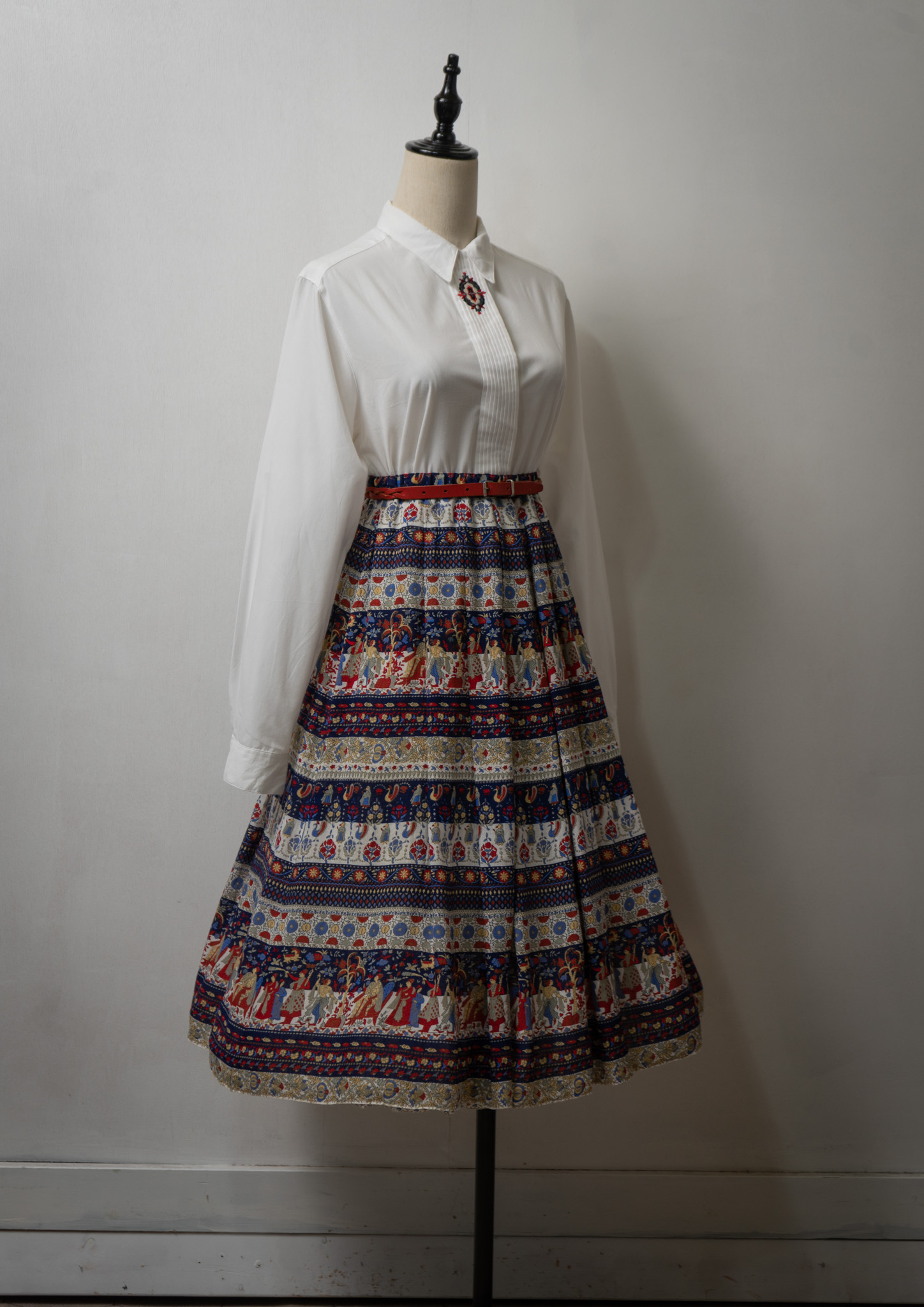 80's Ethnic Border pattern Weist Ribbon Design Skirt