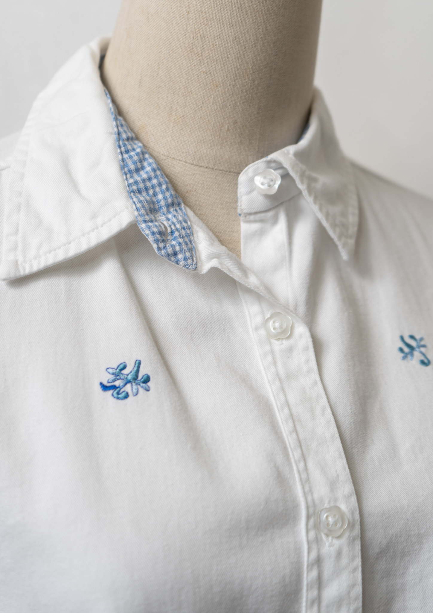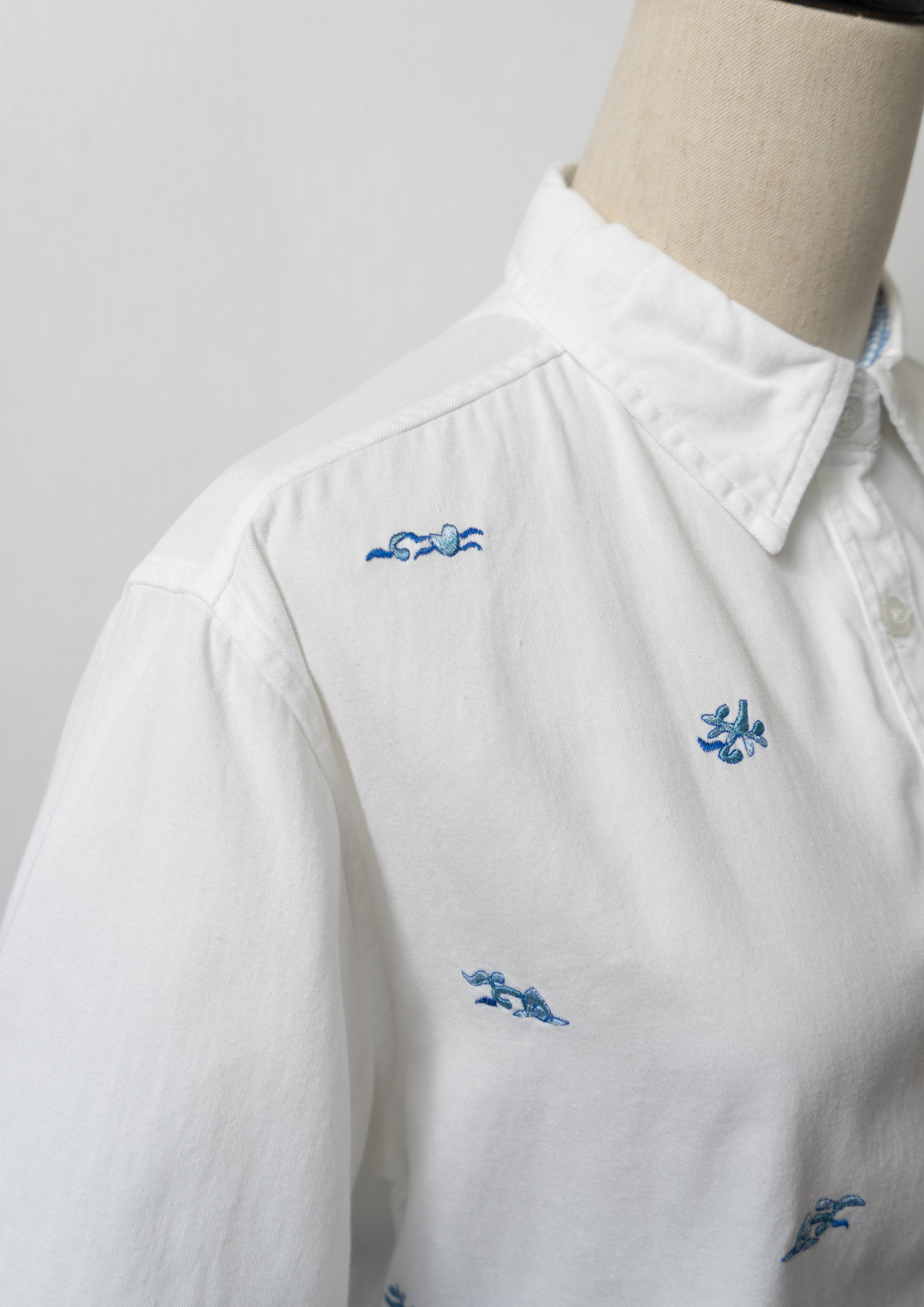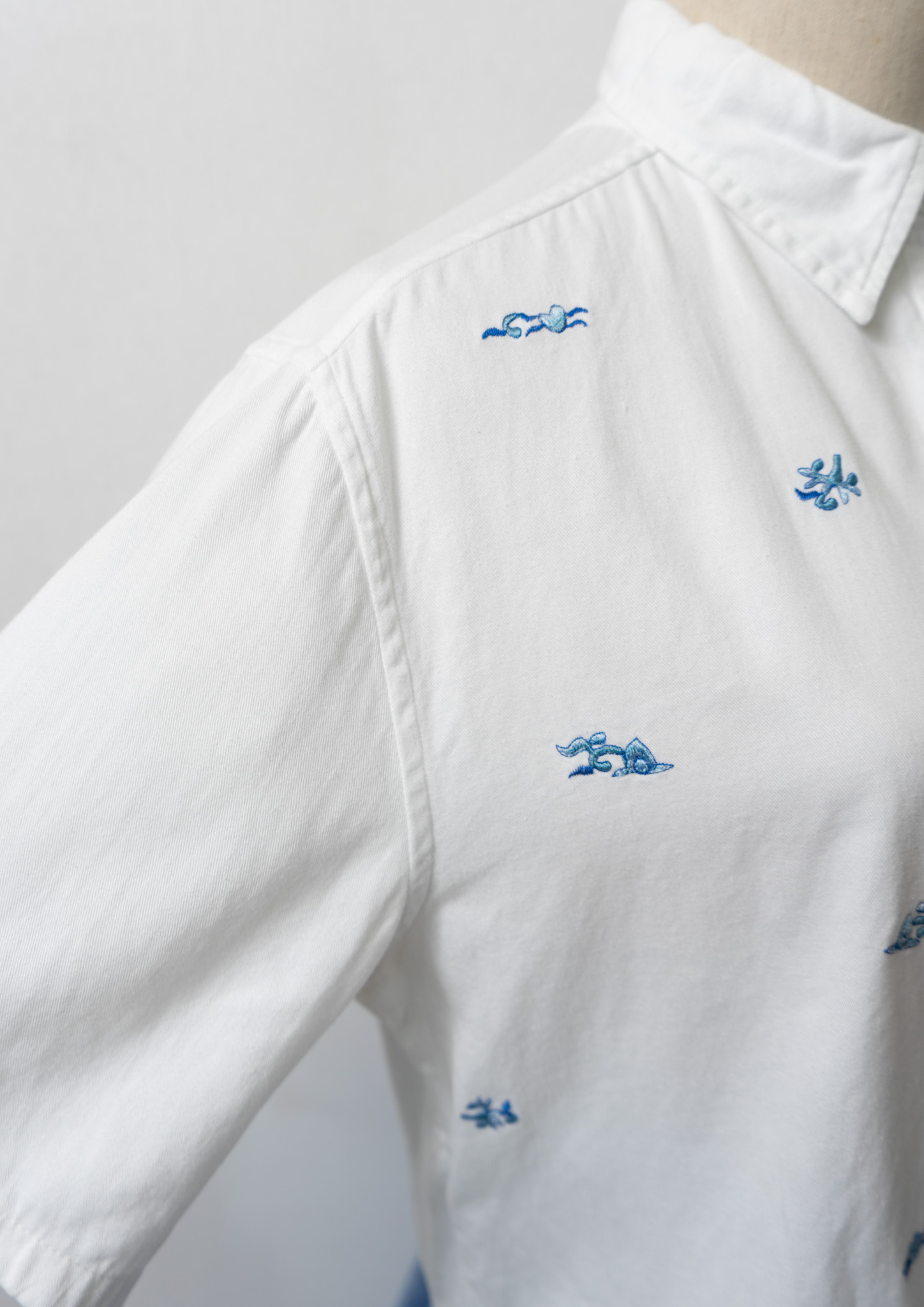 90’s Vine Motif Embroidery Point Beads Design Ivory Blouse