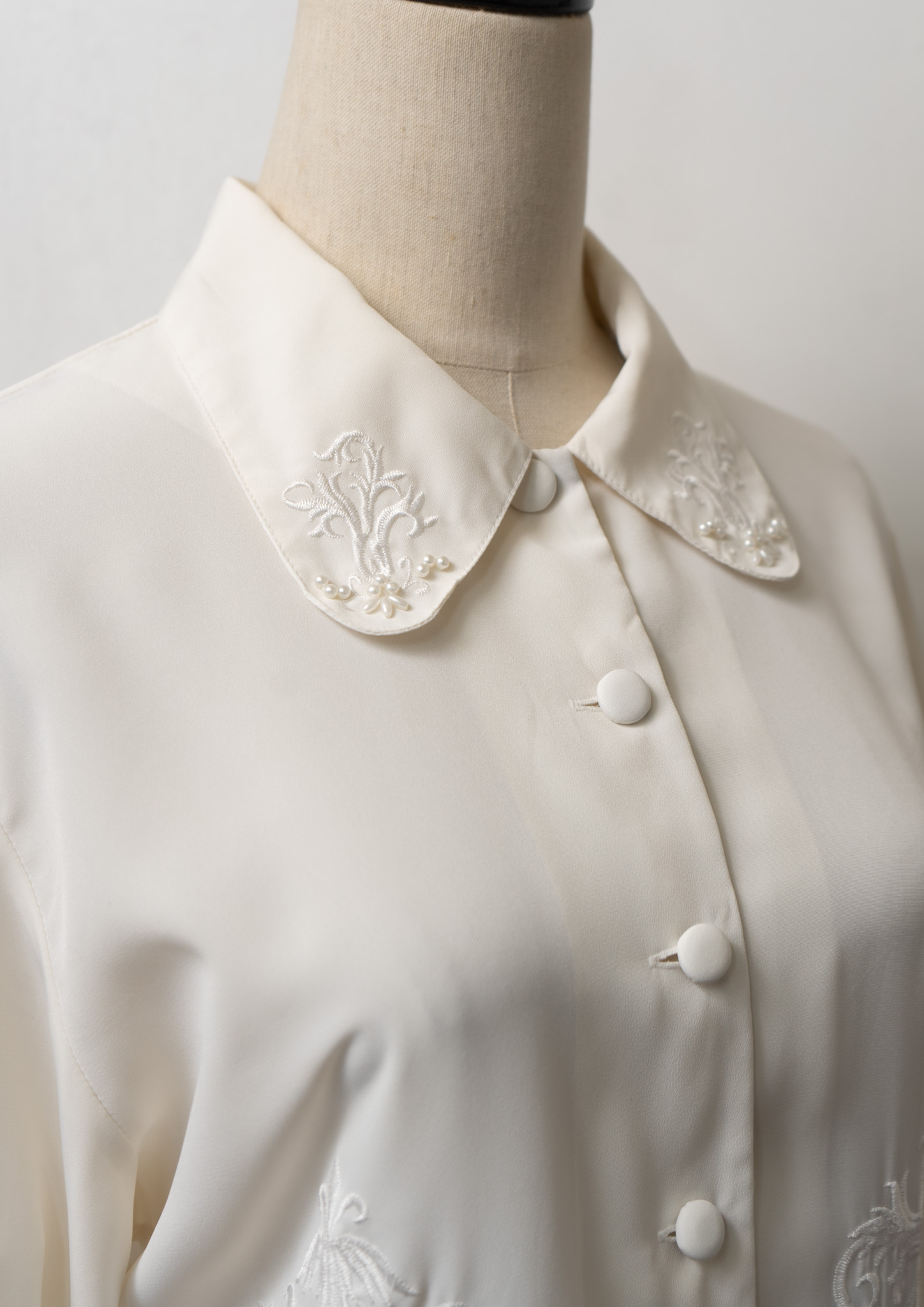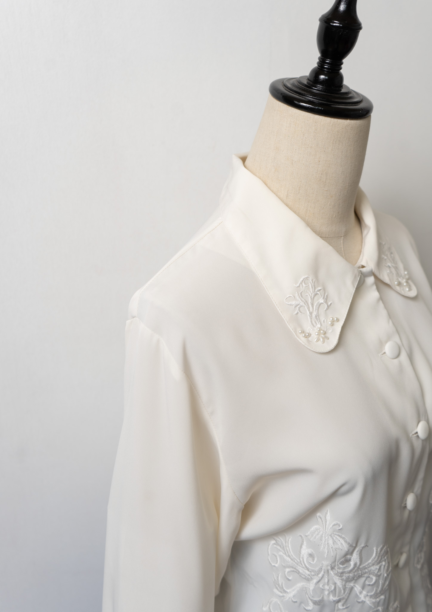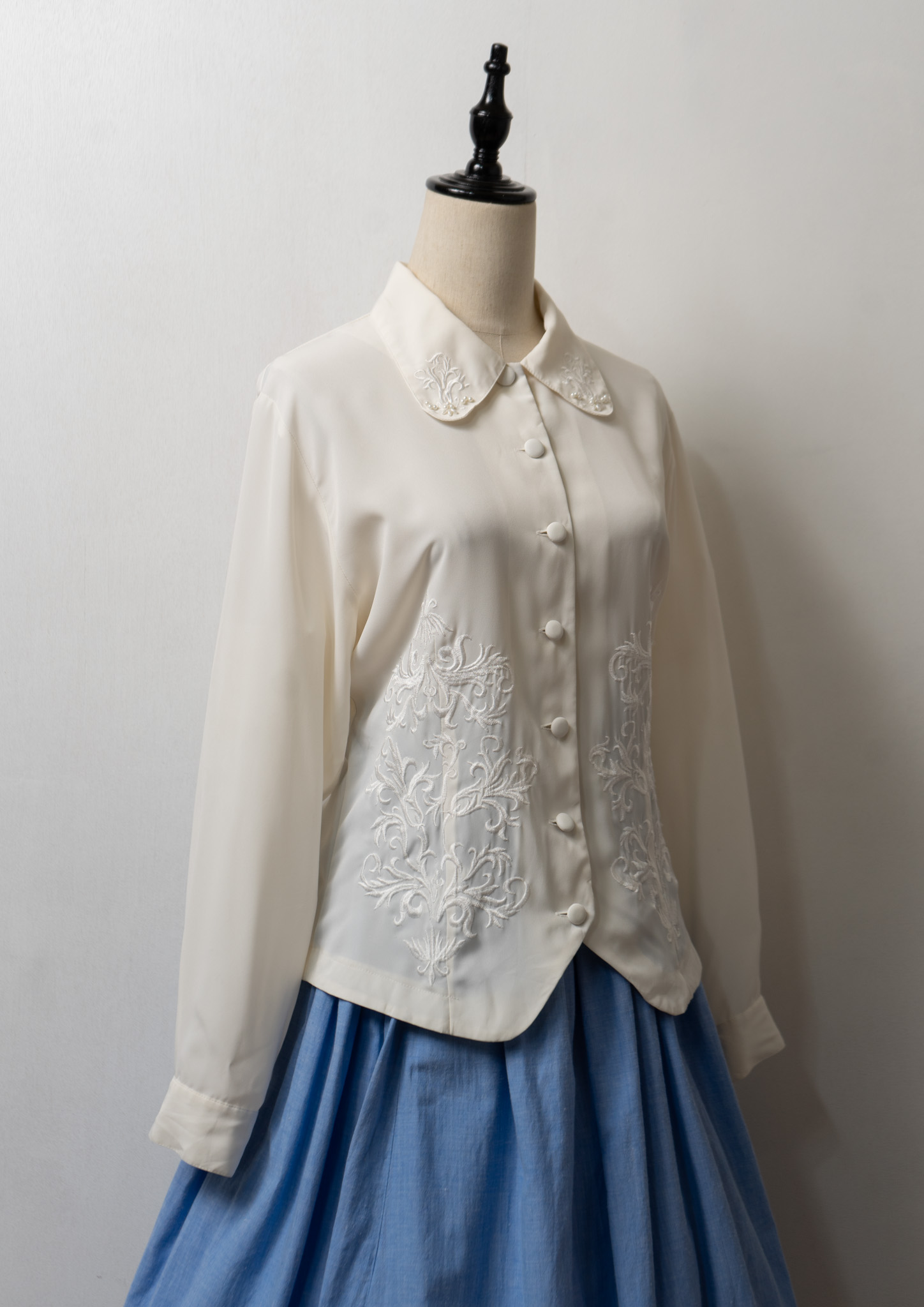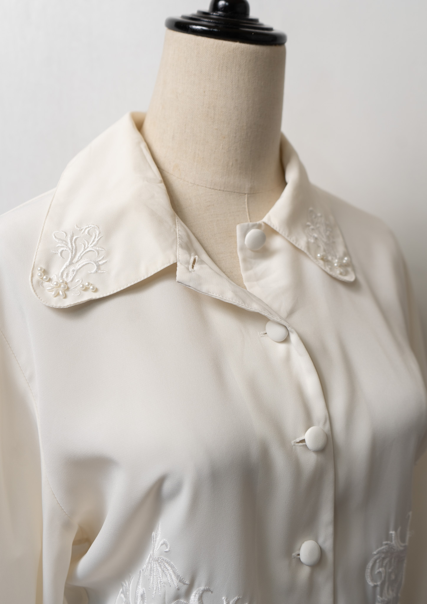 90’s Vine Motif Embroidery Point Beads Design Ivory Blouse